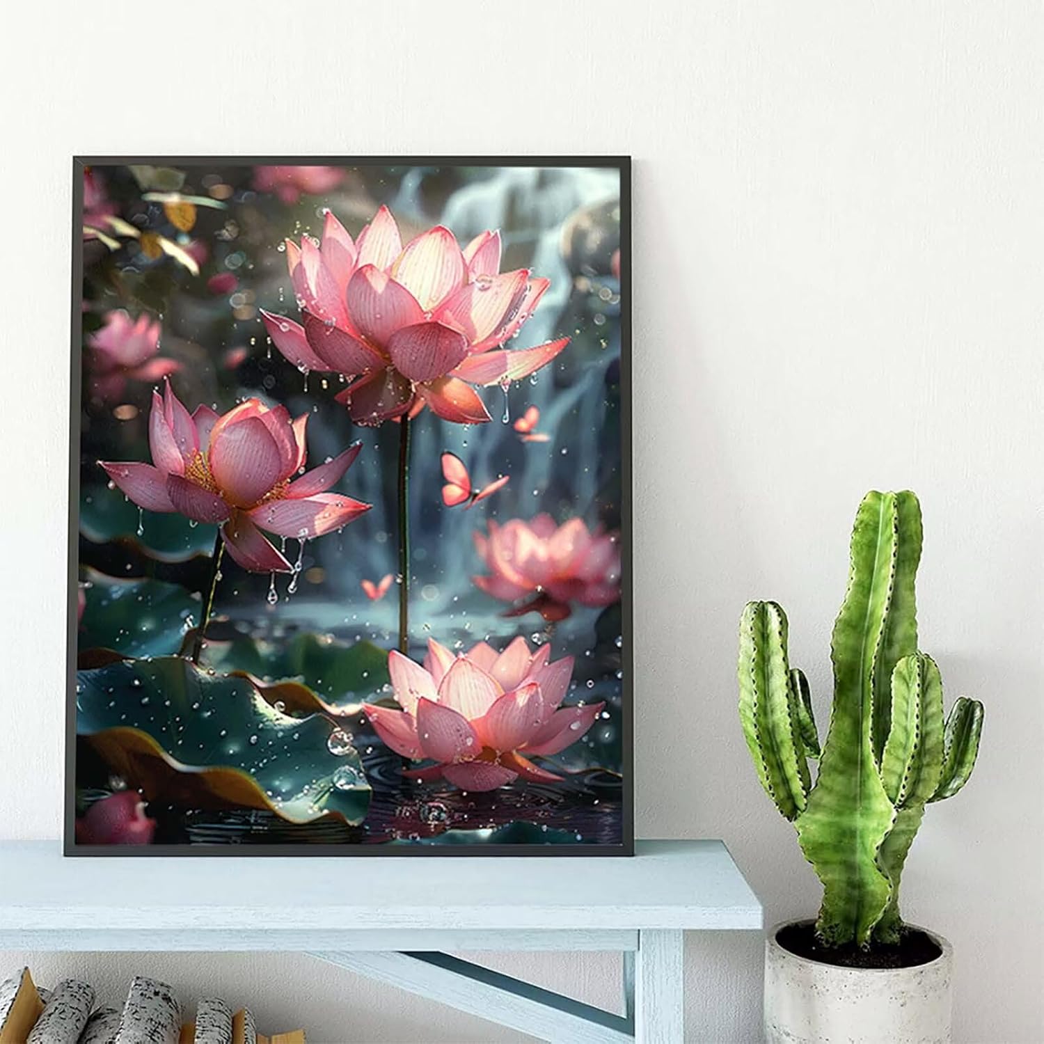 Dipingere con i Numeri Pianta Dipingere con i Numeri Adulti, Paint by Numbers Loto Paint by Numbers Adulti con 3 Pennelli e Vernice Acrilica per Decorazioni Casa, Regalo Donna 30x40 cm -zp253K6