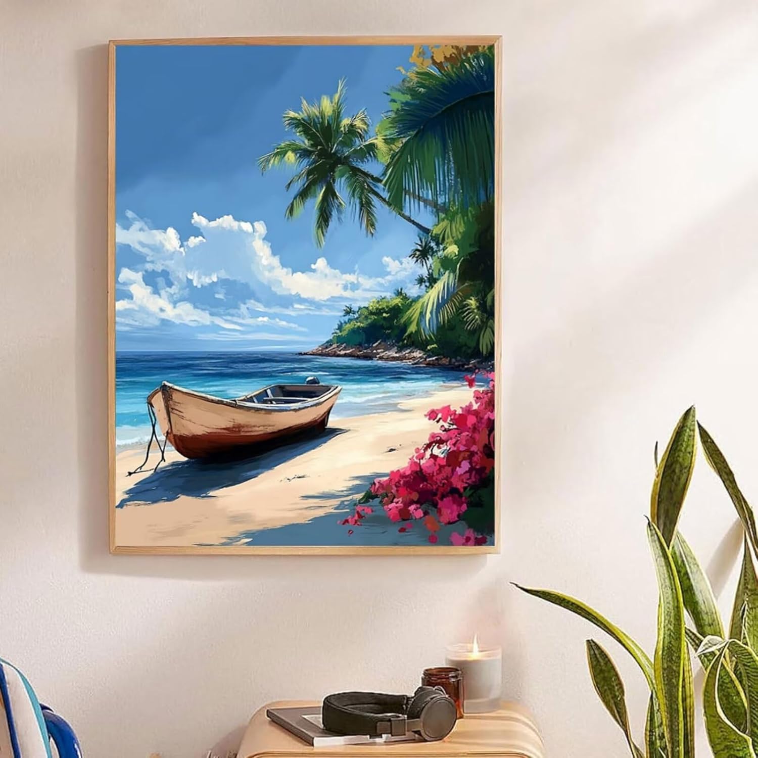 Dipingere con i Numeri Spiaggia Dipingere con i Numeri Adult Barca, Kit di Pittura Fai-da-Te Paint by Numbers Hobby Creativi Adulti con Pigmento, Paint by Numbers per Decora casa 45x60cm, Model 66