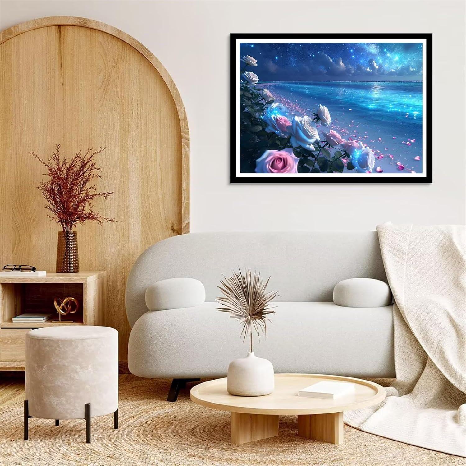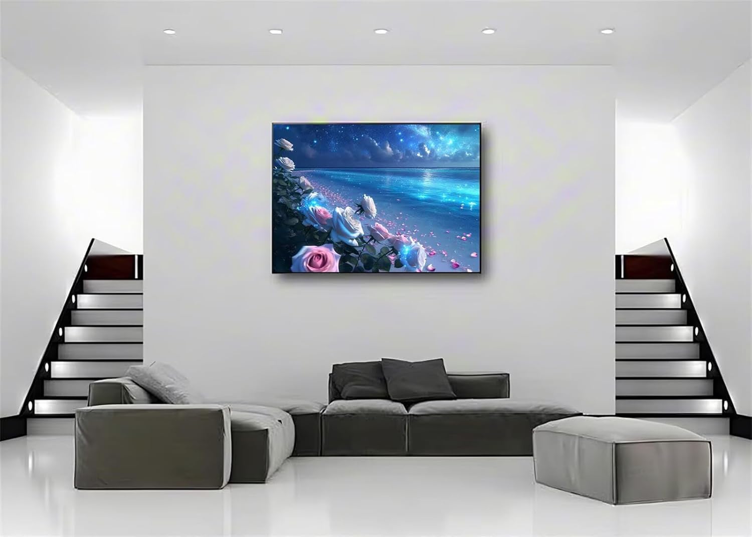 Dipingere con i Numeri, Spiaggia Rosa Kit di Pittura Acrilica Fai-da-Te per Adulti and Bambini Principianti, con tela Senza Pieghe, Pennelli e Vernice Acrilica, Regalo 80x100cm (Senza Cornice) q-338