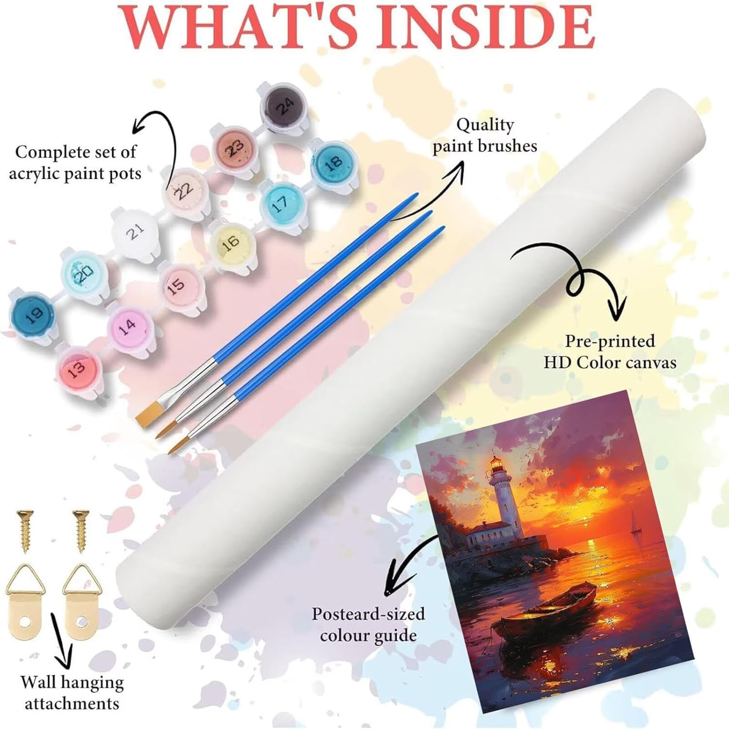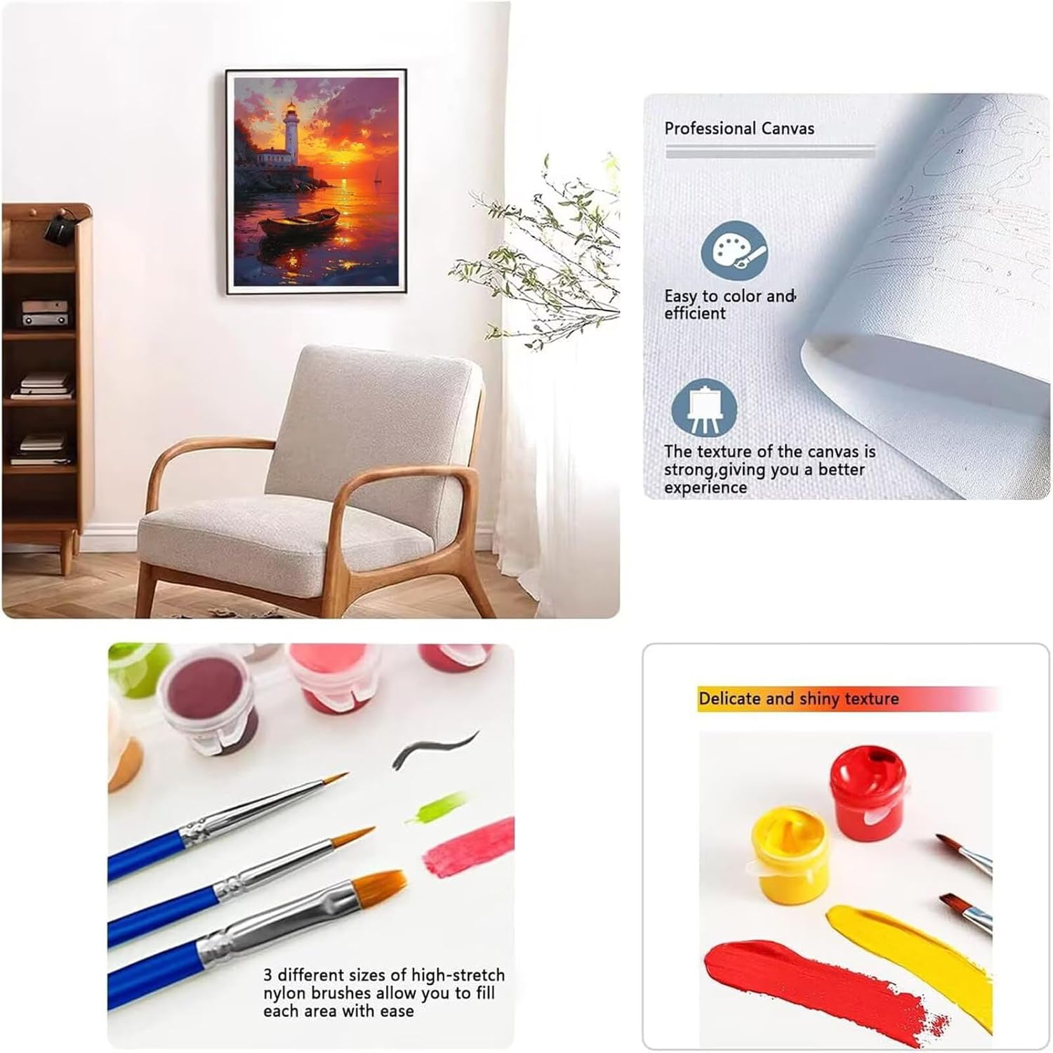 【Paint By Numbers For Adults】: DIY paint by number for adults is easy and fun. We will be joyful and get a lot of satisfaction after finishing it. Whether it is a beginner or a professional, Paint by number is a simple and entertaining hobby 【Paint By Numbers Kits】: You will get complete sets of paint by number for adults, contains: pre-printed canvas (without frame), acrylic paint set, brushes, paper numbered canvas reference, metal hooks 【Enhance Relationship】:Paint by numbers for adults may help people to enhance the relationship between parents and kids, friends and friends, husband and wife, While releasing the stress in your daily life 【Thoughtful Gift Option】: Painting by numbers for adults not only for home wall decoration, But also a present for your friends or family, It's a gift that will be cherished 【After Sales Service】: After receiving the product, if you have any questions about paint by numbers , please contact us and send us an email on Amazon. We will reply to your message and solve the problem within 24 hours. Don't worry, please rest assured to buy