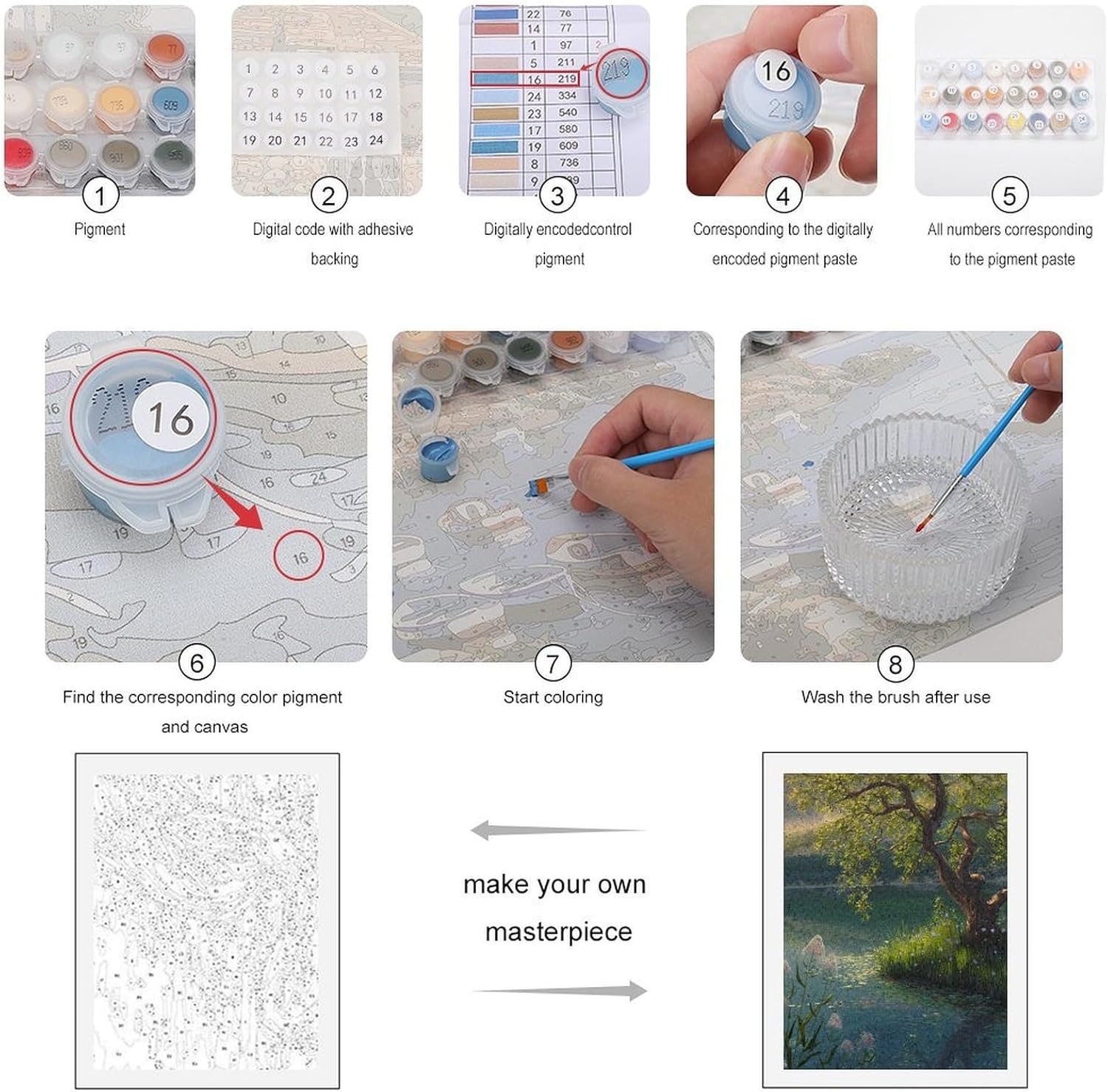 Kit per dipingere con i numeri: il kit per dipingere con i numeri include 1 tela testurizzata prestampata (senza cornice), 1 set di pigmenti acrilici, 3 pennelli per scopi diversi, 2 ganci per appendere, 1 carta leggenda. Il kit contiene tutti gli strumenti necessari, non sono necessari strumenti aggiuntivi per i principianti. Dipingi con i numeri per adulti: tela ad alta precisione, la densità della tela è molto buona, le figure e i numeri sono chiari, tutti i punti sono contrassegnati da numeri, le linee sono facilmente visibili e facili da colorare. Pigmento acrilico: colori acrilici ecologici, colori vivaci e pigmenti sufficienti. Puoi dare pieno gioco alla tua creatività sulla tela colorata ad alta definizione, senza preoccuparti che la vernice danneggi il tuo corpo. Facile da dipingere: basta abbinare i numeri della vernice e le figure sulla tela per riempire la vernice. Dipingi per numeri di colore, finisci uno per uno. Il Paint by Numbers è adatto a tutti i livelli di abilità, sia che tu sia un principiante adulto. Riempi il colore in base ai numeri, non hai bisogno di alcuna abilità di pittura. 50% in più di pigmenti: la pittura con i numeri offre un 50% di vernice extra per ogni colore, di solito c'è un eccesso dopo la pittura. Se non abbastanza vernice non esitate a contattarci. Riemetteremo la sostituzione per il rimborso gratuito o completo per voi entro 24 ore, si prega di essere certi dell'acquisto.