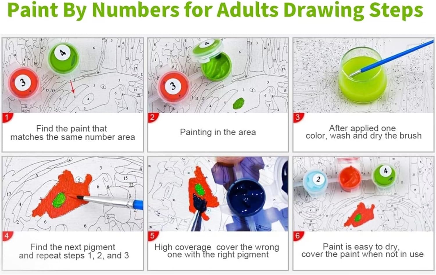 DIPINGI PER NUMERI PER ADULTI ELENCO DEI PACCHETTI: 1 tela testurizzata prestampata, 1 set di colori acrilici (24 colori acrilici di alta qualità), 1 set di pennelli (3 pennelli professionali di diverse dimensioni), 2 ganci, 1 * Guida al disegno. (Questo prodotto non include una cornice) BASE ZERO: la pittura con i numeri adatta a tutti i livelli di abilità, che tu sia adulto, bambino o principiante, riempi solo il colore in base ai numeri e segui le istruzioni per finire una per una. Non è necessario avere competenze di base nella pittura per farlo. Quando hai usato accidentalmente il colore sbagliato, coprilo semplicemente con il pigmento del colore giusto. DIVERTIMENTO FAI DA TE: essere pazienti, usare la pittura con i numeri per migliorare l'intelligenza e l'interesse nel disegno. Potrebbe aiutare la tua famiglia a migliorare il rapporto tra genitori e figli, amici e amici, marito e moglie, se dipingono insieme il disegno. Crea la tua opera d'arte squisita e condividila con gli altri. Scatena la tua creatività interiore e divertiti. MATERIALI DIPINTI IN BASE AI NUMERI: La nostra vernice in base ai pigmenti numerici è vernice acrilica, il colore è pieno e brillante, si asciuga rapidamente, non sbiadisce facilmente, molto rispettosa dell'ambiente, sicura per bambini o adulti, le donne incinte possono usarla. La densità della tela è molto buona, le figure e i numeri sono chiari, le linee sono ben visibili e facili da colorare. PIÙ PIGMENTO: Offriamo il 30% di vernice in più per ogni colore, di solito c'è un eccesso dopo la verniciatura. Se non hai abbastanza vernice o hai problemi o suggerimenti durante l'uso di questo kit di pittura a olio fai-da-te, non esitare a contattarci. Forniamo una garanzia di servizio post-vendita di 365 giorni su tutti i prodotti per garantire che i clienti possano acquistare con fiducia.