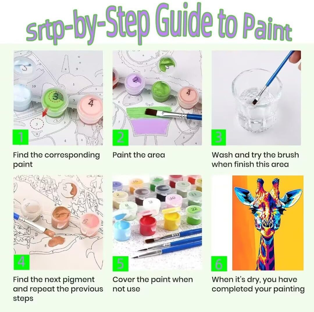 COME DIPINGERE: Questo kit di dipingere con i numeri adulti è adatto a qualsiasi livello di abilità. Segui semplicemente le istruzioni, scegli un numero sulla tela e abbinalo allo stesso numero su un barattolo di vernice, scegli un pennello e colora in tutte le aree con quel numero di colore sulla tela. Pulisci il pennello e ripeti con un altro numero. Finisci uno per uno REGALO E DECORAZIONE FAI DA TE PERFETTI: Se hai difficoltà a trovare il regalo giusto, questa è la soluzione ideale. I kit di dipingere con i numeri sono una buona scelta come regalo per Natale, Ringraziamento, Capodanno, compleanno o altre occasioni. Inoltre, dipingere con i numeri è adatto e adulti principianti. Anche il regalo perfetto per la decorazione della casa. CARATTERISTICA DEL PRODOTTO: Può aiutare la tua famiglia a migliorare il rapporto tra genitori, amici e amici, marito e moglie, se dipingono insieme il disegno. Promuovendo la concertazione e alleviando lo stress. Dipingere con i numeri offre a chiunque un modo divertente di essere coinvolto nelle arti, una grande opportunità per liberare la propria creatività. CONFEZIONE INCLUSA: Le forfait comprend 50x65cm/20x26in toile pré-imprimée dipingere con i numeri, 3 pennelli professionali di diverse dimensioni, vernici acriliche lucide e inodore di alta qualità, immagine di riferimento del dipinto finito, istruzioni dettagliate (cornice non inclusa) BUON SERVIZIO : Dopo aver ricevuto il prodotto, se hai parti mancanti o hai domande sulla dipingere con i numeri, non esitare a contattarci, risolveremo il problema entro tempo più breve ore.