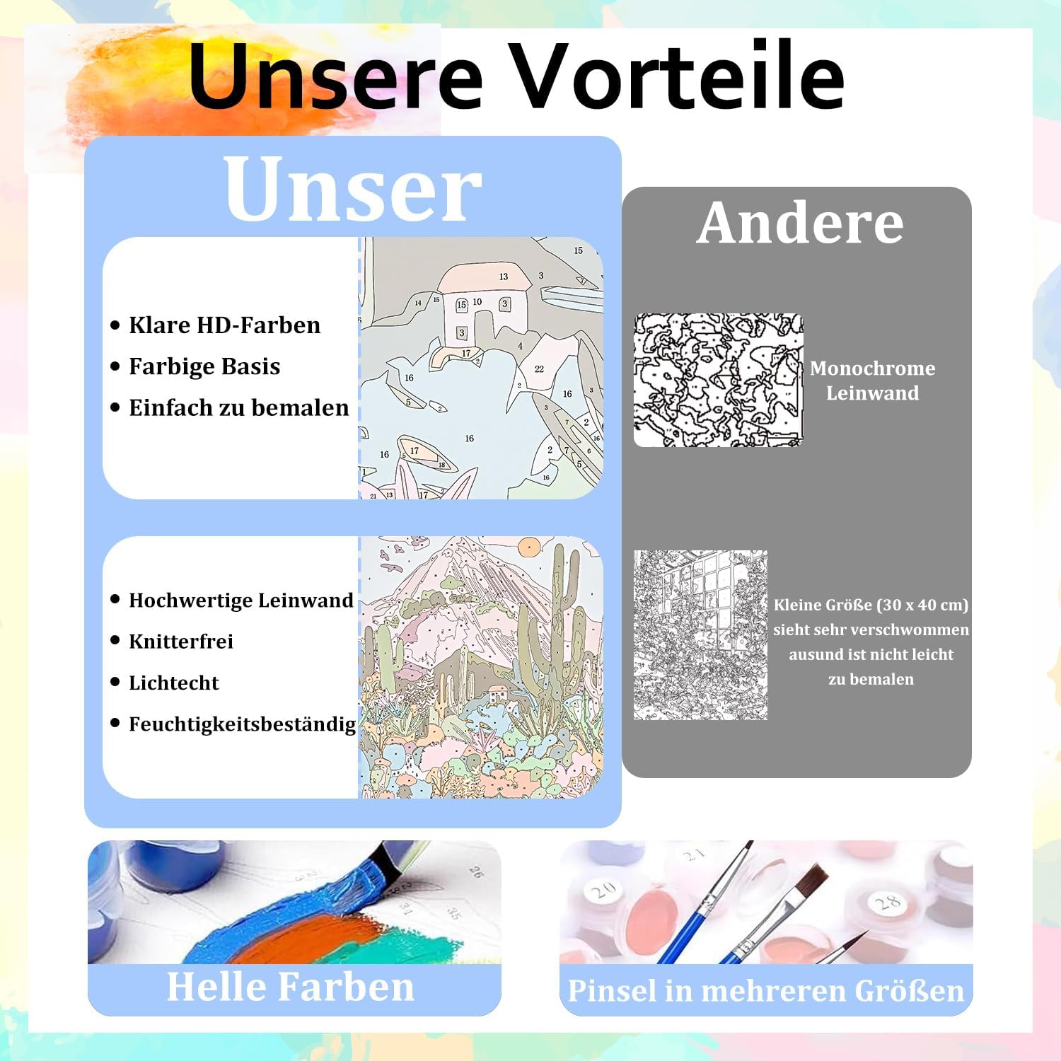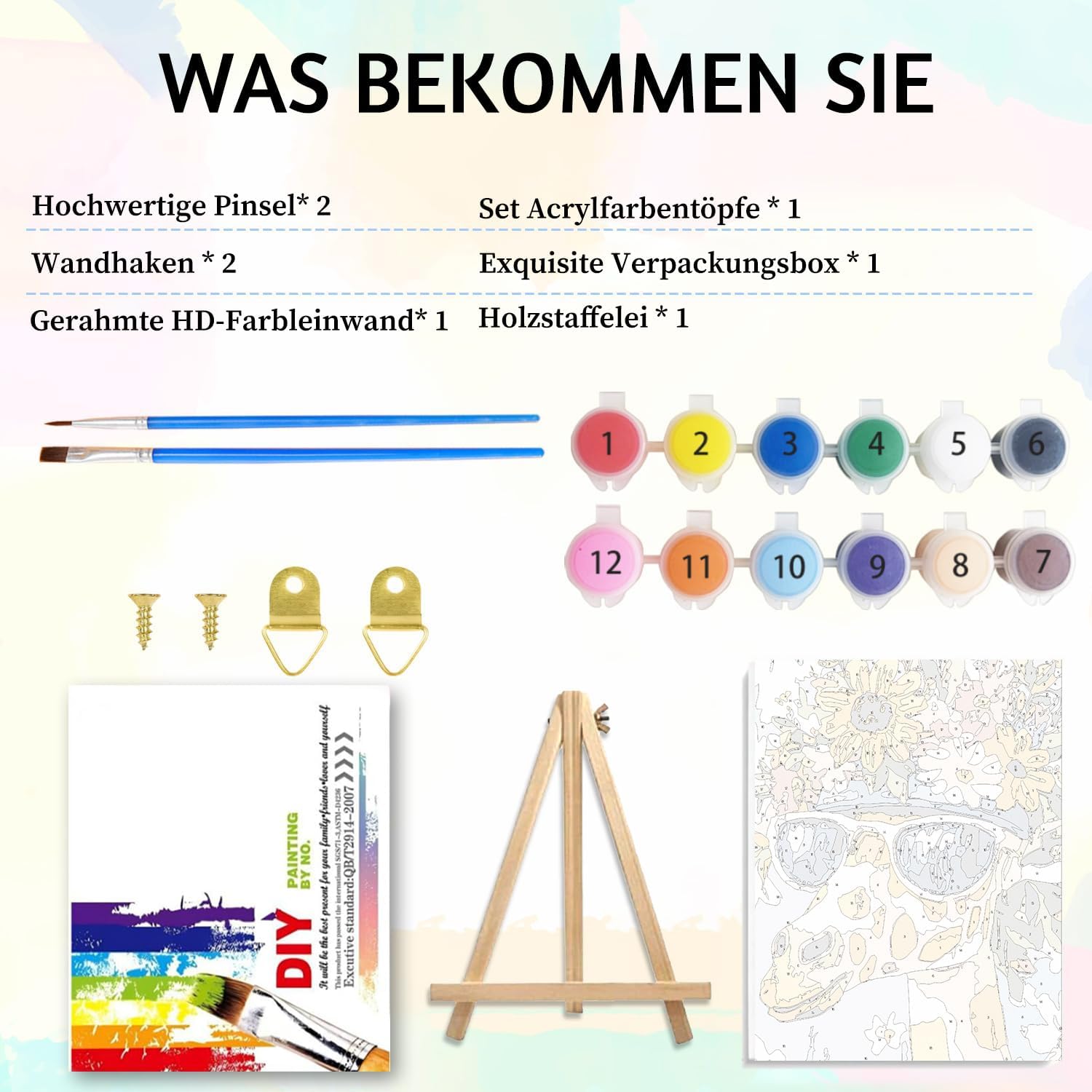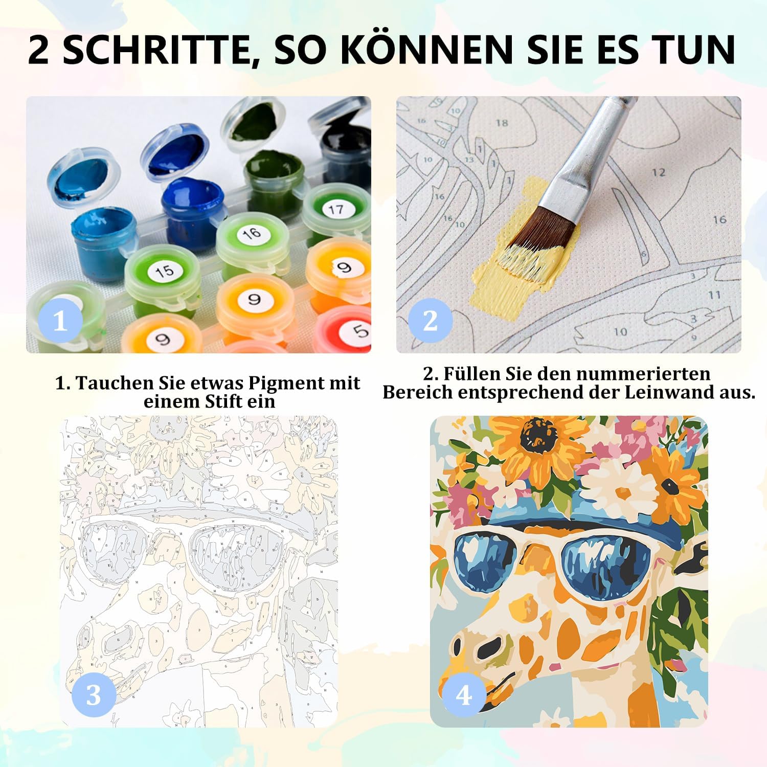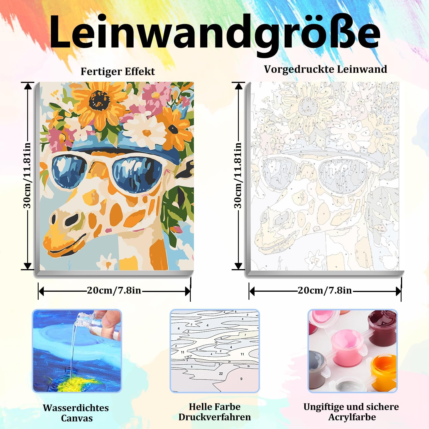 Materiali di alta qualità: la nostra giraffa dipingi con i numeri con cornice utilizza colori acrilici di alta qualità per colori brillanti, durevoli e sbiaditi. Grazie a questi materiali durevoli, le tue opere finite manterranno la loro bellezza e dettagli e diventeranno opere preziose che apprezzerai e presenteranno con orgoglio per molti anni. Istruzioni semplici e divertenti: il nostro kit per dipingere con i numeri con cornice e cavalletto in legno ti consente di creare un'esperienza di pittura senza stress. La tela presenta numeri nitidi e ben leggibili per un'esperienza di pittura senza interruzioni. Non hai bisogno di conoscenze di pittura e potrai goderti la gioia di progettare e sperimentare. Regalo ideale: questo kit di pittura con colori acrilici è ideale per decorare la tua casa. Che si tratti di vacanze o compleanni, è un regalo eccezionale per amici e parenti ed è perfetto per esprimere le tue congratulazioni. Contenuto della confezione: riceverete un set per dipingere con i numeri. Include 1 tela prestampata HD con cornice, 1 cavalletto in legno, 1 set di colori acrilici, 1 set di pennelli in nylon, 2 ganci e viti da parete. Tutto ciò di cui hai bisogno per dipingere è incluso. Servizio clienti: il nostro set di pittura a olio digitale per adulti fai da te offre 180 giorni di servizio clienti. In caso di problemi di qualità, non esitate a contattarci. Saremo lieti di rispondere alle vostre domande e preoccupazioni. Il nostro obiettivo è che i nostri clienti possano sperimentare appieno il divertimento della pittura a olio digitale.