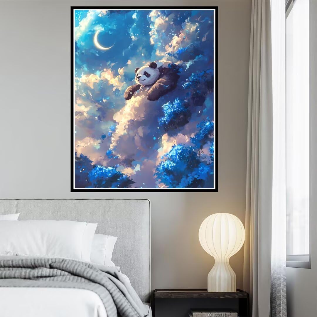 Dipingi con i Numeri Panda, Colorare con i Numeri Adulti, Fai da te Creativo Adulti Quadri da Dipingere Numerati, Tutti i Kit Inclusi, Decora la casa, Regalo Bambina Luna 30x40cm Senza Cornice W - 1