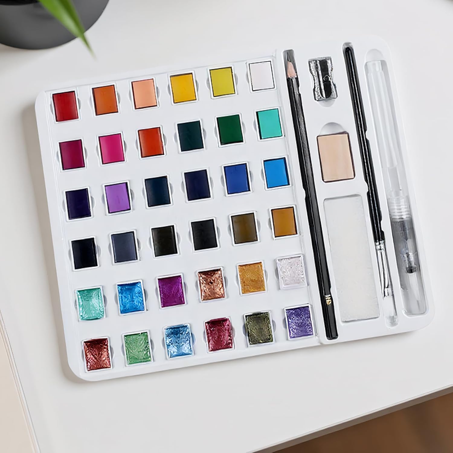 Portatile e funzionale: progettato per il comfort, il set acquerello per adulti facilita la pittura all'aperto con la sua struttura portatile e organizzazione efficiente, consentendo di creare arte spontaneamente durante i viaggi, viaggi o attività in natura, grazie al suo profilo sottile e allo spazio ottimizzato per il trasporto senza sforzo Applicazioni creative: tecniche di colorazione manuale e acquerello per dare vita a biglietti, arricchire pagine di diari e aggiungere stile artistico alla manicure. Soluzione pratica per diverse esigenze artistiche con risultati vivaci. Regalo ideale: questo set di acquerelli è il regalo perfetto per i bambini per compleanni o feste, permettendo la tua creatività con ore di divertimento artistico e incoraggiando l'espressione immaginativa durante il gioco Uso multifunzionale: la pittura ad acquerello è uno strumento artistico affidabile per le aule, consentendo l'applicazione su graffiti da viaggio e disegno esterno incoraggiando la creatività in ambienti casual come caffè, garantendo versatilità per uso educativo e artistico quotidiano Profondità visiva a strati: L'innovazione dei pigmenti offre effetti di colore avanzati attraverso una fusione di texture perlate e opache, ideale per creare opere accattivanti in aule o spazi artistici domestici.