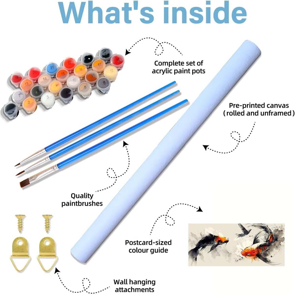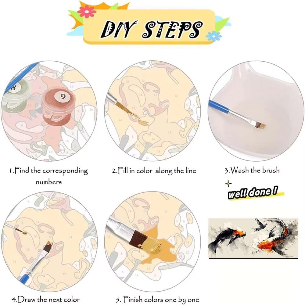 Adatto a tutte le età - Sei un bambino? Adolescente? Adulto? Principiante? Intermedio? Amante dell'arte? L'età e il livello di abilità non contano! Adatto a tutti Principianti dell'arte fai da te Dipinto a inchiostro Pesce Dipingere con i numeri Include - 75x150 cm/30x59 Inch tela prestampata 30x40 cm (senza cornice), 3 pennelli in nylon, colori acrilici di alta qualità abbinati e gancio. Apri la confezione e puoi iniziare a dipingere immediatamente Materiali di alta qualità - La stampa ad alta definizione rende i numeri chiari e facili da leggere, riducendo efficacemente l'affaticamento degli occhi. I nostri colori acrilici, ad asciugatura rapida e facili da miscelare, consentono di ottenere colori vivaci e duraturi che imitano la consistenza e la profondità dei tradizionali dipinti a olio Facile da usare - Non importa che siate bravi o meno a dipingere, potete creare un'immagine bella e squisita. Basta applicare la quantità di vernice corrispondente sulla tela. Il divertimento di creare un'opera d'arte straordinaria è indescrivibile Decorazione e regali perfetti - Quando si finisce questo meraviglioso fungo dipingere per numero kit, il tuo capolavoro illuminare la vostra stanza e la casa. Regala ad amici e persone care per compleanni, Natale e altre festività, un'idea regalo divertente e accattivante