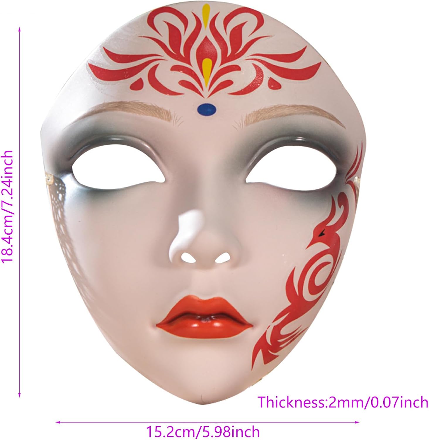 Dipinto a mano per donne uomini in maschera cosplay festa in maschera viso pieno per Halloween decorazione fotografia Caratteristiche: Tradizionale dipinto a mano Halloween per adulti, gli accessori per costumi in maschera sono progettati per aiutarti a ottenere un look misterioso ed elegante, ideale per cosplayer, feste in costume e spettacoli teatrali, accessori per vestire Halloween. Leggero e comodo da indossare. Questa maschera presenta una delicata lavorazione artigianale e cinghie regolabili per adattarsi a diverse dimensioni della testa, garantendo una vestibilità comoda e sicura. Adatto per adulti che amano il cosplay, i giochi di ruolo e l'espressione creativa, così come artisti e artisti che cercano di creare un carattere unico. Ampiamente usato per feste in costume di Halloween, feste in maschera, eventi a tema cosplay, teatrali, fotografie e altri eventi in cui vuoi fare dichiarazione con il tuo look. Aggiungi un tocco misterioso a qualsiasi vestito di Halloween, elevando il loro gioco cosplay o crea un personaggio memorabile. Specifiche tecniche: Colore: bianco. Componente: PP Dimensioni: ca. 15,2 x 18,4 cm. Peso: circa 77 g. La confezione include: 1 pezzo dipinto a mano. Nota bene: Si prega di considerare un margine di errore di 0-1 cm a causa della misurazione manuale. Assicurati di non avere un problema prima di fare un'offerta. 2. L'immagine potrebbe non rispecchiare il colore reale a causa delle diverse impostazioni dei monitor