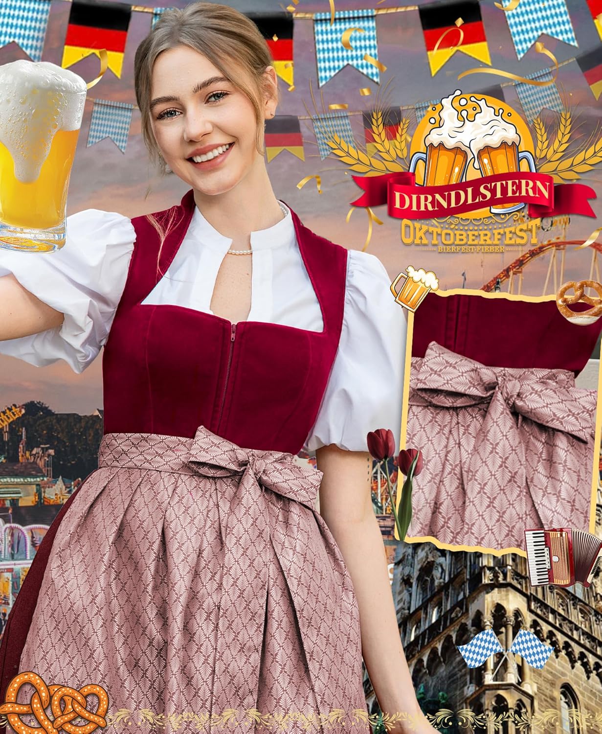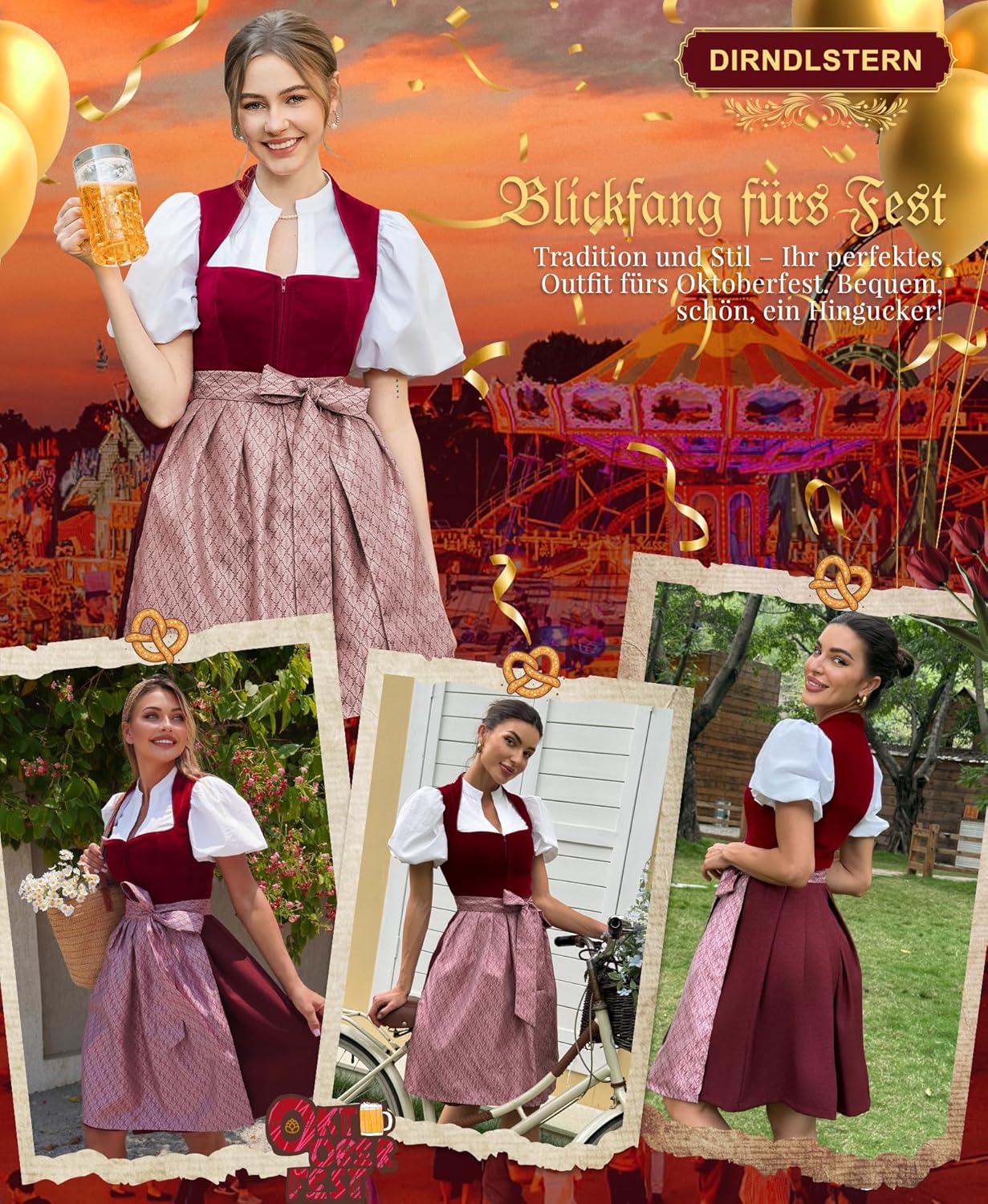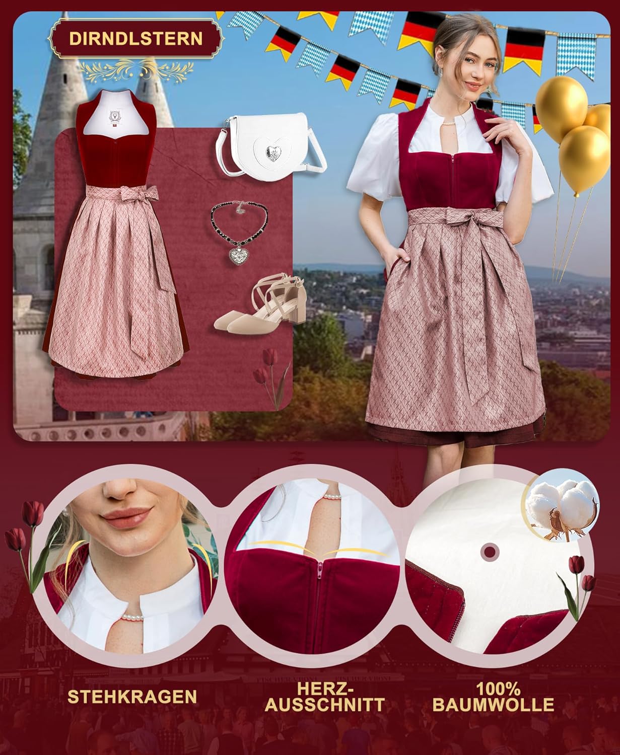 ⭐️⭐️⭐️⭐️⭐️ Dieses Dirndl ist einfach ein Traum! Schon beim Auspacken war ich begeistert von der wunderschönen, kräftigen roten Farbe – sie wirkt edel und festlich zugleich. Das Muster ist detailreich gearbeitet und verleiht dem Dirndl eine ganz besondere Note. Der Stoff fühlt sich sehr hochwertig, weich und angenehm auf der Haut an. Man merkt sofort, dass hier Wert auf Qualität und Verarbeitung gelegt wurde. Auch beim Tragen überzeugt das Dirndl auf ganzer Linie: Es sitzt perfekt, formt eine tolle Figur und ist dabei trotzdem bequem. Die Schürze mit dem Plissee-Effekt unterstreicht die Eleganz und macht das Outfit zu einem echten Blickfang. Ich habe schon viele Komplimente bekommen und fühle mich darin einfach wunderschön. Ob für das Oktoberfest, eine Hochzeit oder einen festlichen Anlass – dieses Dirndl passt perfekt und lässt einen strahlen. Ich bin überglücklich mit meinem Kauf und kann es wirklich jedem empfehlen, der ein hochwertiges, elegantes und stilvolles Dirndl sucht.