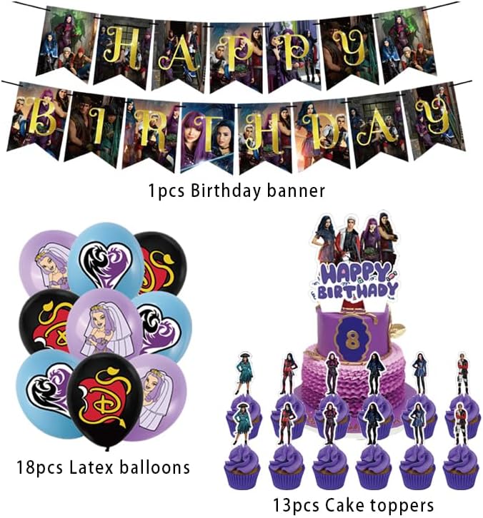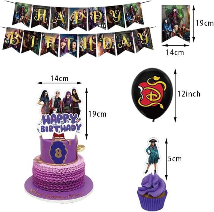 Il pacchetto di decorazioni per il compleanno di Discendenti include: 1 striscione di compleanno di Discendenti, 13 toppers per torta di Discendenti, 18 palloncini di Discendenti. Palloncini per feste di qualità realizzati con materiali di alta qualità, il set è resistente e durevole, con colori vivaci e design delicati per una facile trasportabilità. La decorazione di compleanno dei discendenti è sufficiente infilare gli striscioni nell'ordine giusto, gonfiare i palloncini e potrai decorarli facilmente dove vuoi. Il palloncino compleanno dei discendenti può essere utilizzato per feste di compleanno, feste di carnevale, feste a tema, feste a sorpresa per aggiungere più divertimento alla festa. Decorazione di compleanno dei discendenti se non sei soddisfatto dei nostri prodotti, contattaci direttamente e lo risolveremo il prima possibile.
