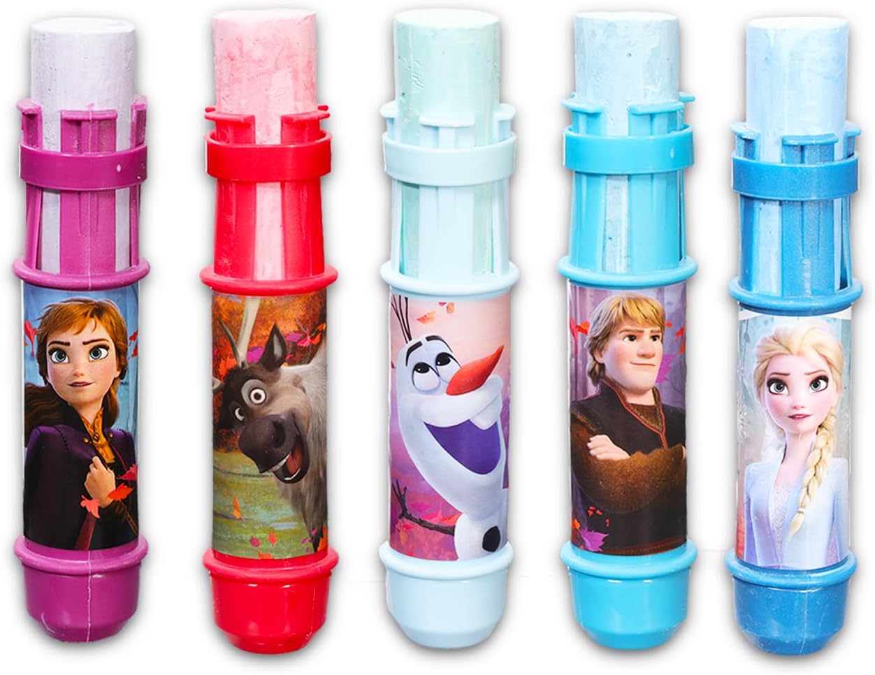 Articoli per feste per bambini con gesso congelato sul marciapiede - Confezione con 5 bastoncini di gesso Jumbo congelati con porta gesso e adesivi, altro ancora | Bomboniere congelate per ragazze. Questo set da gioco all'aperto Frozen include 5 pezzi di gesso jumbo con porta gesso per mantenere le mani pulite dalla polvere di gesso. I porta gessetti presentano i personaggi preferiti di Frozen Elsa, Anna, Olaf, Kristoff e Sven. Il set di gessi Jumbo Frozen delizierà sicuramente qualsiasi fan di Disney Spostare il porta gesso verso l'alto per ottenere il massimo da ogni pezzo di gesso. Perfetto come forniture per feste per bambini o bomboniere di Frozen. I bambini possono disegnare immagini o giocare su marciapiedi, cemento o lavagne. È un ottimo strumento per liberare la creatività, attivarsi o rafforzare il riconoscimento del colore. Gesso per esterni con licenza ufficiale Disney Frozen. Facile da pulire. Si lava via con acqua. Realizzato con materiali atossici. Sicuro per bambini dai 3 anni in su. Il set include anche adesivi Frozen e un gancio per porta del castello delle principesse Beach Kids.