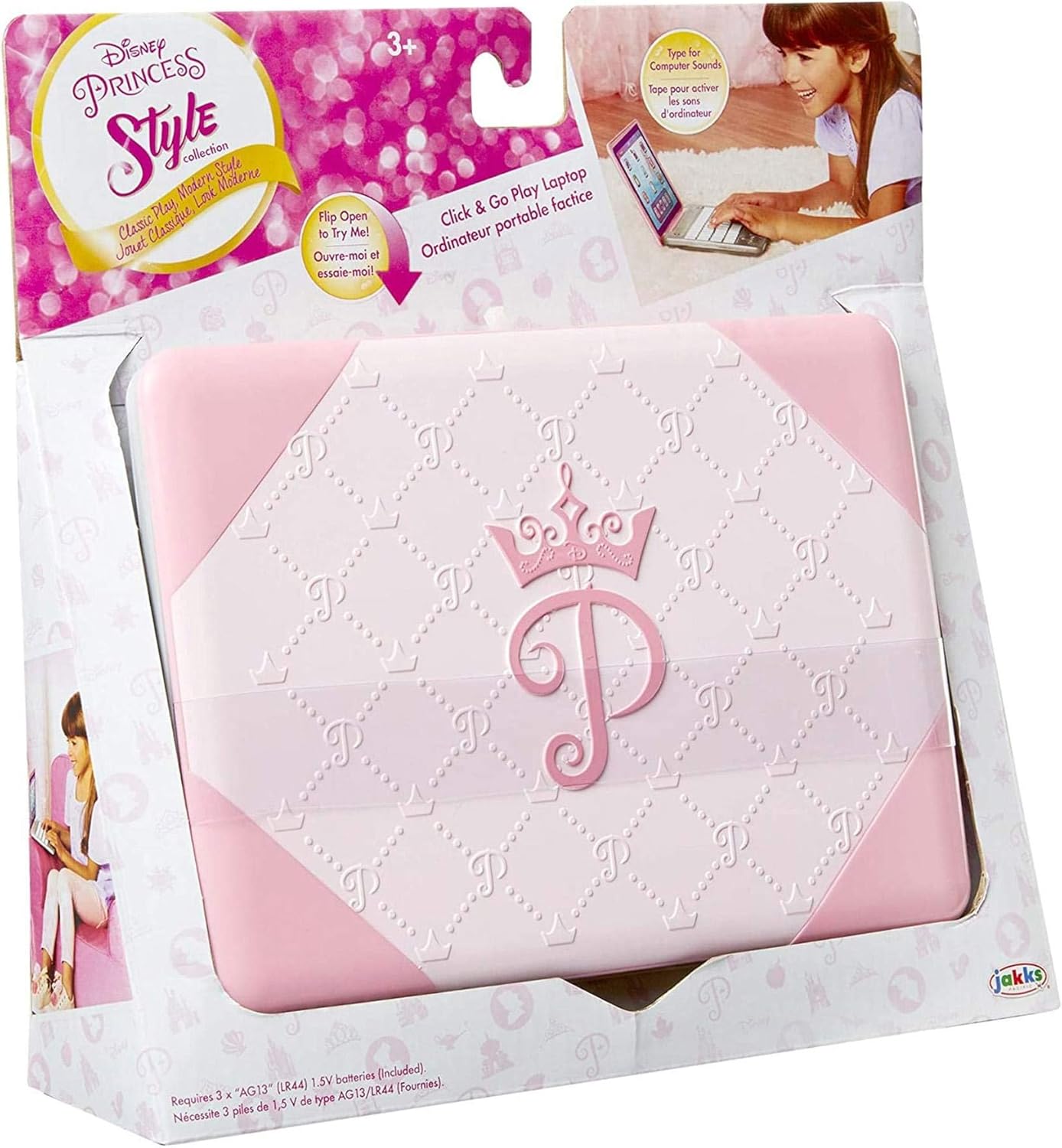 Il pulsante di accensione si illumina quando lo si preme Play laptop emette rumori del computer e include uno sfondo rimovibile. Include: Play Laptop e Play Sfondo rimovibile su entrambi i lati Sono necessarie 3 batterie a bottone (incluse) Consigliato per bambini dai 3 anni in su