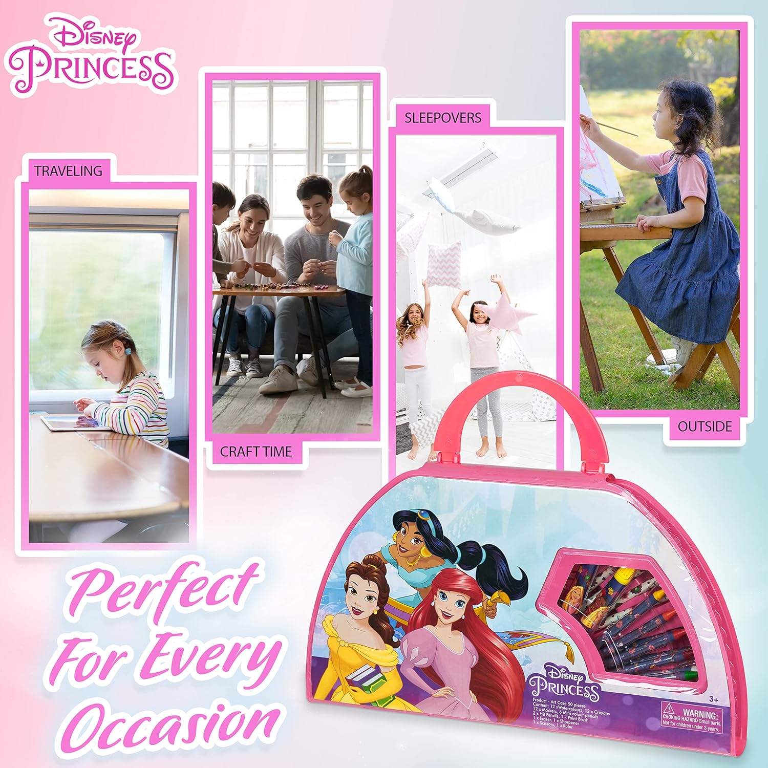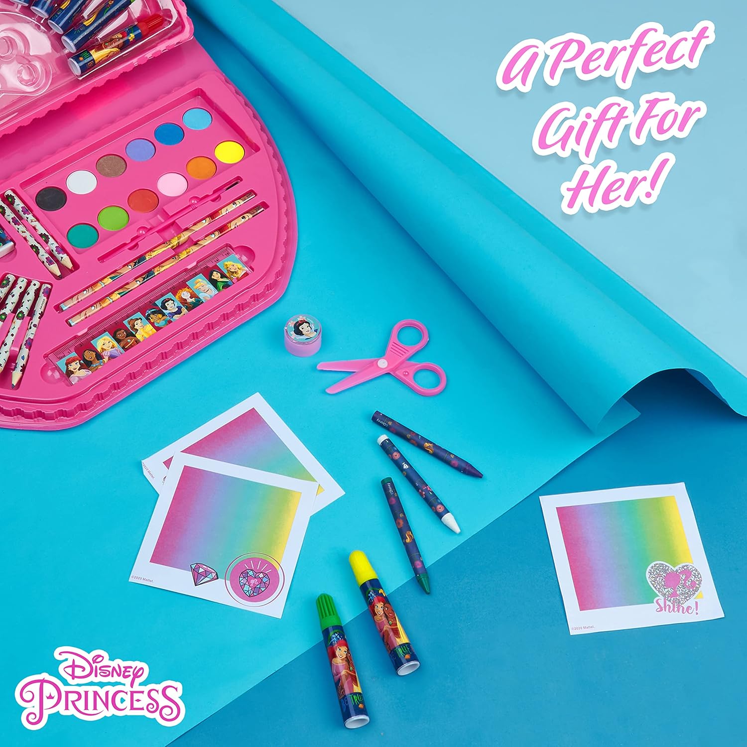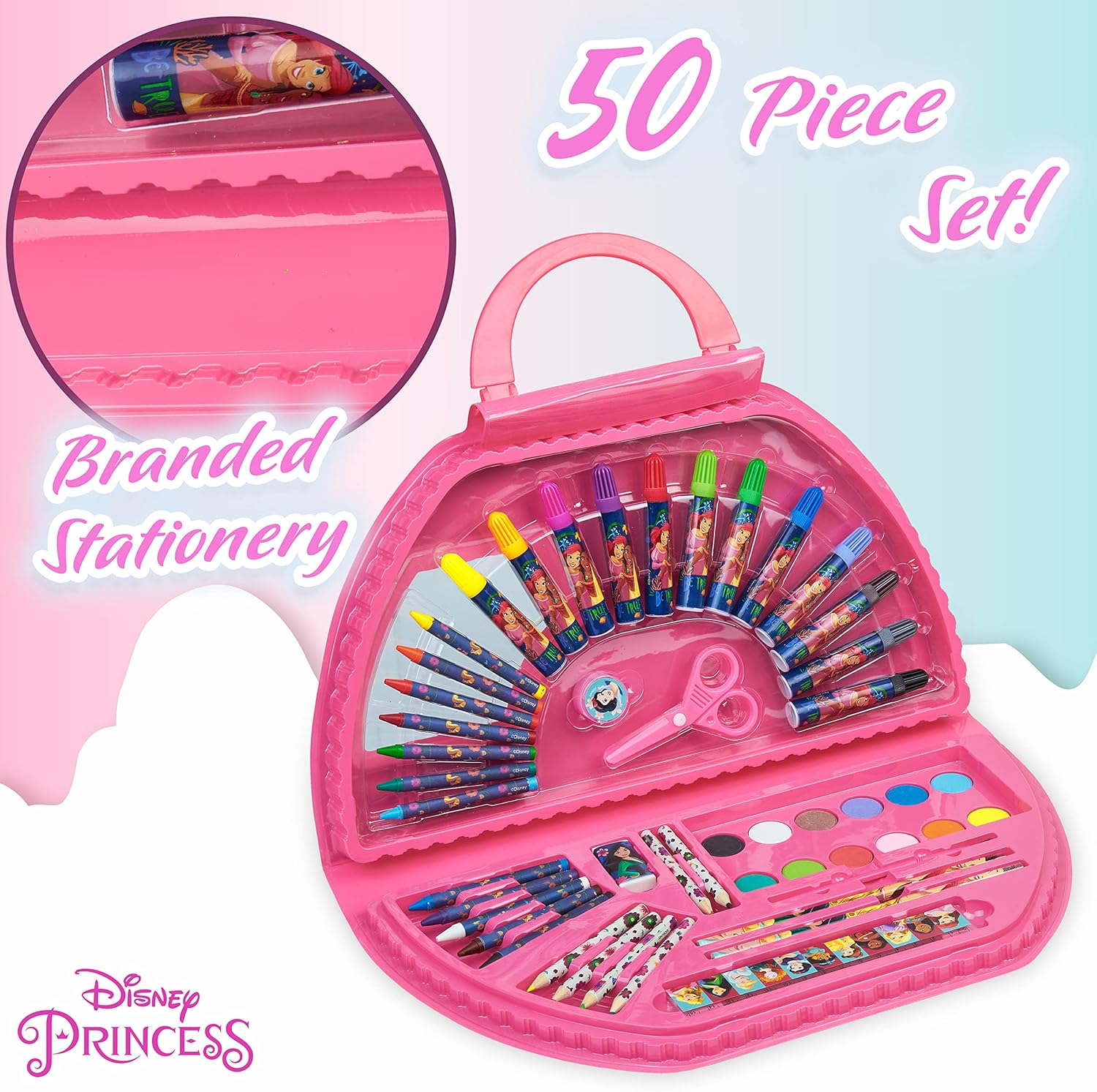 Fantastico set di colori Principesse Disney e Stitch, organizzati in una comoda valigetta con con pratico manico per il trasporto! Il kit da disegno per bambini è perfetto per tutte le piccole artiste che vogliono sempre con sè i loro colori per disegnare La valigetta colori bambina, completa di un kit colori per bambini con 45+ pezzi, è parte del merchandise ufficiale delle Principesse Disney e dei gadget Stitch originali La valigetta colori principesse Disney include tantissima cancelleria: righelli, pastelli, matite colorate, forbici, acquerelli e tanto altro! Vedi tutte le immagini per le informazioni complete Cofanetto colori bambina portatile: la valigia colori bambina è perfetta da portare a casa di amichette, a scuola e in vacanza. Non lasciarti trovare impreparata quando arriva l'ispirazione! Ordina subito il fantastico gadget Principesse Disney o quello di Stitch Disney Cerchi delle idee per dei regali per bambina? Il kit disegno bambini è un regalo perfetto per le piccole principesse che amano colorare e disegnare! Perfetto per compleanni, Natale e ogni occasione speciale