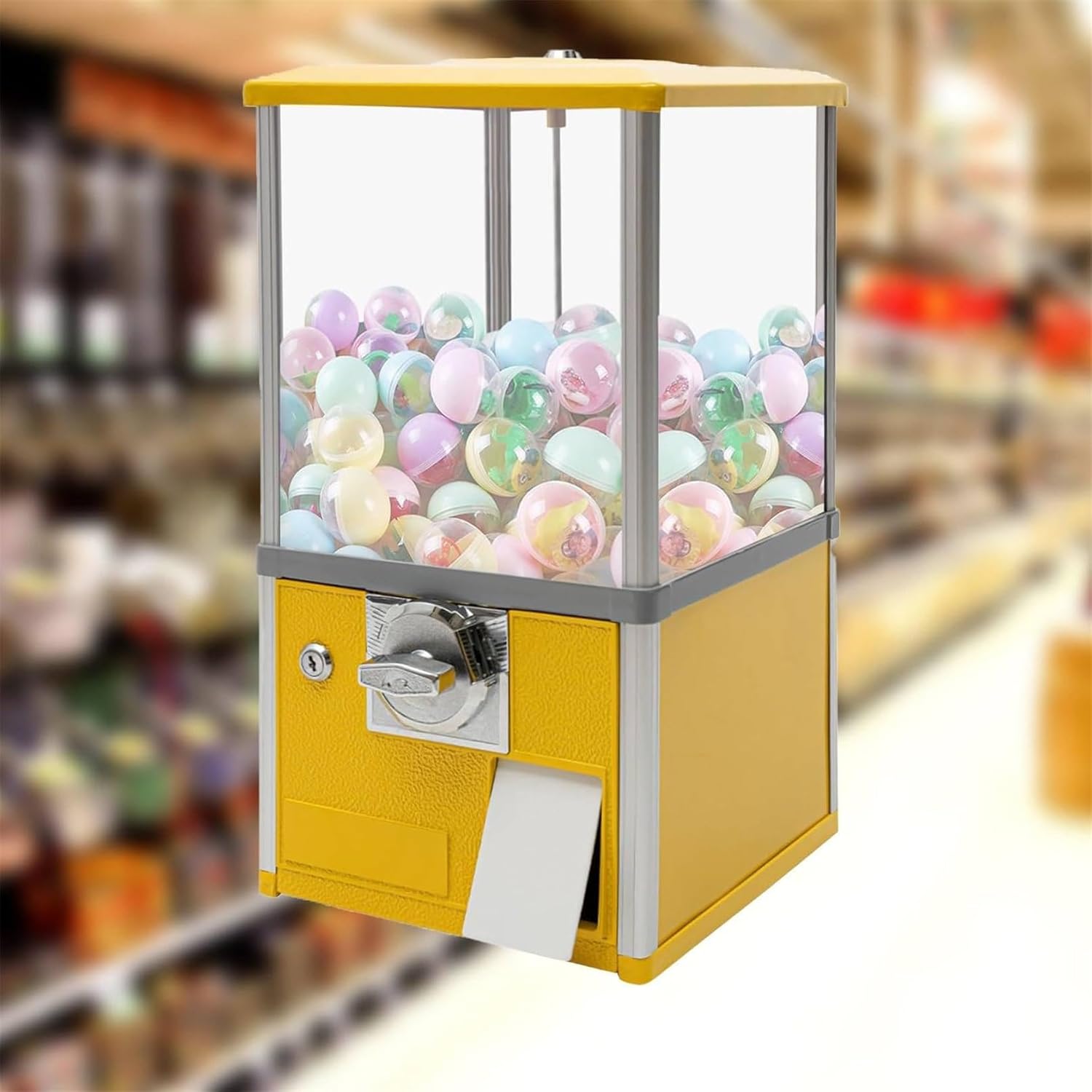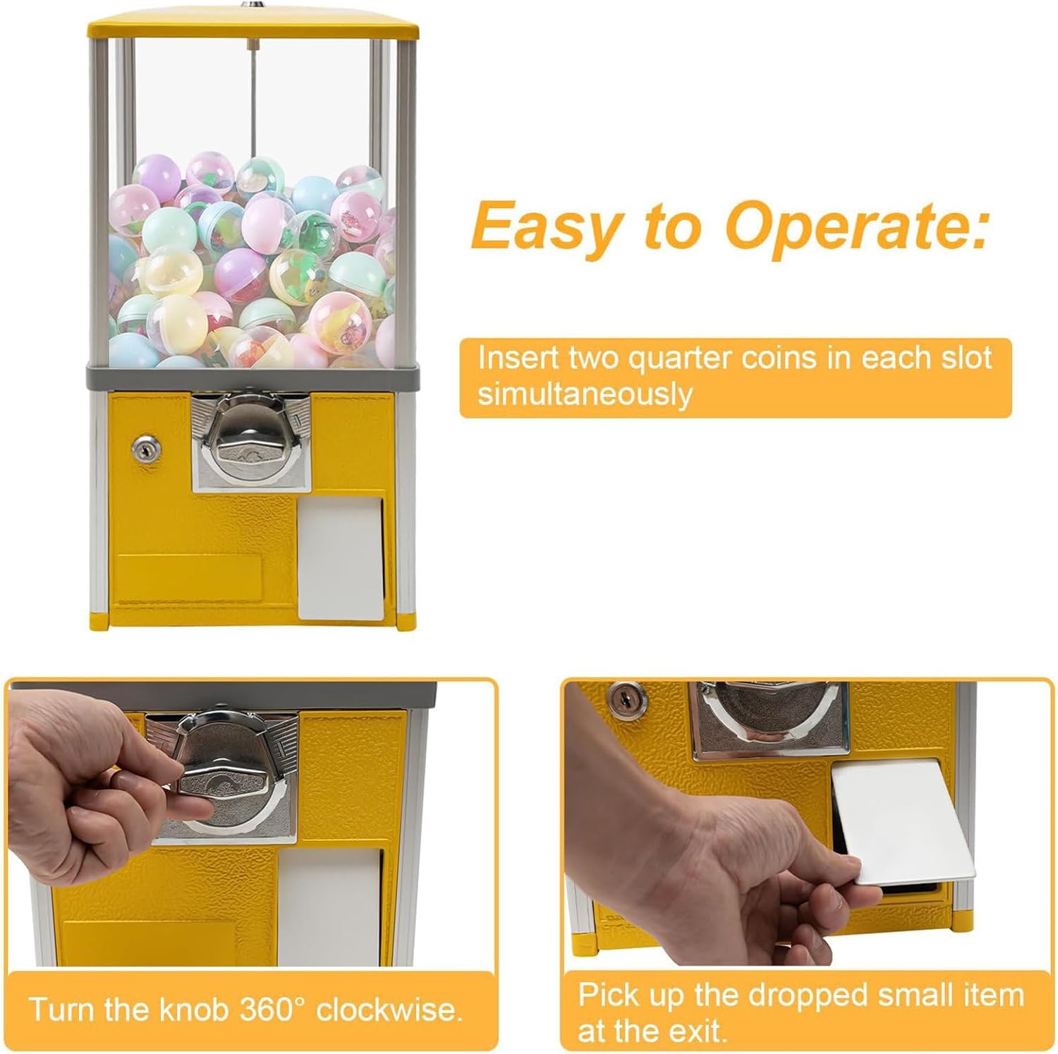 ✌ 【Aspetto carino】 Questo grande distributore di capsule presenta colori vivaci, con capsule e caramelle colorate, creando un'atmosfera magica e onirica. Questo distributore di caramelle ha attirato molti bambini e adolescenti grazie ai suoi colori vivaci. ✌【Grande capacità】Le sue grandi dimensioni di 26 x 29 x 53 cm possono contenere circa 800-1000 monete, 200 uova in capsula (4,3 cm) o 150 uova in capsula (4,8 cm), evitando frequenti aggiunte e rimozioni di monete. Soddisfa le esigenze di intrattenimento della maggior parte dei visitatori di centri commerciali e parchi divertimento. ✌【Alta Sicurezza】Il salvadanaio interno ha una serratura di sicurezza, che può essere aperta solo con la nostra chiave corrispondente, permettendoti di conservare le tue monete in modo sicuro. ✌ 【Materiali di alta qualità】 Questo distributore automatico utilizza metallo e ABS di alta qualità come materie prime, che hanno elevata durezza, robustezza e durata, prolungandone la durata. ✌【Facile da usare】Basta posizionare le monete su entrambi i lati della fessura, quindi ruotare la manopola di 360° in senso orario per inserirle nella presa. L'operazione è semplice e richiede solo pochi minuti. La finestra trasparente permette una migliore osservazione dei prodotti interni, permettendo ai clienti di percepire in modo più intuitivo la rotazione e la caduta dei prodotti.