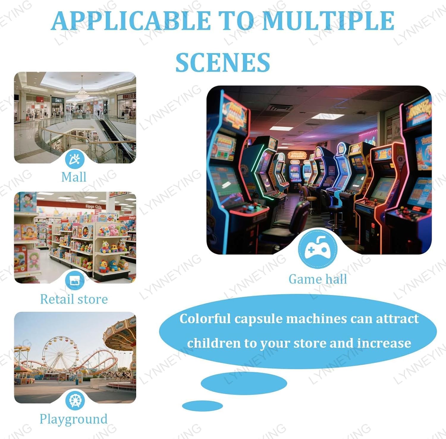 🎯【FACILE DA USARE】La macchina a gettoni Gashapon è incredibilmente facile da usare: inserisci 1-4 monete (accetta quarti statunitensi per impostazione predefinita, personalizzabili per altre valute) e gira la manopola di 360° per erogare giocattoli Gashapon (25-58 mm) o caramelle. Nessuna installazione complessa: i bambini e i clienti lo utilizzano facilmente nelle sale giochi, nei centri commerciali o nei negozi. Il meccanismo a gettoni fluido e affidabile garantisce ogni volta un'esperienza divertente e senza problemi! 💪 【ULTRA FORTE E DUREVOLE】 Realizzato in lega di zinco di alta qualità, questo distributore di caramelle commerciale è robusto, infrangibile e resistente all'usura. La cupola della capsula ad alta trasparenza consente ai clienti di vedere i premi mantenendoli al sicuro. Anche a pieno carico, con oltre 150 giocattoli in capsule (4,8 cm) o 800-1.000 pezzi, non si ribalta: ideale per parchi divertimento affollati, centri commerciali e aree di intrattenimento per famiglie. 🔒【DESIGN AD ALTA SICUREZZA】Preoccupato per il furto? Il grande distributore di giocattoli Pod è dotato di un doppio sistema di chiusura: gettoniera sicura e serratura superiore, accessibile solo con la chiave inclusa. Il telaio rotante consente una facile visualizzazione degli oggetti proteggendoli. Perfetto per luoghi non monitorati: i tuoi profitti e premi rimangono al sicuro da eventuali manipolazioni! 🚀【GRANDE CAPACITÀ】Con il suo design spazioso di 26x29x53 cm, questa macchina per gacha può contenere oltre 150 giocattoli in capsule (1,77 pollici) o 800-1000 pezzi, riducendo il rifornimento costante. La sua grande capacità di stoccaggio lo rende ideale per luoghi ad alto traffico come sale giochi, cinema e negozi di giocattoli. La finestra trasparente evidenzia i prezzi, aumentando il coinvolgimento del cliente! 🎨【ATTRAENTE E VERSATILE - AUMENTA LE VENDITE!】Design nei vivaci colori blu/rosso/bianco/giallo/verde, la macchina per caramelle vintage Gashapon crea un'atmosfera magica che attira bambini e adolescenti. Le sue dimensioni compatte (29x26 cm) si adattano a spazi ridotti, con una capacità di carico di 7 kg garantendo stabilità. Che contenga giocattoli misteriosi, caramelle o biglie, è un'attrazione che genera profitti: zero costi di manodopera, puro reddito passivo per la tua attività!