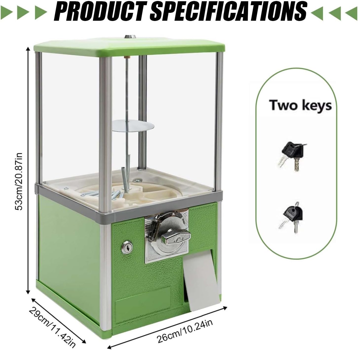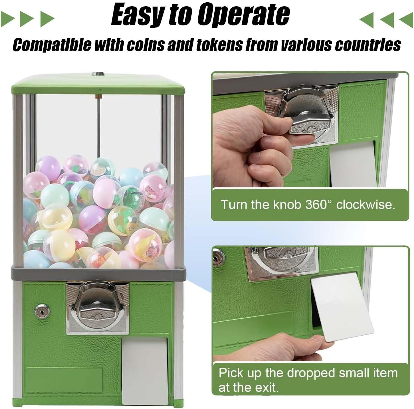 ⭐ Grande capacità ed efficienza professionale – La nostra macchina gashapon commerciale offre una generosa capacità di 150 capsule standard da 4,8 cm o 200 capsule piccole da 4,3 cm. Progettato per sostenere un traffico intenso, è ideale per centri commerciali, supermercati, sale giochi e parchi divertimento. Un cassetto portamonete sicuro può contenere fino a 800 monete. 🔒 Sicurezza Rinforzata e Massima Durata – Realizzata in lega di zinco-alluminio e plastica ABS/PS antiurto, questa macchina erogatrice resiste a carichi fino a 7 kg. Il sistema di chiusura a chiave protegge il tuo reddito e il tuo inventario. La sua base girevole a 360° consente una visibilità ottimale delle capsule per attirare i clienti. 🌍 Compatibile con diverse valute – Questo distributore automatico è dotato di una gettoniera regolabile che accetta da 1 a 4 monete (29-30 mm). Di default funziona con due monete da 25 centesimi. Adattiamo gratuitamente la gettoniera alla tua valuta locale, perfetta per le zone turistiche e le attività multisede. 🎡 Funzionamento meccanico semplice e divertente – Senza elettricità né supervisione, il suo funzionamento è meccanico al 100%: inserisci una moneta, gira il pulsante e ricevi la capsula. La base trasparente e il tubo filettato prevengono i blocchi, offrendo un'esperienza divertente e sicura adatta sia a bambini che ad adulti. 🎨 Versatilità e design accattivante – Disponibile in 6 colori vivaci (rosso, blu, verde, giallo, bianco, nero), questa macchina cattura immediatamente l'attenzione. Facile da installare e spostare, aumenta le tue entrate in vari ambienti: negozi, feste, sale giochi o eventi. Compatto e affidabile, è un investimento ad alto rendimento.