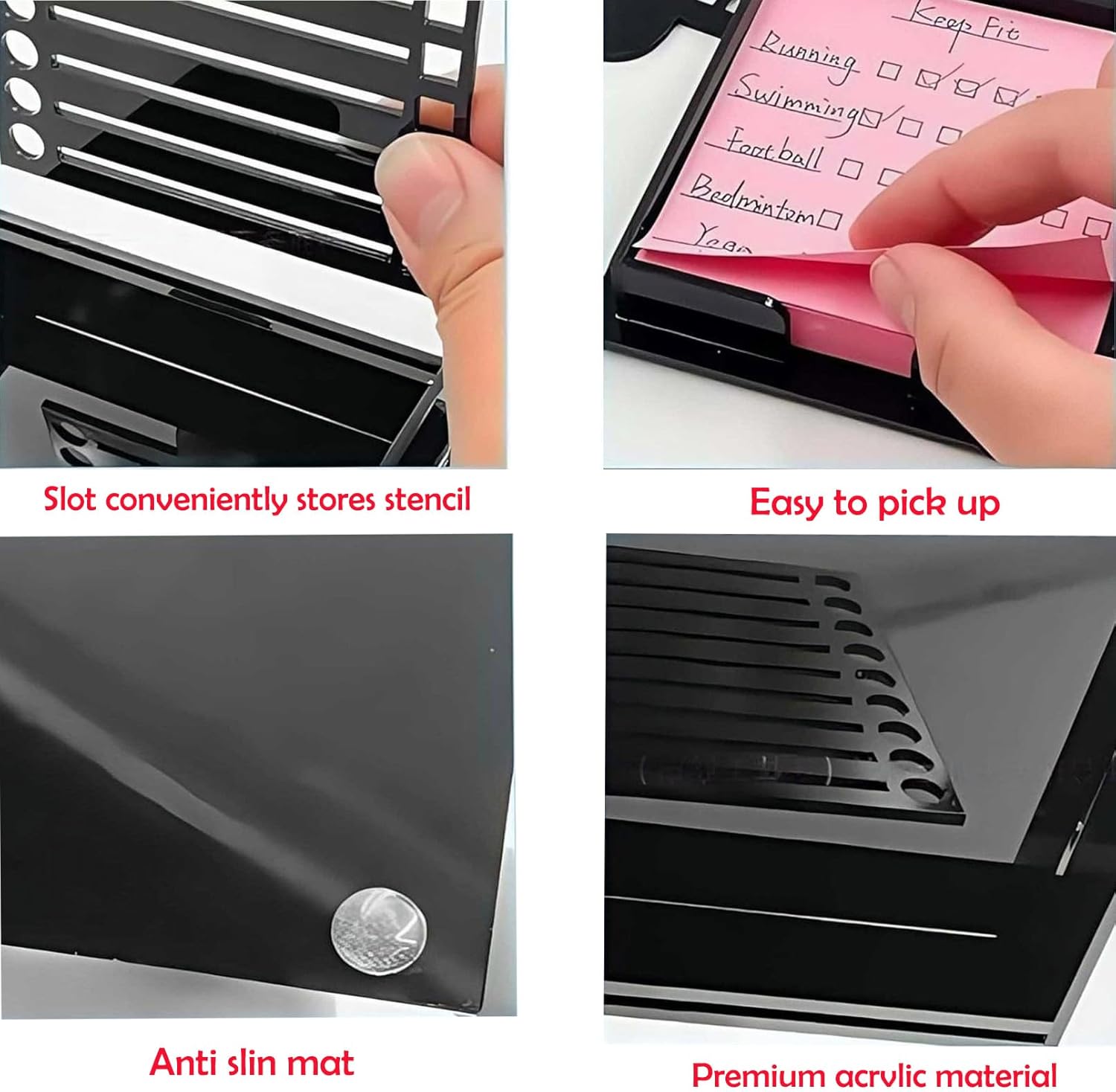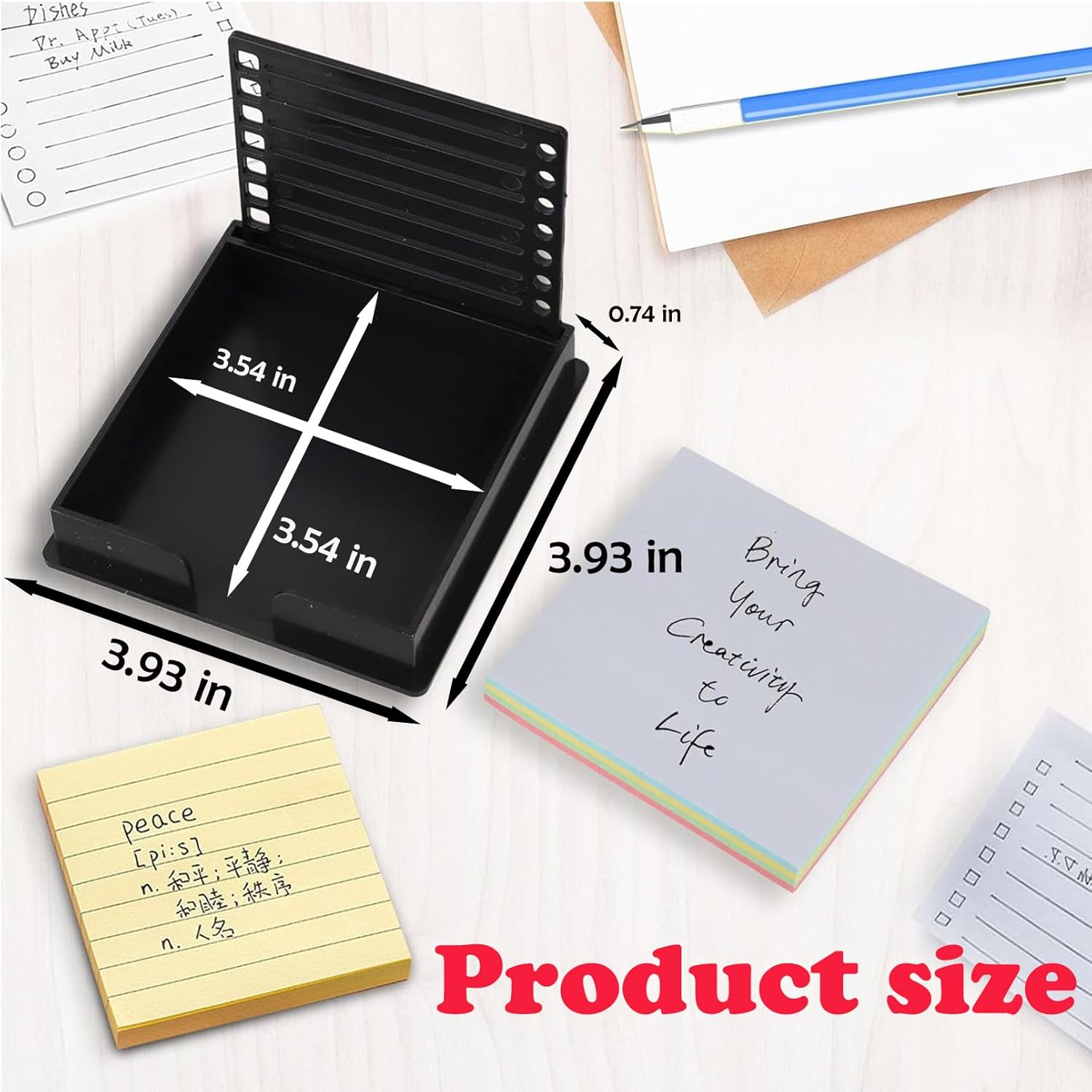★ 【Forniture di lavoro perfette】 ★: Progettato per aiutarti a gestire le tue attività quotidiane, questo organizer per foglietti adesivi è l'accessorio ideale per le persone meticolose. Grazie a questo essenziale, puoi organizzare facilmente le tue liste di cose da fare e aumentare la produttività. ★ 【Precisione della scrittura】 ★: le linee sulla scatola possono servire come modello per elencare i tuoi progetti o attività in modo chiaro e regolare. Ciò renderà il tuo elenco più chiaro e più facile da leggere. ★ 【Personalizza il tuo spazio di lavoro】 ★: Migliora l'estetica del tuo spazio di lavoro con questo elegante porta foglietti adesivi. Il suo design elegante e moderno si adatta perfettamente a qualsiasi arredamento dell'ufficio, sia che tu preferisca uno stile minimalista o audace. Non solo abbellisce la tua scrivania, ma tiene anche i tuoi foglietti adesivi a portata di mano. ★ 【Pratico】 ★: Uno strumento ideale per prendere appunti in modo efficace, questo organizer per foglietti adesivi è allo stesso tempo elegante e pratico per documentare le tue esperienze. È un regalo versatile per chiunque abbia bisogno di organizzare la propria vita e migliorare la propria produttività, dagli studenti agli insegnanti ai colleghi. ★ 【Applicazione】 ★: questo porta note è adatto per blocchi note da 3 x 3 pollici e foglietti adesivi. Questo porta appunti da scrivania è adatto a casa, ufficio, scuola e altri luoghi ed è un accessorio da scrivania ideale.