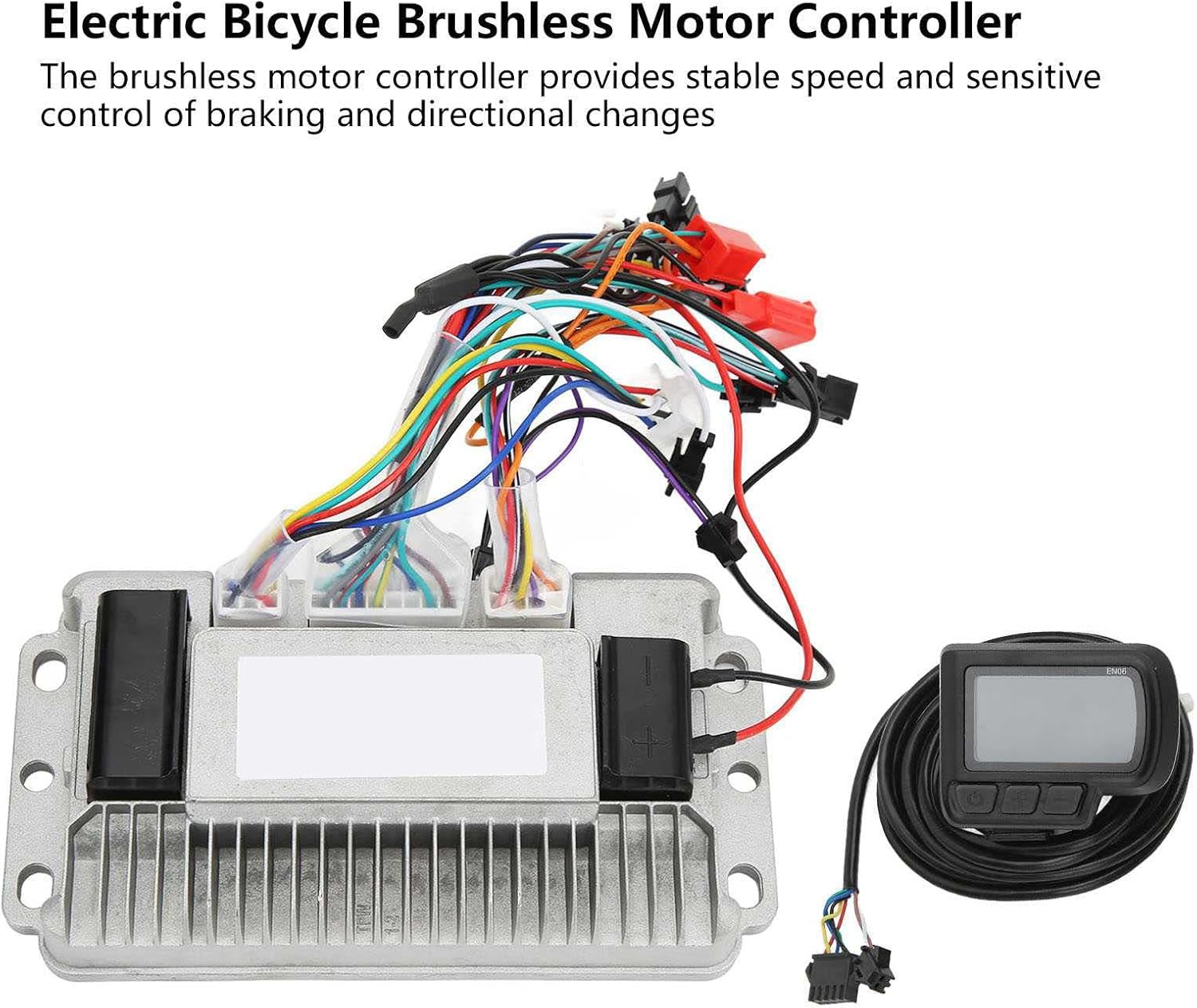 Ambito di applicazione: questo controller motore brushless 36V 48V 1000W è facile da installare e utilizzare, adatto per bici elettriche, scooter, ecc. Con supporto per schermo LCD, adatto per manubri da 22 mm di diametro. Funzione display LCD: il display LCD può mostrare chiaramente lo stato e i dati, la retroilluminazione consente di vedere chiaramente lo schermo in un ambiente buio e i pulsanti sono rapidi e facili da usare. Alloggiamento in lega di alluminio: l'alloggiamento del controller è realizzato in lega di alluminio di alta qualità con design scanalato, che protegge i circuiti interni dal sovraccarico termico con una buona dissipazione del calore. Controllo sensibile del freno: il controller a onda sinusoidale del motore 36V/48V 1000W può fornire una velocità stabile e un controllo sensibile della frenata e dei cambi di direzione. Lavorando in modalità 3 modalità: quando la sala motori è normale, funzionerà automaticamente in modalità onda sinusoidale. Se un capannone viene danneggiato, viene automaticamente identificato e riparato. Quando tutte le sale sono danneggiate, passa alla modalità nessuna sala