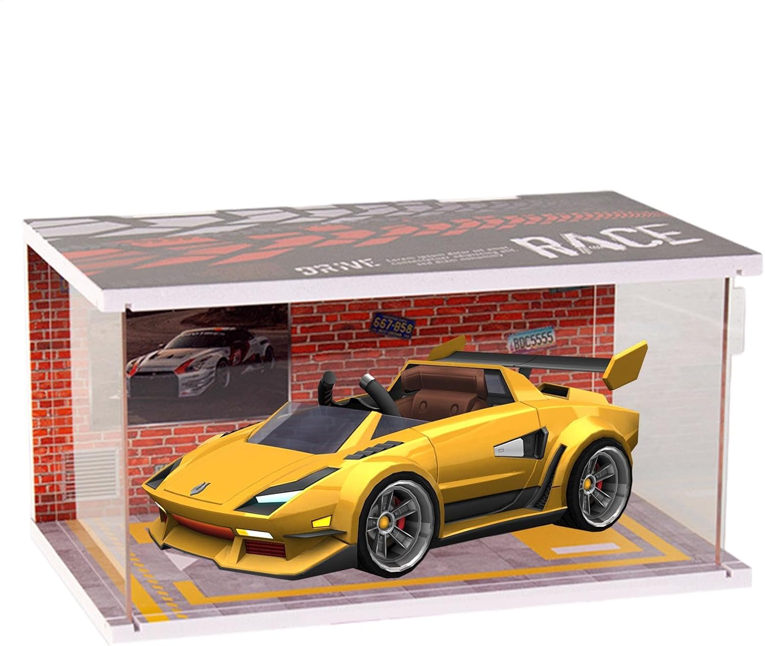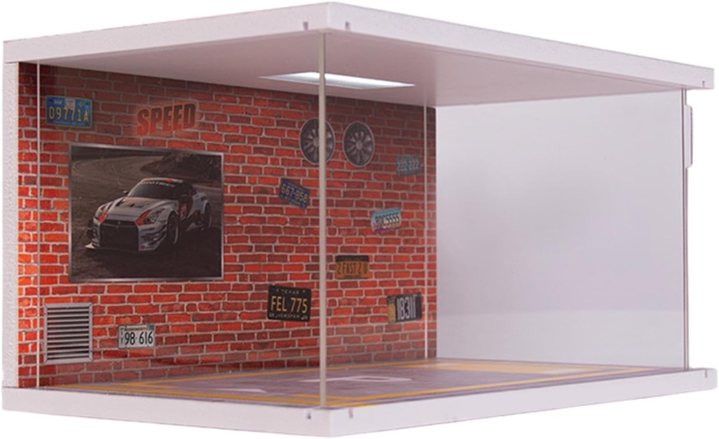 Visualizzazione migliorata: con una copertura acrilica trasparente, il nostro Model Garage offre una visione senza ostacoli del tuo modello di auto, presentandolo in tutto il suo splendore. Inoltre, la copertura protegge l'auto da polvere e altri contaminanti Migliora l'atmosfera della scena: con il suo impressionante effetto luminoso e le luci LED integrate sul soffitto, il Model Garage aumenta l'atmosfera di qualsiasi scena, fornendo spettacolo realistico e affascinante per il divertimento di tutti Durabilità a lunga durata: con la sua perfetta qualità costruttiva, questo modello di garage è fatto per resistere e durare, grazie alla sua struttura robusta e ai materiali eccellenti. Perfetto per un uso a lungo termine e per migliorare la tua collezione Assemblaggio semplice: il nostro semplice processo di assemblaggio ti consente di assemblare facilmente il tuo Model Garage in pochi minuti. Risparmia e goditi il tuo nuovo garage con facilità Bel regalo: sorprendi la amata con questo perfetto modello di garage come regalo eccellente per qualsiasi evento festivo, compleanno o celebrazione. Con le sue caratteristiche uniche, è una raccomandazione perfetta per rendere ogni occasione cara per sempre