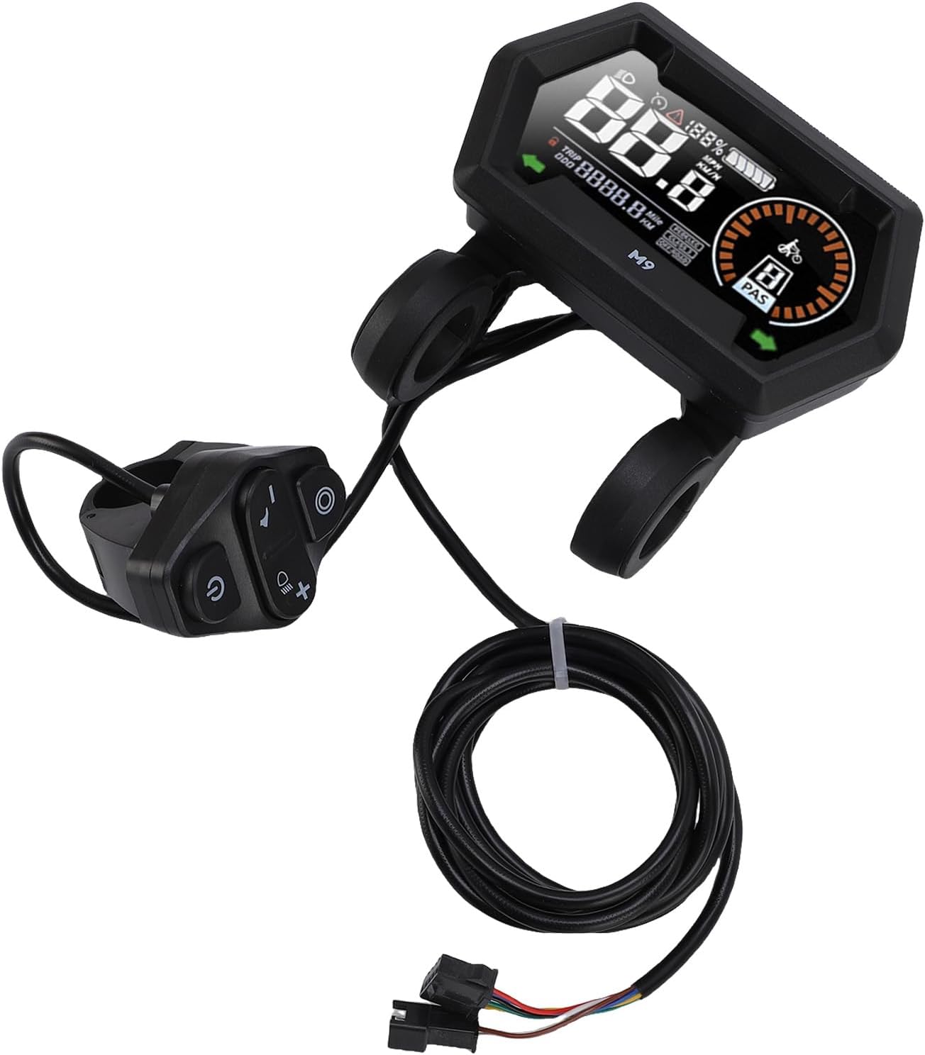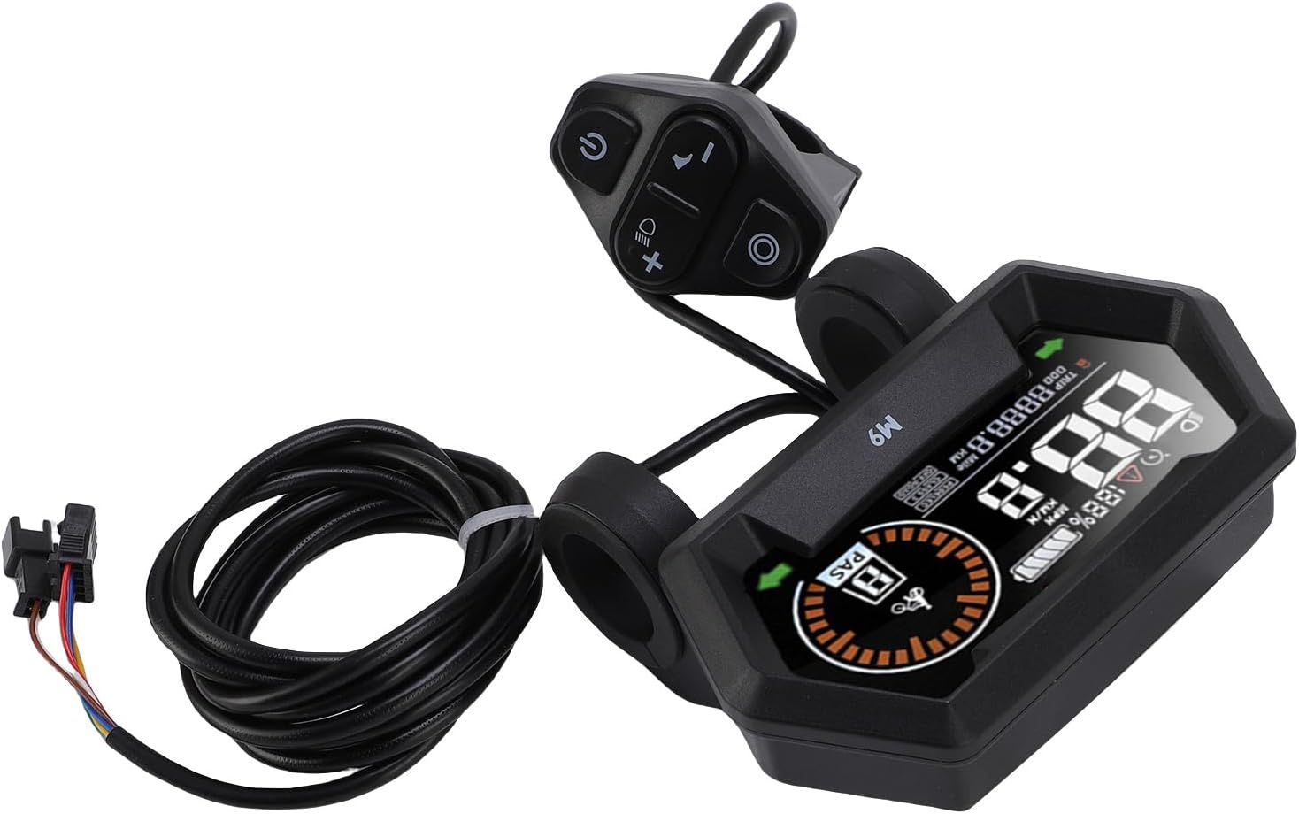 [Materiale durevole] Realizzato in materiale ABS leggero ma robusto, fornisce un'eccellente protezione per i circuiti interni e una lunga durata. [Ampia compatibilità] Supporta la comunicazione del controller N0.2 con connessione via cavo SM per varie biciclette elettriche. [Display vibrante] Schermo a colori vivaci facilmente leggibile alla luce del giorno e al buio, rendendo il tuo viaggio più comodo e divertente. [Design ergonomico] Pulsanti esterni progettati per un funzionamento comodo e intuitivo, migliorando l'esperienza di guida complessiva. [Installazione flessibile] Compatibile con i sistemi a 24 V, 36 V e 48 V, offre opzioni di installazione flessibili per un'ampia gamma di bici elettriche.