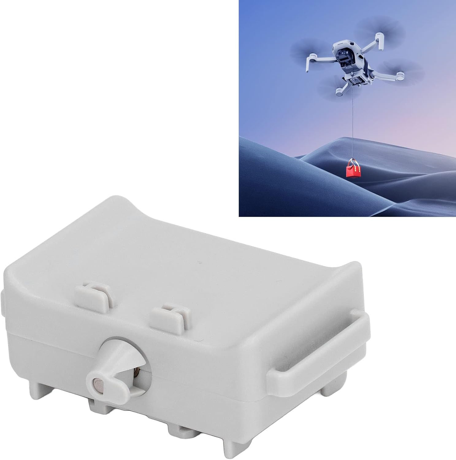 Semplice: nuovo design pneumatico, eccellenti prestazioni di riduzione del rumore; È semplice, ruotare per 10 secondi sul posto per la consegna, in modo che il drone possa eseguire lo stato preimpostato all'interno del raggio d'azione del telecomando e realizzare la consegna a punto fisso degli articoli. Compatto e portatile: il volo non influisce sulle riprese, di notte con il metodo fotografico a lunga esposizione, puoi ottenere effetti visivi squisiti, migliorare la tua sensazione di applicazione, offrirti una bella esperienza. Materiale di qualità eccellente: realizzato in ABS e componenti elettronici di qualità eccellente, lavorazione robusta e squisita, solido e stabile, non facile da staccare, facile da installare e smontare. Getta oggetti leggeri: sicuro e senza peso, design leggero, dinamico e non influisce sul volo, può essere utilizzato in una varietà di scenari, come fiori, scatole , anelli, esche da pesca e altri oggetti da 60 g. Articoli di consegna precisi: sensore ad alta sensibilità integrato, chip di controllo anti-interferenza, elaborazione di algoritmi speciali, articoli di consegna accurati. Progettato per droni Mini 2SE per droni Mini 2 per droni Mini SE.