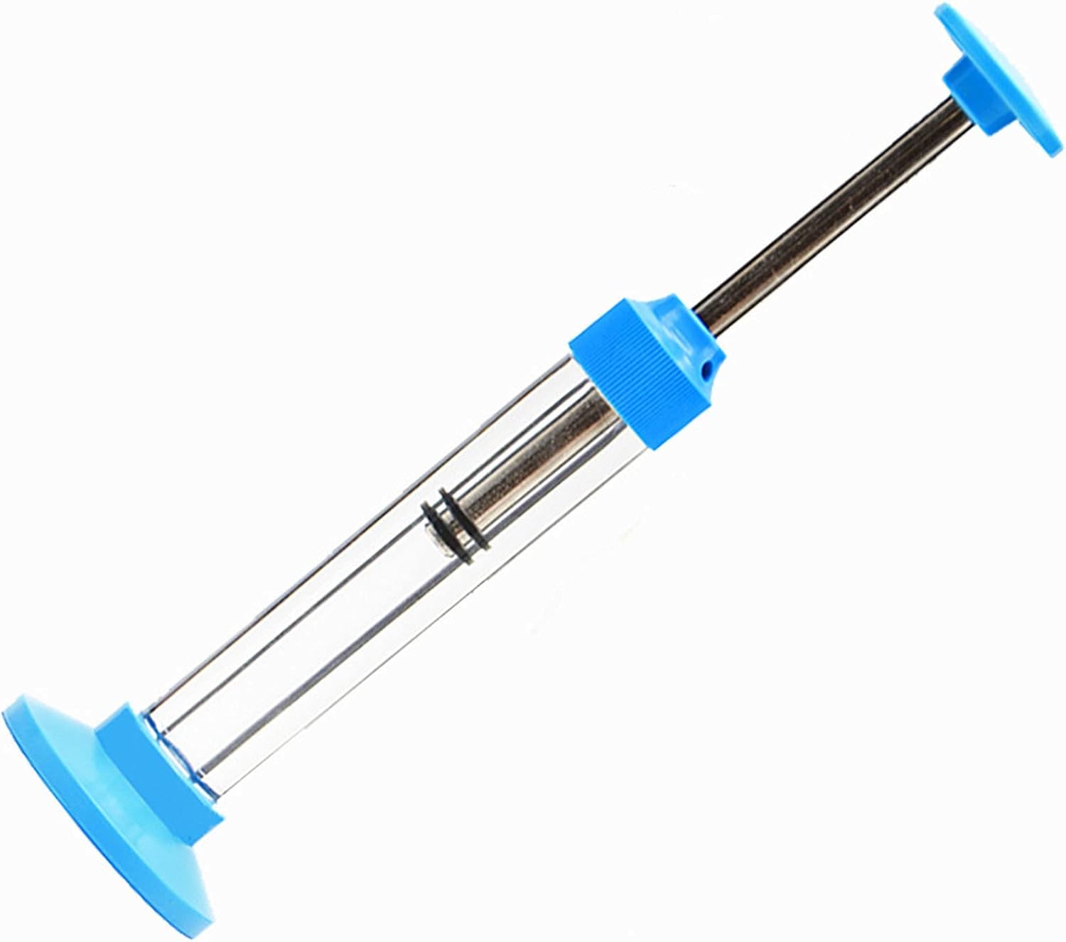 Questo strumento dimostra il fenomeno per cui la temperatura aumenta quando il gas nel contenitore chiuso viene compresso bruscamente e l'energia meccanica viene convertita in energia termica. Svitare la maniglia e il coperchio superiore del cilindro in plexiglass, inserire la biella nel coperchio superiore, quindi avvitare la maniglia. Metti un piccolo gruppo di cotone assorbente pulito sul fondo del cilindro in plexiglass, spingi il pistone rivestito di olio lubrificante nel cilindro e stringi il coperchio superiore. Posizionare il cilindro in posizione verticale sul tavolo e premere la maniglia del pistone con la mano per spingere rapidamente il pistone verso il fondo del cilindro. In questo momento, il cotone assorbente brucia.