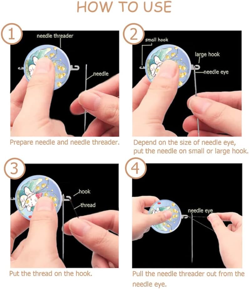 Design raffinato: bordi lisci, motivi nitidi e colori vivaci per un'esperienza di ricamo unica. Materiali di qualità: punta resistente alla ruggine, flessibile e durevole, unendo divertimento e funzionalità. Multifunzione: ideale per filo corto, aiuta i principianti a infilare rapidamente migliorando l'efficienza del ricamo; magnete posteriore incluso. Facile da riporre: piccolo (1.97x1.97 in), compatto e adatto a scatole da cucito o custodie. Regalo perfetto: semplice da usare, ideale per appassionati di fai-da-te, cucito, creazione gioielli e altro.