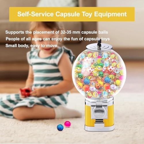 【Distributore automatico di caramelle】: Il nostro distributore automatico a gettoni è fatto della lega di alluminio di alta qualità e della lega di zinco. Il barattolo della capsula è realizzato in materiale PS ad alta trasparenza, che può visualizzare meglio i prodotti all'interno e consentire ai clienti di visualizzare il processo di capovolgimento e caduta dei prodotti, ed è resistente ai graffi e facile da mantenere. Grande capacità: la capsula a sfera sul distributore automatico di caramelle ha un diametro di 28 cm e può contenere circa 240 capsule giocattolo (3,2 cm). Può evitare frequenti aggiunte di capsule giocattolo o rimozione di monete, soddisfacendo anche le esigenze di intrattenimento della maggior parte dei visitatori del centro commerciale e del parco divertimenti. 【Alta sicurezza】: il distributore automatico è dotato di una serratura sulla cassetta dei contanti e sulla parte superiore della macchina, e solo la nostra chiave corrispondente può aprirla. Può impedire che i giocattoli e le monete vengano rubati. Il telaio può essere ruotato, il che è conveniente per i clienti vedere la posizione degli articoli all'interno della macchina. Facile da usare: tutto quello che devi fare è mettere una moneta nella macchina e ruotare la manopola di 360° in senso orario per far cadere oggetti alla presa. Questo processo è facile da padroneggiare e richiede solo pochi minuti. L'uscita è molto liscia e ha un coperchio. Apri il coperchio per ottenere facilmente gli oggetti a cui ti rivolgi e chiudilo per evitare che l'oggetto cada. 【Scenario di applicazione】: questa macchina non richiede di stare in piedi tutto il giorno, è sufficiente aggiungere merci ed estrarre monete regolarmente. Il design interessante della macchina della capsula può essere integrato in diversi stili di decorazione e collocato in negozi di dessert, minimarket, librerie e altre occasioni.