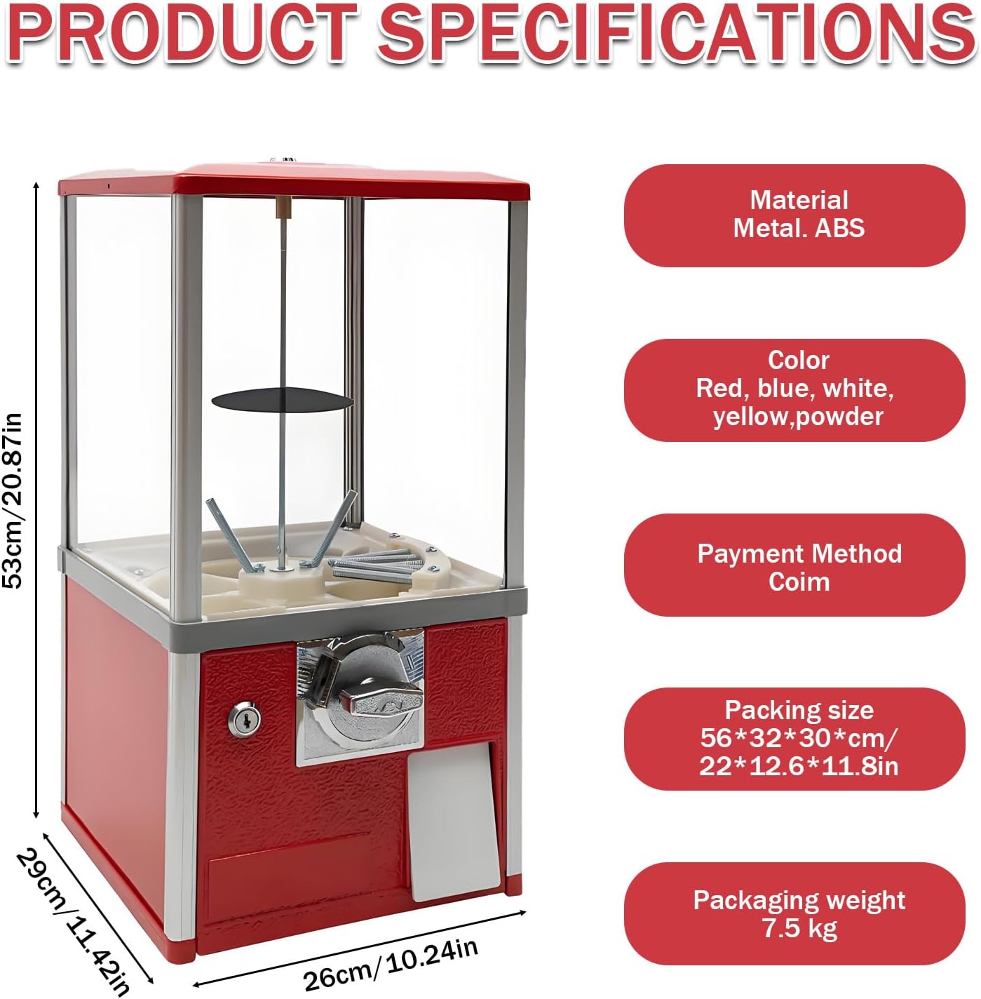 【COSTRUITO PER DURARE】Il nostro prodotto è realizzato in ABS di alta qualità e lega di alluminio, lega di zinco e acciaio con processi di pressofusione e stampaggio, che lo rendono resistente all'usura e indeformabile, così da poterlo utilizzare a lungo. 【ELEVATA SICUREZZA】Questa macchina è dotata di esclusive serrature sul coperchio superiore e serrature sul salvadanaio per impedire il furto di giocattoli e monete. L'uscita è dotata di un deflettore e di un telaio rotante sopra l'uscita dei giocattoli per impedire la caduta accidentale di oggetti all'interno della macchina, evitando così la perdita di oggetti. 【ELEVATA CAPACITÀ DI CARICO E GRANDE CAPACITÀ】 La capacità di carico di questo prodotto è di 7 kg/15 libbre, abbastanza forte da poter riporre i giocattoli senza preoccuparsi che si scuotano o si ribaltino. Le dimensioni di questo prodotto sono 9,8 x 9,8 x 19,6 pollici, abbastanza grandi da contenere oggetti senza doverli aggiungere frequentemente e soddisfare le esigenze di intrattenimento dei visitatori nella maggior parte dei centri commerciali e dei parchi di divertimento. 【DESIGN TRASPARENTE】La metà superiore di questo prodotto è trasparente, il che rende facile per i clienti vedere gli articoli all'interno, attirando i clienti e migliorando l'esperienza di acquisto. 【FACILE DA USARE】Basta inserire 2 monete da 25 nella fessura per le monete e ruotare la manopola di 720° in senso orario per recuperare gli oggetti caduti all'uscita. Il processo è facile da padroneggiare e richiede solo pochi minuti.