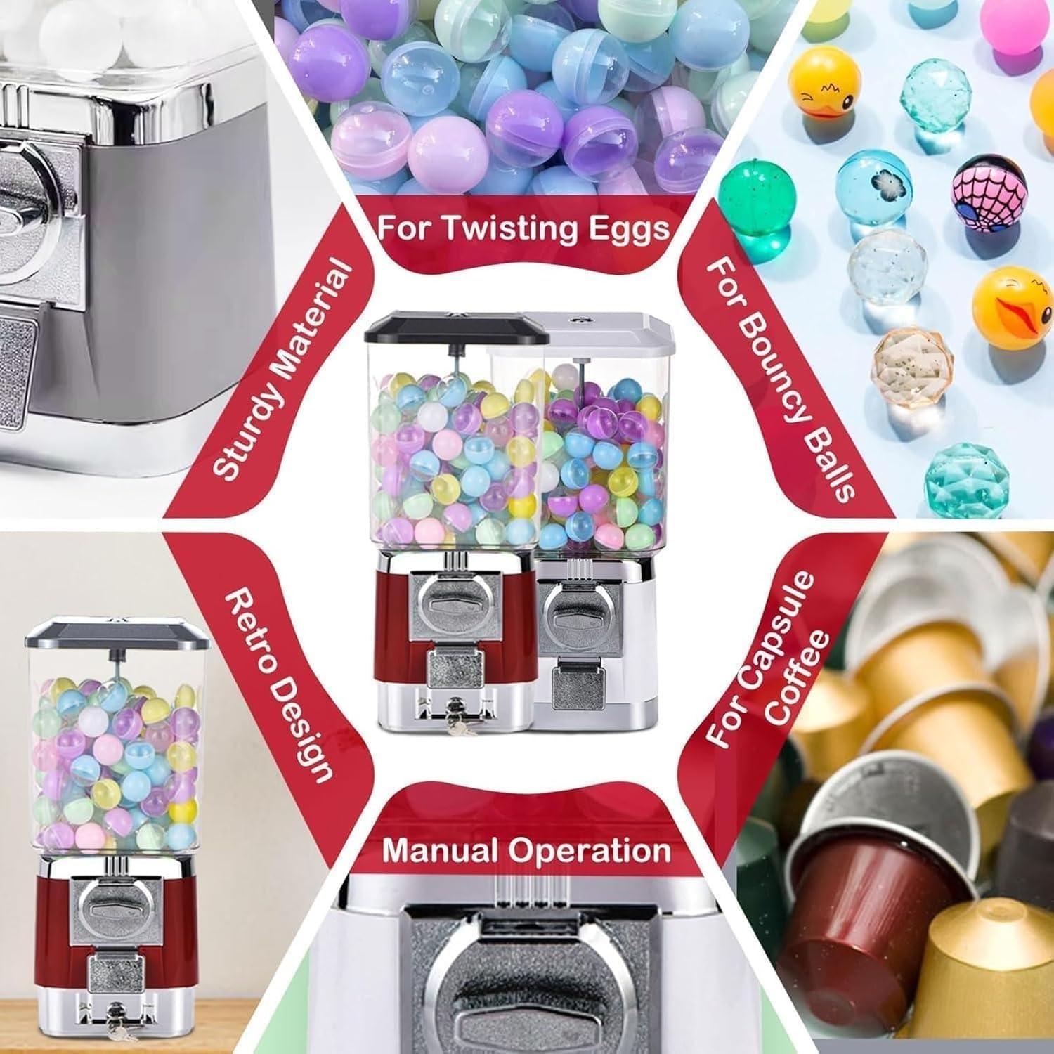 【Autentico meccanismo a gettoni】: Vivi il divertimento classico, inserisci le monete, ruota la leva di 360° for l'erogazione immediata dei premi. Perfetto for tutte le età e funziona senza elettricità, eliminando i costi della batteria e le limitazioni di potenza. 【Materiali durevoli】: Realizzato con canali in lega di zinco, una cupola in PC trasparente e componenti in ABS rinforzato. Resistente agli urti, resiste fino a 50.000 cicli in ambienti ad alto traffico. 【Ingegneria moderna】: corpo interamente in lega di zinco con meccanismi interni in ABS rinforzato for una maggiore durata. Dotato di palline vuote di alta qualità e gettoni in acciaio inossidabile, offre il doppio della quantità standard, unendo un'estetica classica a una durata di livello commerciale. 【Alta capacità】: Può contenere capsule standard da 1,25 pollici, palline rimbalzanti o caramelle assortite. Il sistema precaricato riduce del 65% il lavoro di rifornimento for sale giochi e negozi di videogiochi, rendendolo perfetto for trasformare le feste in casa in centri di intrattenimento interattivi. 【Cassaforte portamonete innovativa con accesso frontale】: dotata di una cassetta di sicurezza frontale brevettata e di una chiave dedicata for un facile recupero delle monete senza smontaggio