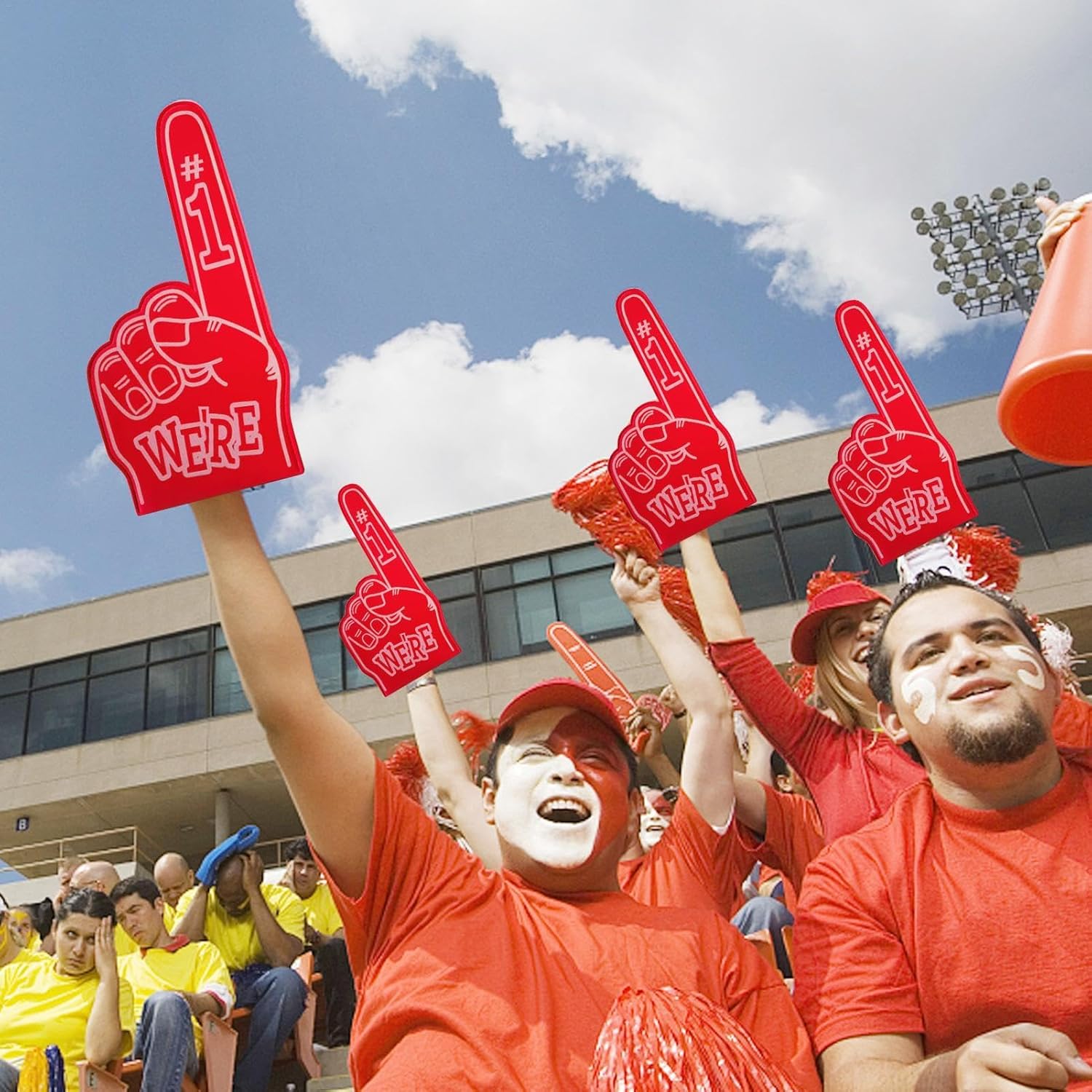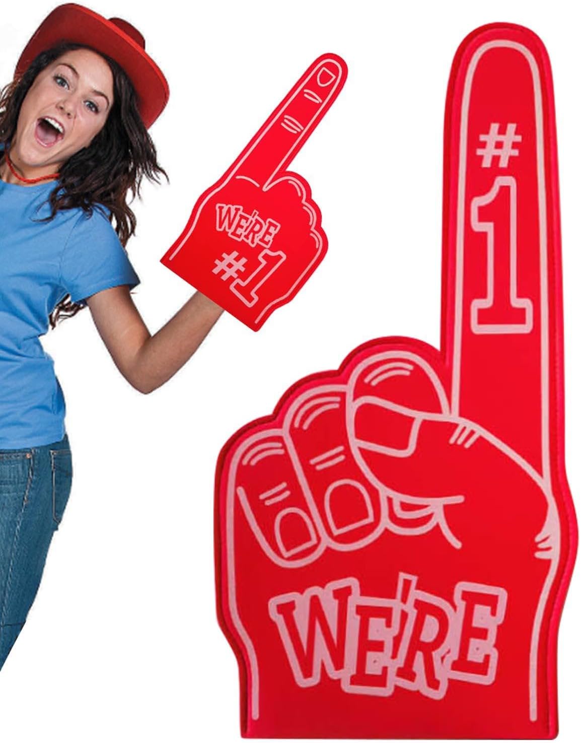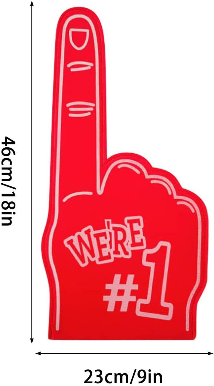 COLORI VIBRANTI E DI LUNGA DURATA: disegni serigrafati con inchiostro impermeabile che garantiscono colori vivaci che risaltano e rimangono intatti anche durante gli eventi sportivi più energici. Design confortevole e durevole: realizzato in schiuma EVA di alta qualità, questo dito in schiuma offre una sensazione morbida e leggera per ore di tifo senza disagio, rendendolo una scelta duratura per un uso ripetuto. Aumenta l'energia del tuo evento con le dita in schiuma che aggiungono eccitazione e fascino visivo, rendendole perfette per creare un'atmosfera indimenticabile tra la folla. SICUREZZA E ADATTABILITA': progettata per una presa sicura, la struttura leggera del dito in schiuma migliora la tua esperienza di tifo e offre stabilità e comfort durante ogni partita. Versatile per tutti gli sport: un ottimo accessorio per mostrare supporto in qualsiasi evento sportivo o giornata di gioco. Perfetto per tifare per i tuoi giocatori e le tue squadre preferite in vari sport ed eventi.