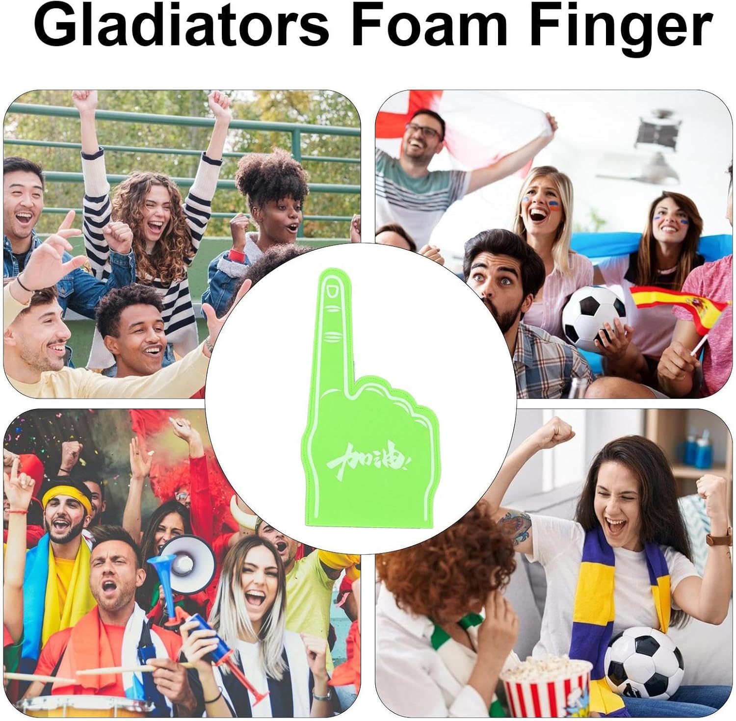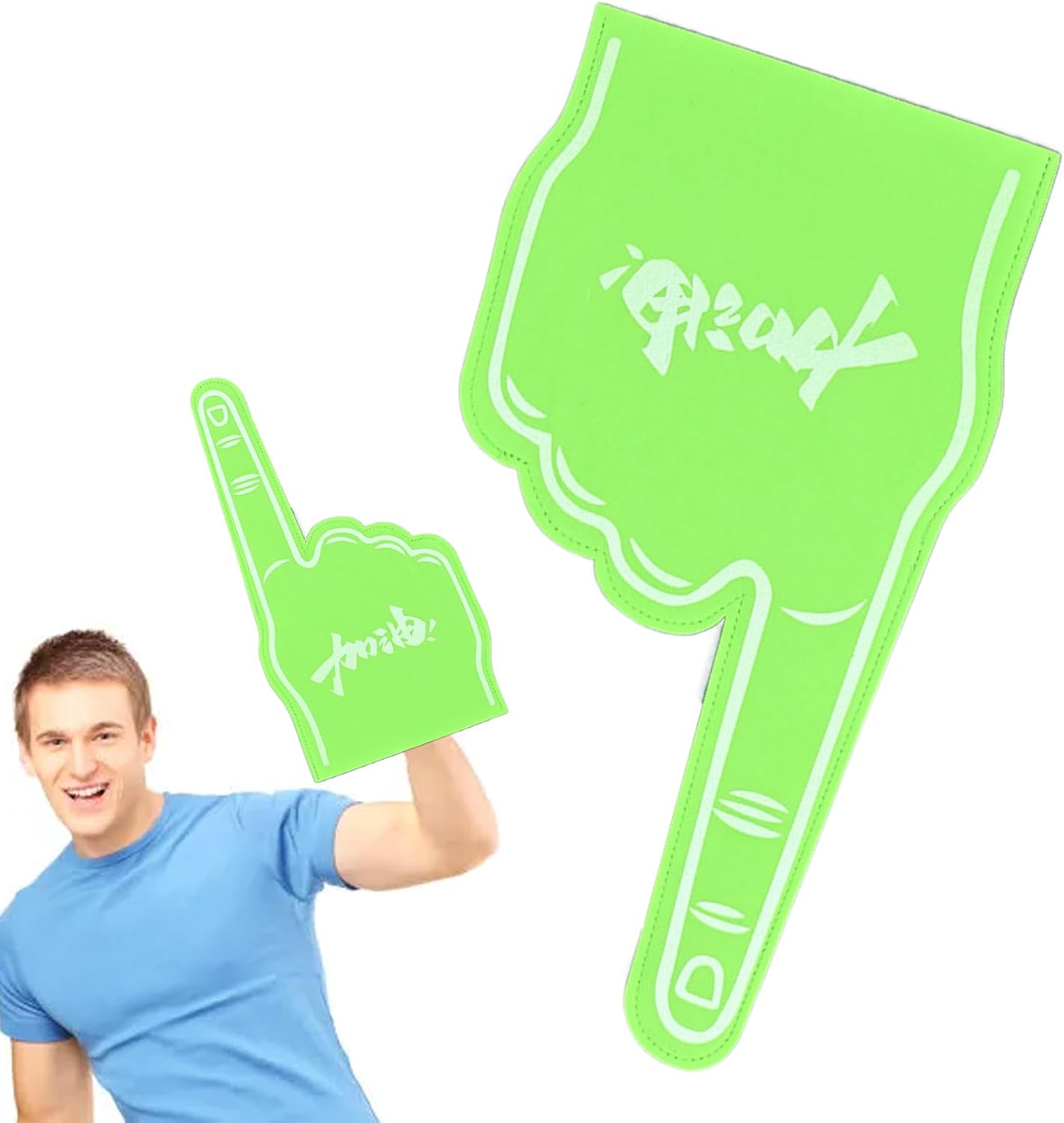 Stampato con lo slogan eccitato "Vai a cercarlo" per lo spirito di squadra. Goditi una presa comoda e un artigianato sofisticato per i giochi dal calcio all'hockey. Specifiche: Materiale: Eva Dimensioni del prodotto: circa 23 x 46 cm. Peso: circa 50 g Contenuto della confezione: 1 x dita in schiuma gigante. Nota: A causa delle diverse impostazioni di illuminazione e dello schermo, il colore dell'articolo potrebbe essere leggermente diverso dall'immagine. A causa delle diverse misurazioni manuali, si prega di consentire una differenza di 1-2 cm nelle dimensioni.