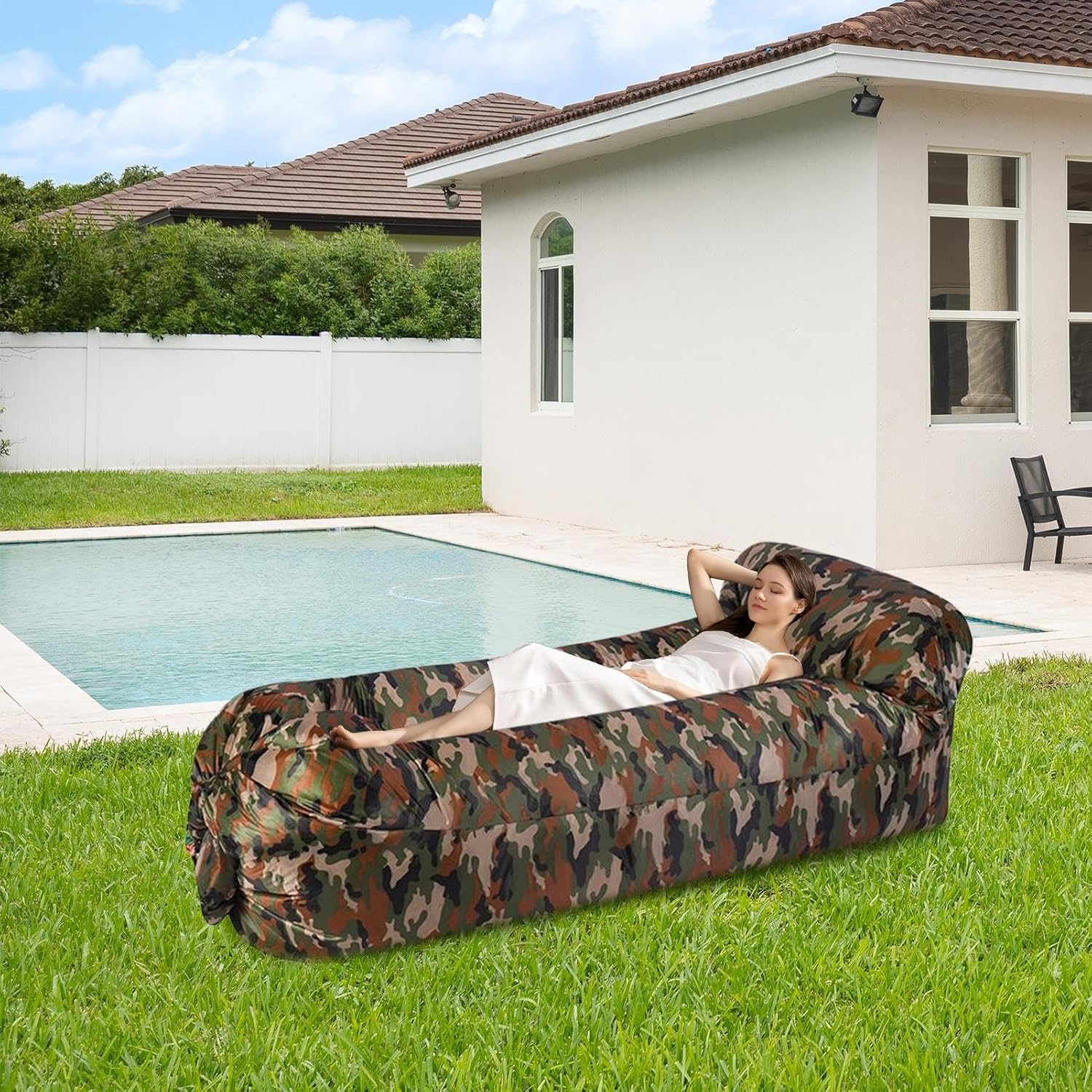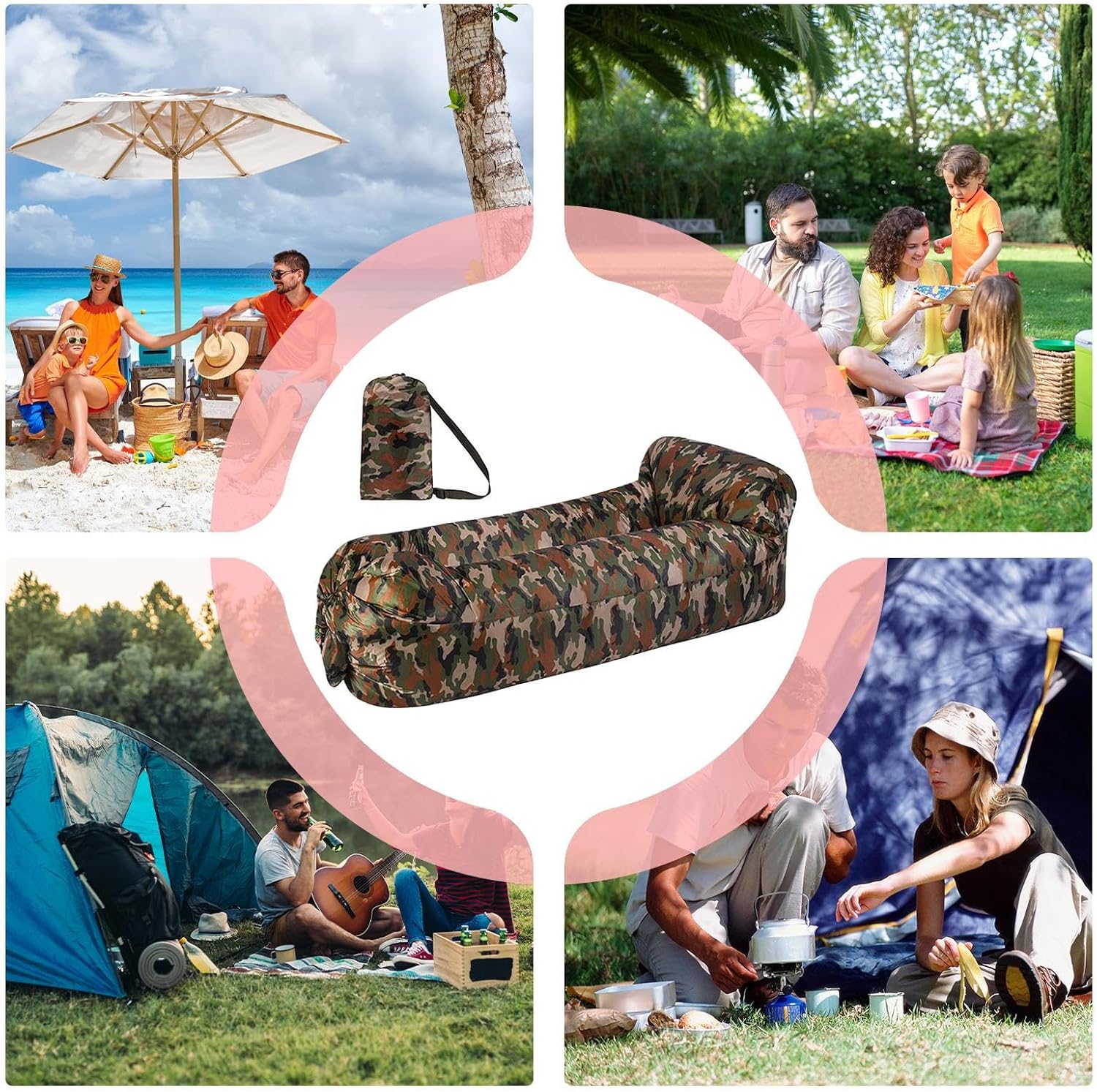 Supporto stabile: il lettino ad aria offre un supporto sicuro per la schiena grazie alle camere d'aria tridimensionali che distribuiscono uniformemente la pressione. Riduce al minimo il rischio di ribaltamento con comfort ed equilibrio ottimali per un soggiorno rilassato. Facile da usare: il lettino leggero e gonfiabile per viaggi, escursioni e campeggio offre una seduta pratica e confortevole. È facile da piegare e riporre in una borsa per il trasporto, migliorando la tua esperienza all'aperto con una configurazione semplice e opzioni di archiviazione salvaspazio. Protezione dell'acqua a lungo termine: resistente all'invecchiamento, agli spruzzi d'acqua e ai graffi per prati o rugiada. Garantisce prestazioni di lunga durata in varie situazioni esterne. Comodo ovunque: per sedersi e sdraiarsi in casa, sui prati o in tenda. Il supporto morbido segue le curve del corpo e supporta la lettura rilassata, il campeggio e il relax con ulteriore comfort di sdraio. Facile da usare: il lettino si gonfia andando controvento. Raggomitolarsi e fare una scogliera è sufficiente per un relax immediato.