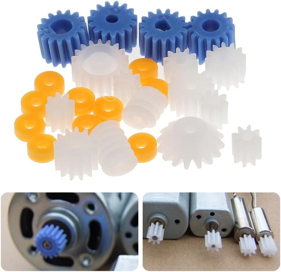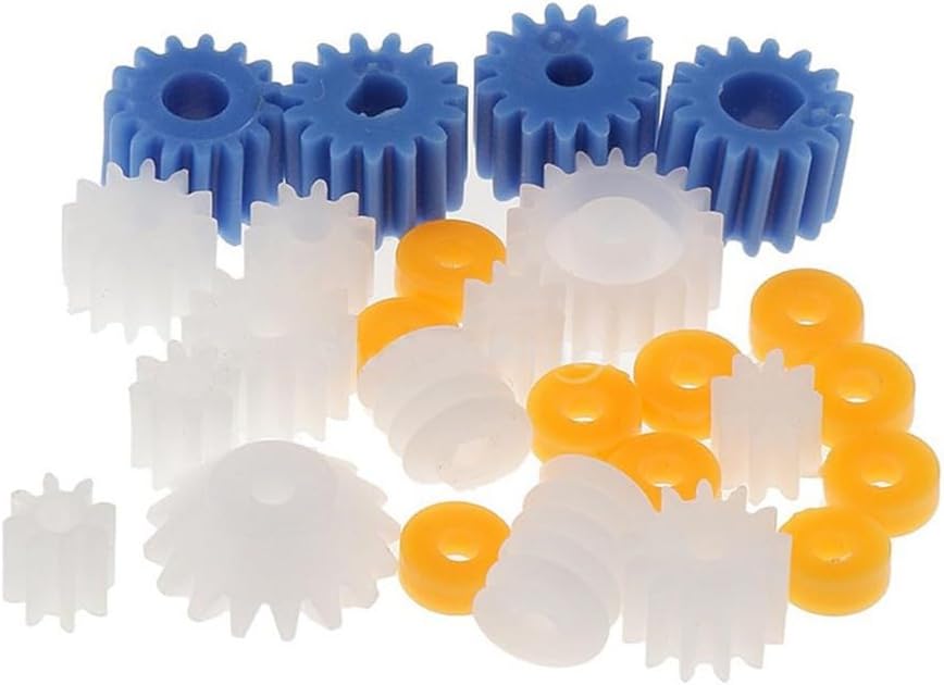 Set di ingranaggi a mandrino in plastica: questo prodotto include una confezione di 5 ingranaggi mandrino con vari modelli, ideali per gli appassionati di fai da te che hanno bisogno di ricambi per la casa. Ampia compatibilità: utilizzato principalmente in motori a tazza cava di dimensioni 130, 140, 180, 260, 280, 370 e altri motori da 2 mm. Compatibile anche con motori ad albero rotondo da 3 mm, motoriduttori ad asse D da 3 mm e motoriduttori ad asse D da 4 mm. Funzioni versatili: gli ingranaggi a vite senza fine 662A e 682A sono adatti per eliche e ingranaggi, trasferimento motore e altro ancora. L'ingranaggio conico funge da trasmissione, mentre la boccola 2A funge da boccola fissa per asse e motore, nota come limitatore. Materiale di alta qualità: realizzato in plastica, longevità e prestazioni affidabili. La confezione include: il set di ingranaggi è composto da 26 pezzi, tra cui ingranaggi dell'albero principale, modelli a vite senza fine, denti smussati e 10 boccole aggiuntive da 2 mm per una maggiore comodità.