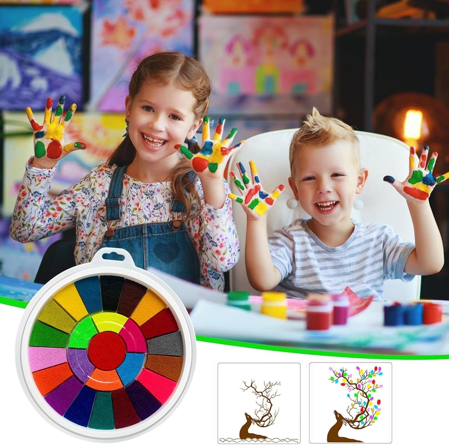 Stabilisci una relazione migliore: sviluppa una relazione genitore-figlio forte e piacevole quando dipingi con le dita con i tuoi amici e familiari. Condividi il con la famiglia e crea ricordi indimenticabili con questo kit per dipingere con le dita divertente e facile da usare. Porta gioia e divertimento: coltiva il lato fantasioso di tuo figlio con questo kit che include colori vivaci e un libro da disegno pieno di illustrazioni stimolanti. Questo set pieno di divertimento porta più ore di gioia e creatività a casa. Materiale riutilizzabile: i tamponi per pittura sono realizzati in materiale PVC adatto al contatto diretto con la pelle dei bambini. L'inchiostro pigmentato utilizzato nella vernice è sicuro, durevole e facile da pulire. Puoi riutilizzare i tamponi per pittura più volte senza preoccuparti che sbiadiscano o si macchino. Freschezza garantita: il nostro divertente kit per dipingere con le dita presenta un esclusivo design del coperchio sigillante che garantisce che la vernice rimanga fresca e duri per ore di divertimento creativo. La copertura in PVC trasparente sigilla la polvere e lo sporco, fornendo un ambiente pulito per un'espressione artistica continua. Facile da usare: accendi l'immaginazione di tuo figlio con il nostro divertente kit per dipingere con le dita. Lascia che sperimentino una moltitudine di colori vivaci, permettendo loro di esprimere la loro creatività interiore. Ideale per favorire lo sviluppo visivo del bambino divertendosi attraverso l'arte.