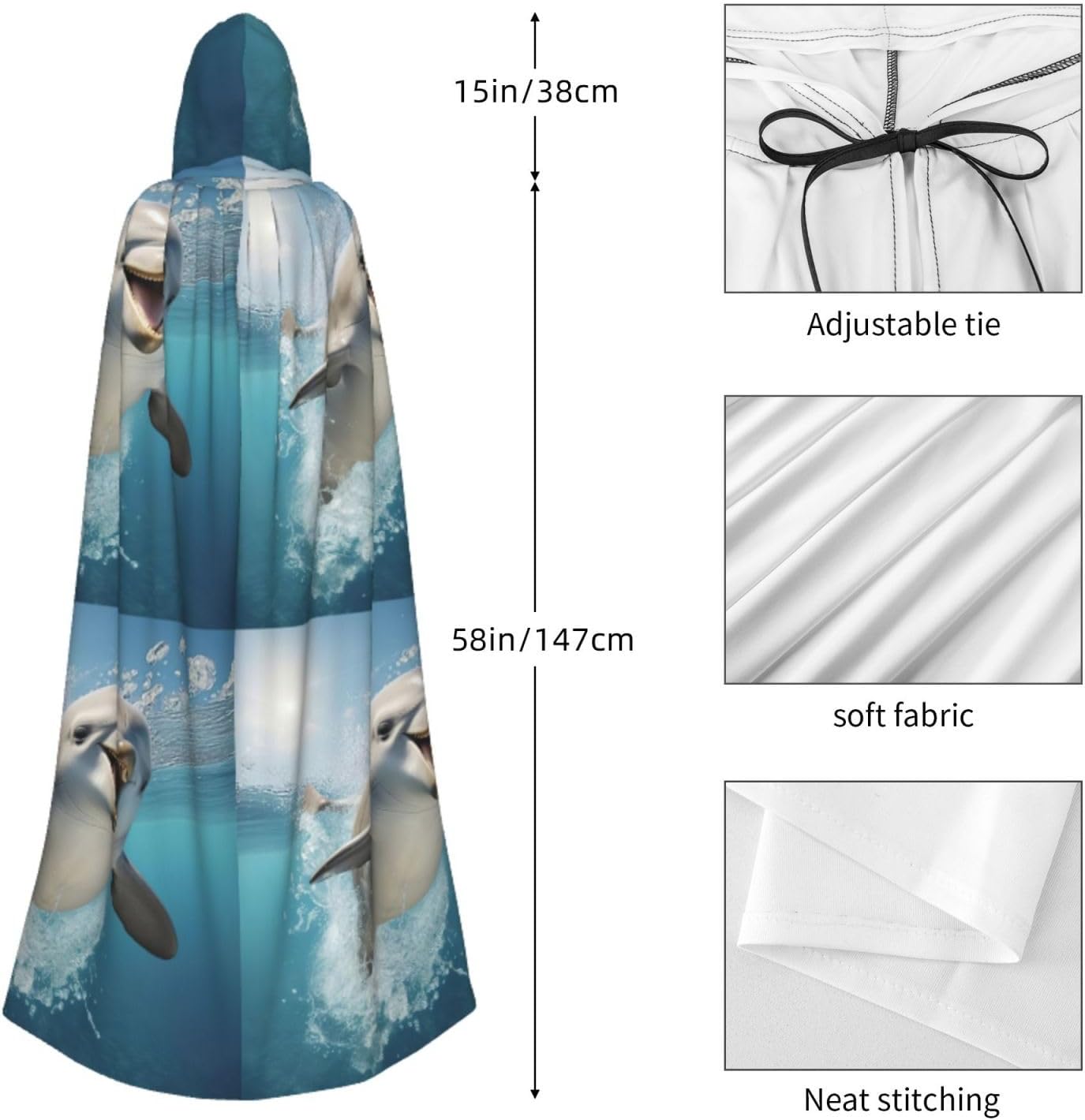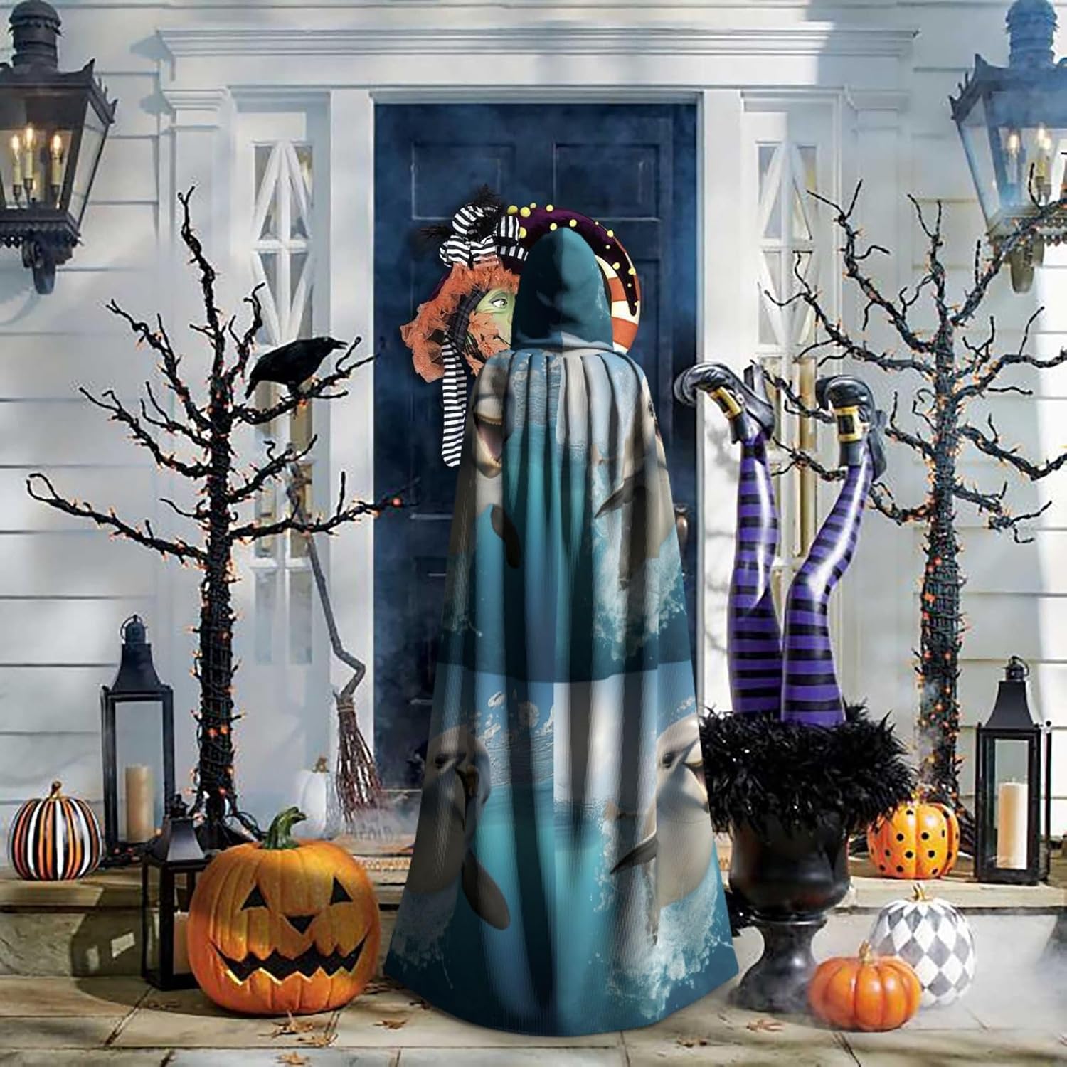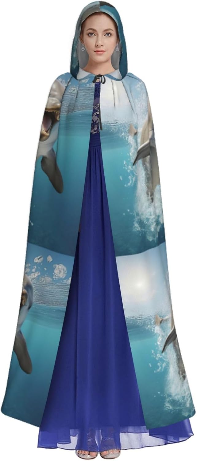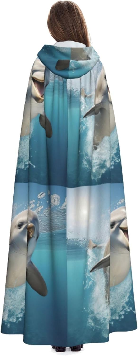 Divertente mantello lungo con cappuccio con stampa di delfini, per adulti, per Natale, Halloween, feste a tema, giochi di ruolo