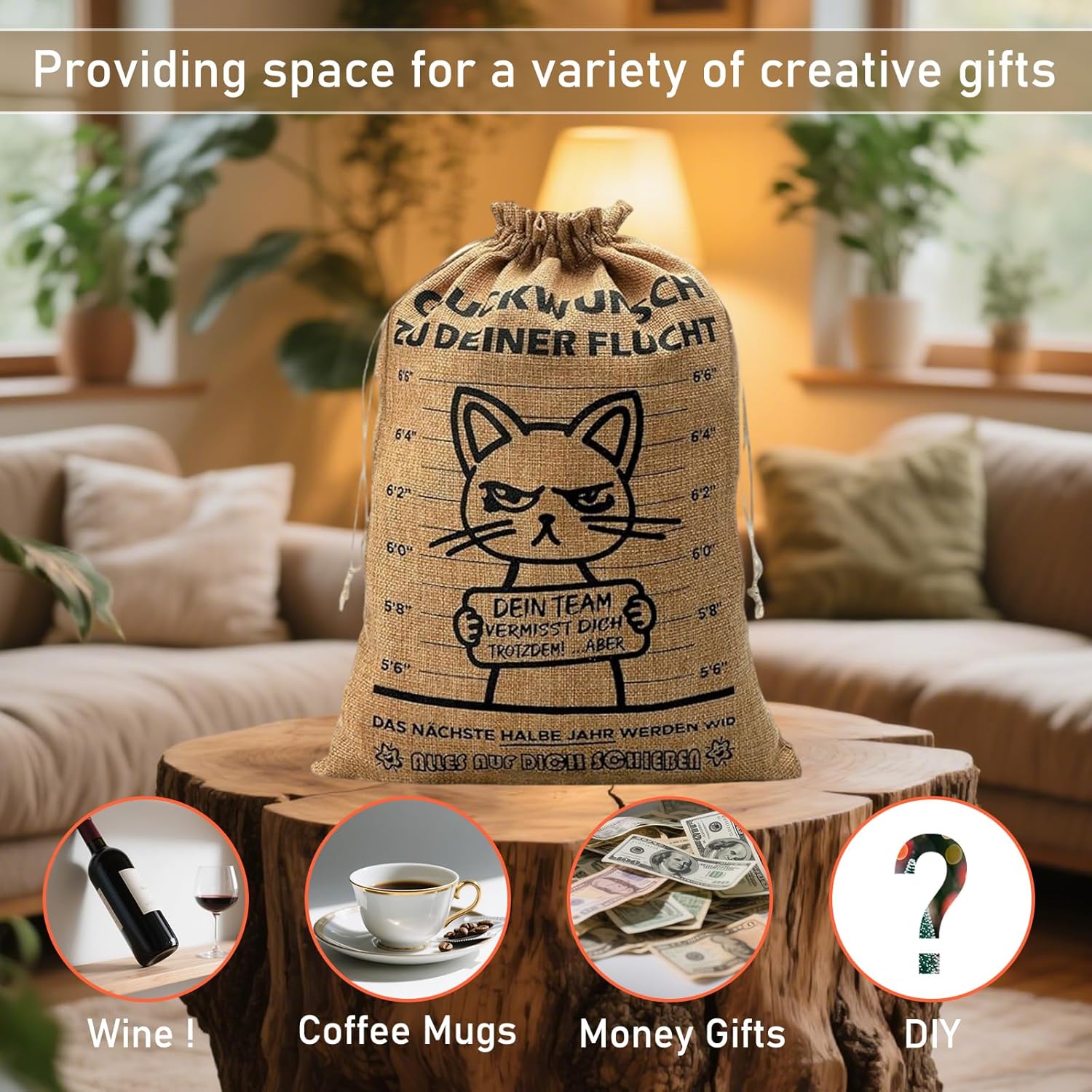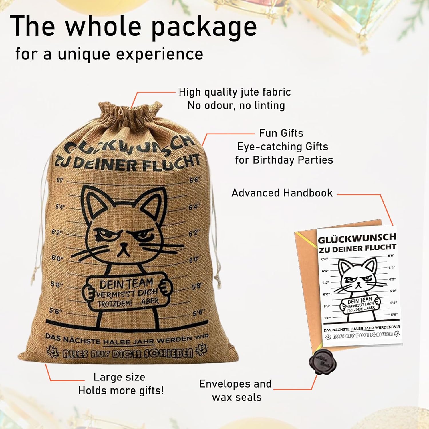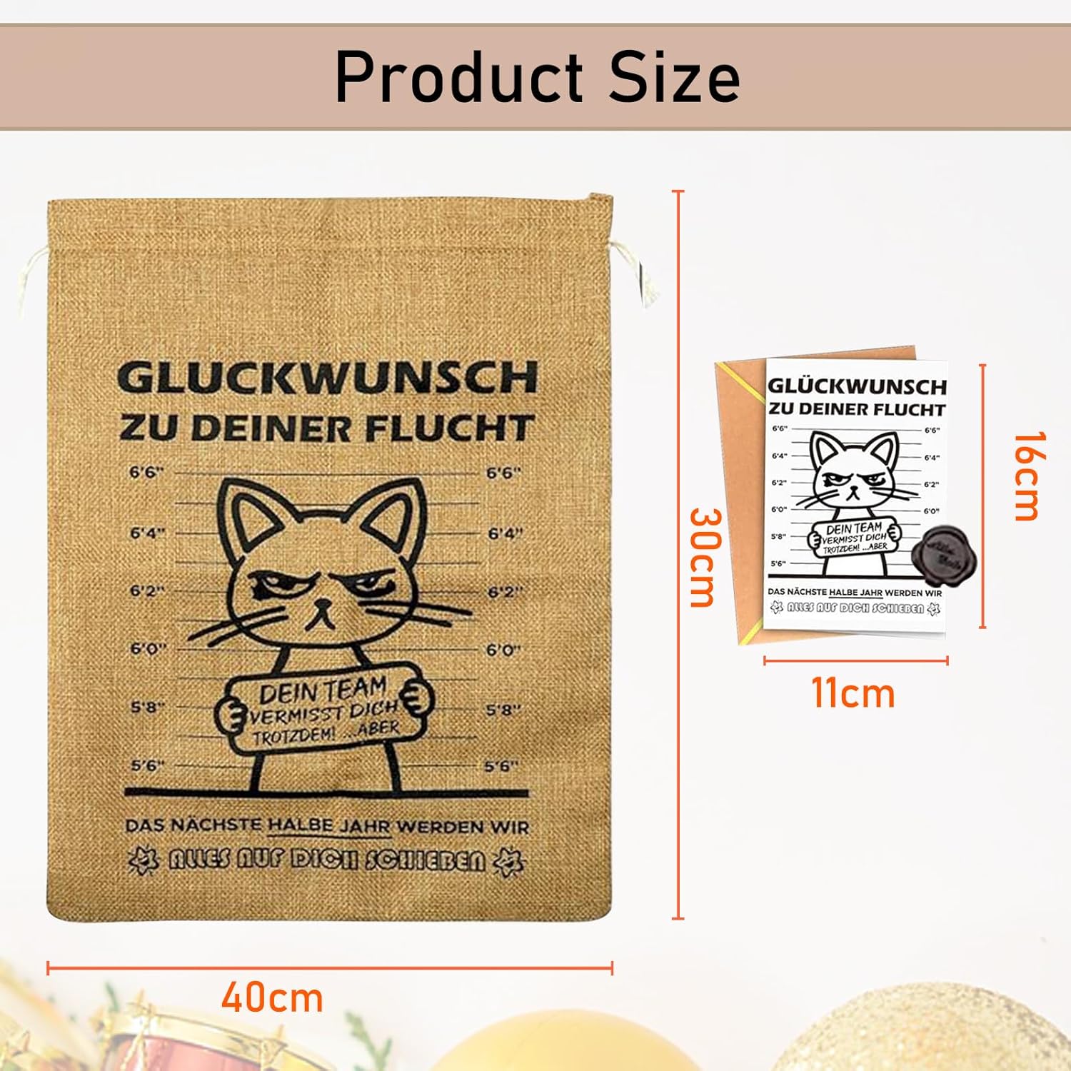 💞 Divertente regalo d'addio: il grande testo "Congratulazioni per la tua fuga" con un pratico sacchetto regalo e un biglietto d'addio è il regalo d'addio perfetto per i colleghi. Sarebbe un piccolo, fantastico scherzo d'addio!😉 💖 Materiale di alta qualità: il sacchetto regalo è realizzato in lino di alta qualità, prestando attenzione alla durabilità evitando la comparsa di odori sgradevoli e una forte perdita di pelucchi. Il sacchetto regalo scuro è opaco, quindi il tuo regalo rimarrà segreto finché non aprirai il sacchetto! Realizzato con carta di alta qualità da 400 g/m², il biglietto d'addio in formato A6 è resistente e facile da scrivere e funziona perfettamente con buste kraft speciali e sigilli di cera. L'adesivo con sigillo di ceralacca riporta la scritta "All the best" 💌 Dimensioni: il sacchetto regalo misura 40 x 30 cm e può contenere vari regali creativi. Biglietto d'addio formato A6, curato nei dettagli (biglietto d'auguri piegato e spessorato, busta con bordi dorati, sigillo di ceralacca in tedesco), design minimalista (stampa chiara, facile da scrivere all'interno). Lascia che anche il tuo collega, collega e amico senta la tua sincerità in questi dettagli 🎁 Ampiamente usato: questo regalo d'addio è perfetto per trasmettere complimenti ed è perfetto anche come biglietto d'addio per i dipendenti per festeggiare cambi di lavoro, compleanni, uffici, studi e regali di squadra. Essere in grado di lasciare un ricordo indimenticabile per dipendenti e colleghi 📧 Servizio al 100%: se non sei soddisfatto dei nostri prodotti, contattaci in tempo tramite Amazon, ti rimborseremo o sostituiremo e non ti lasceremo subire alcuna perdita