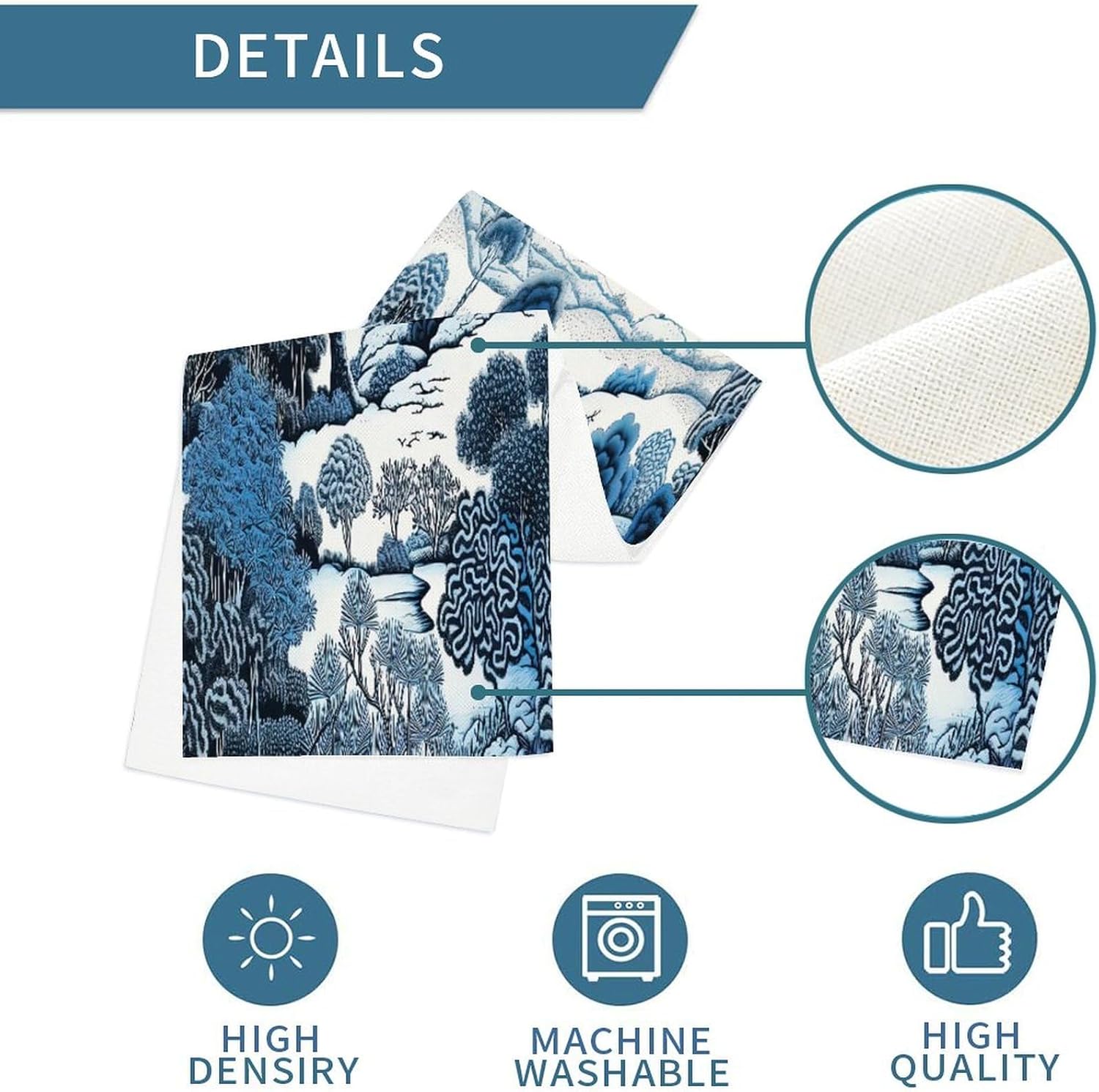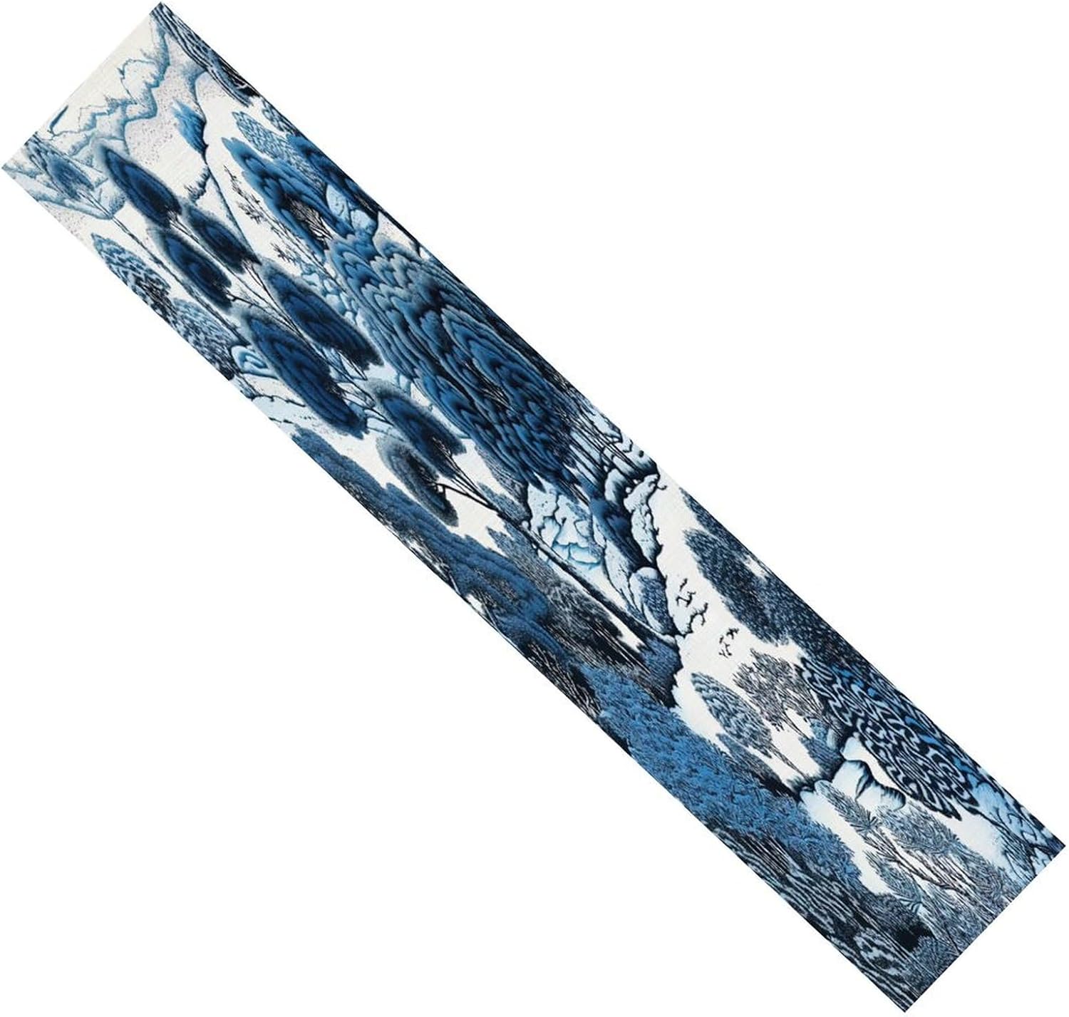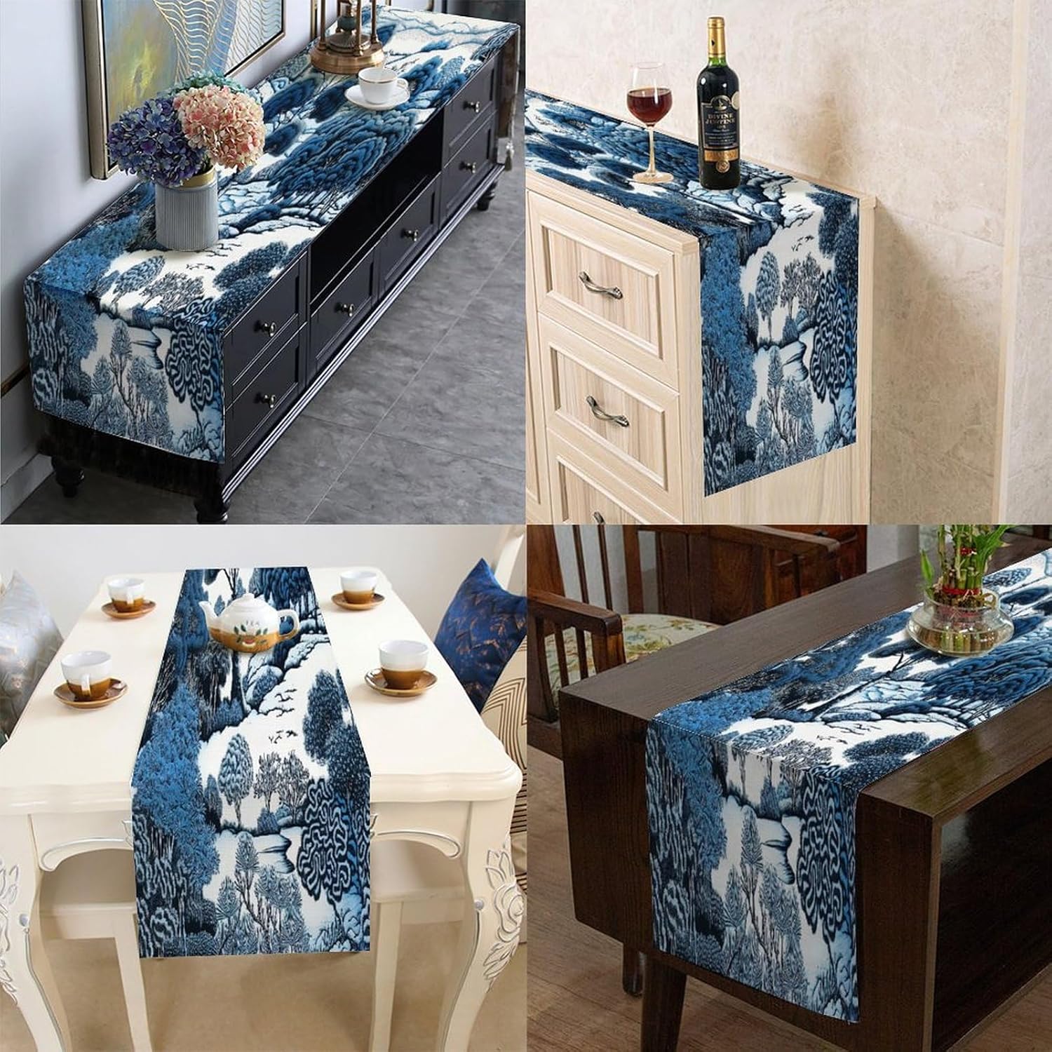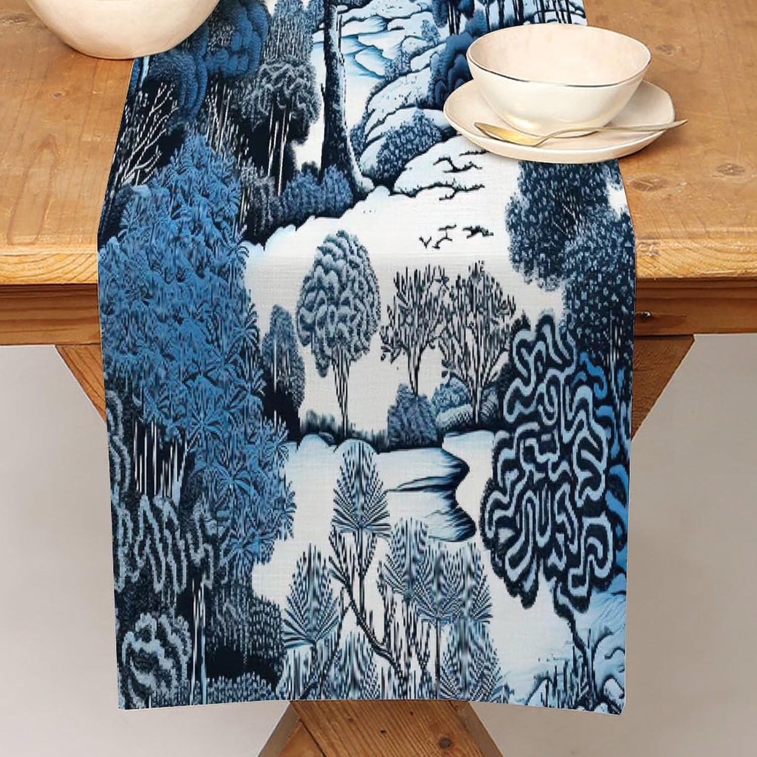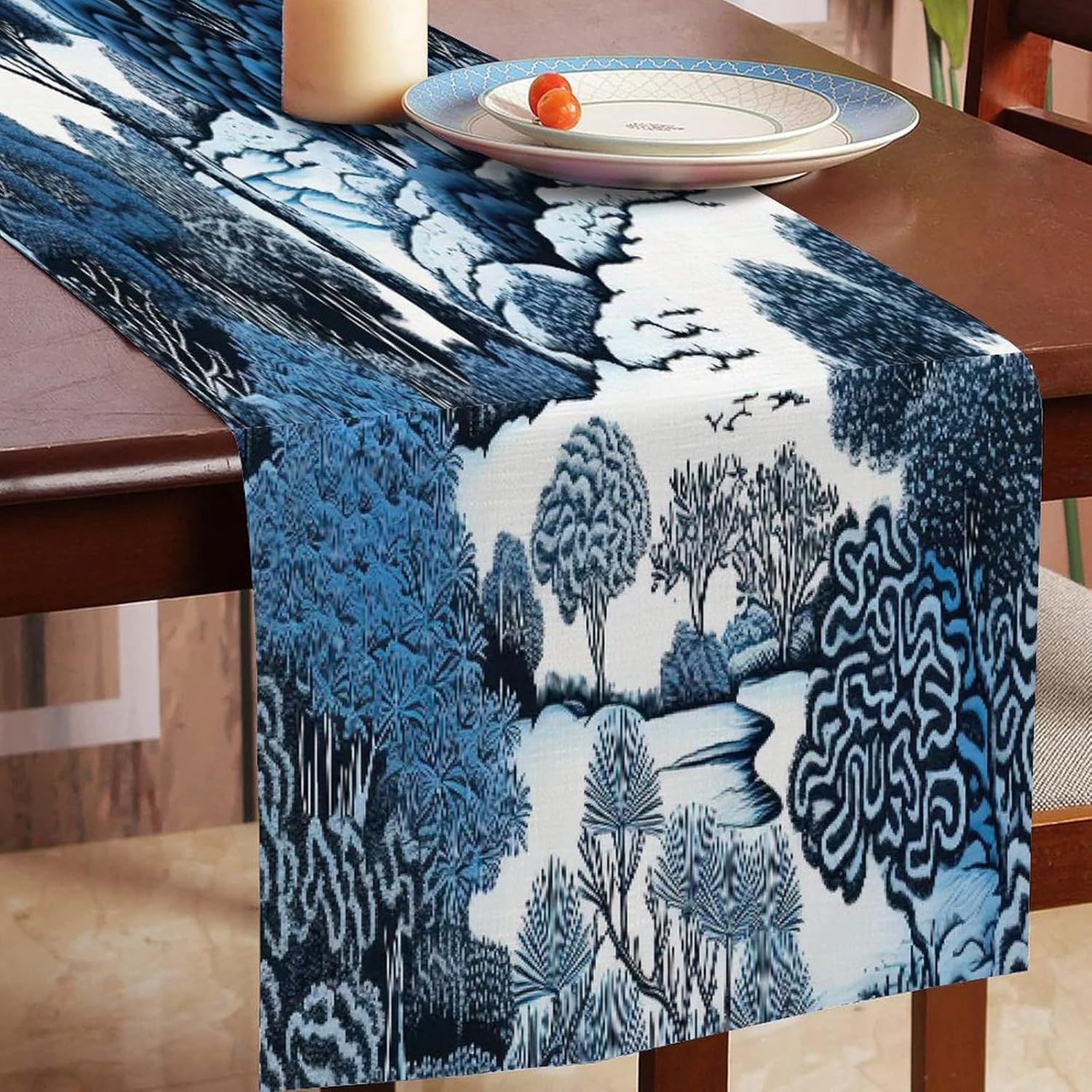 Divertente runner da cucina in cotone e lino indaco blu e bianco indaco, stile fattoria, decorazione da tavolo per cucina, tavolo da pranzo, eventi speciali, decorazione per feste