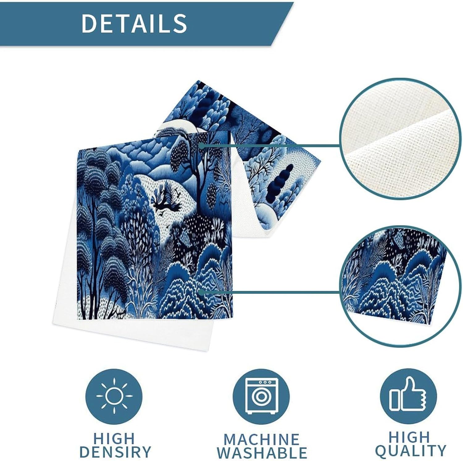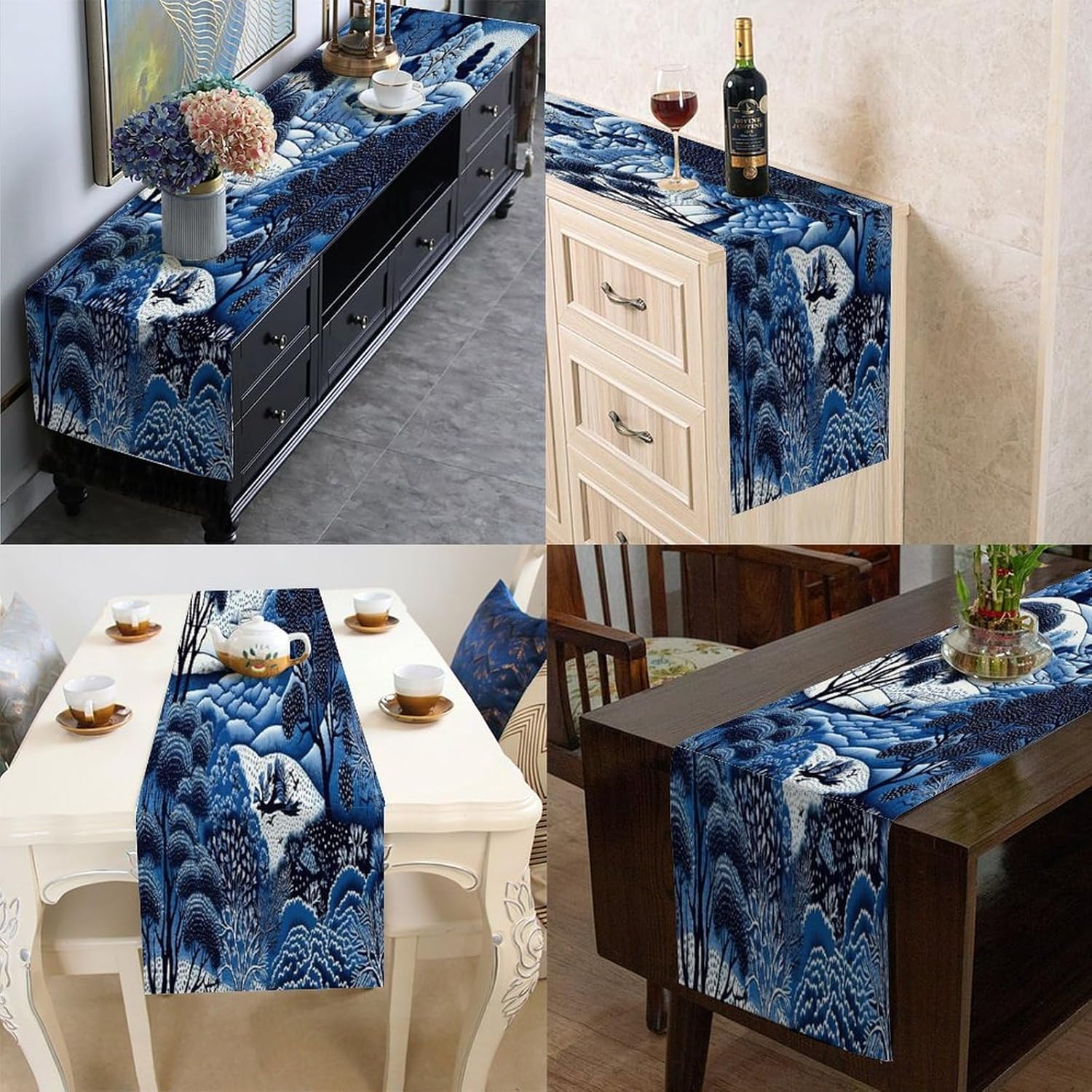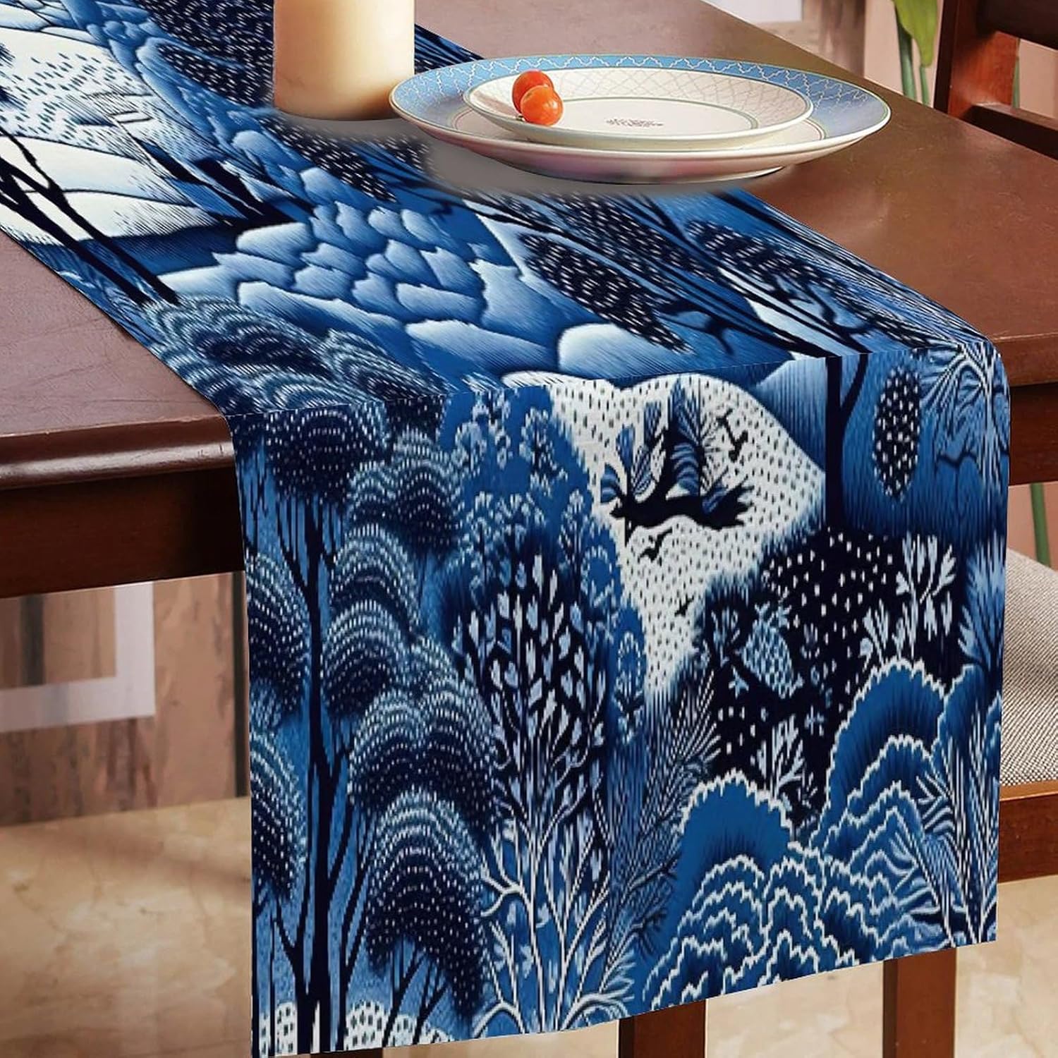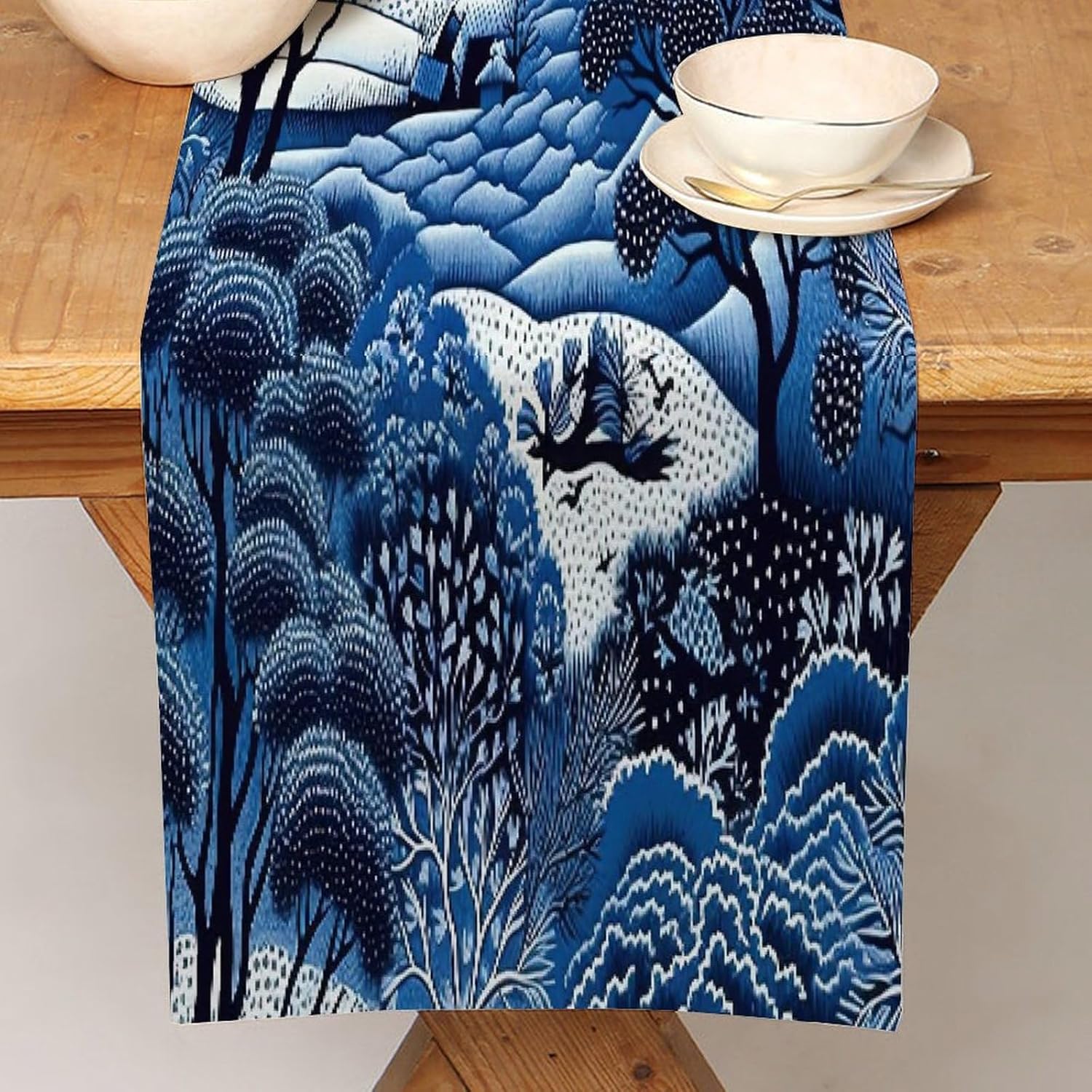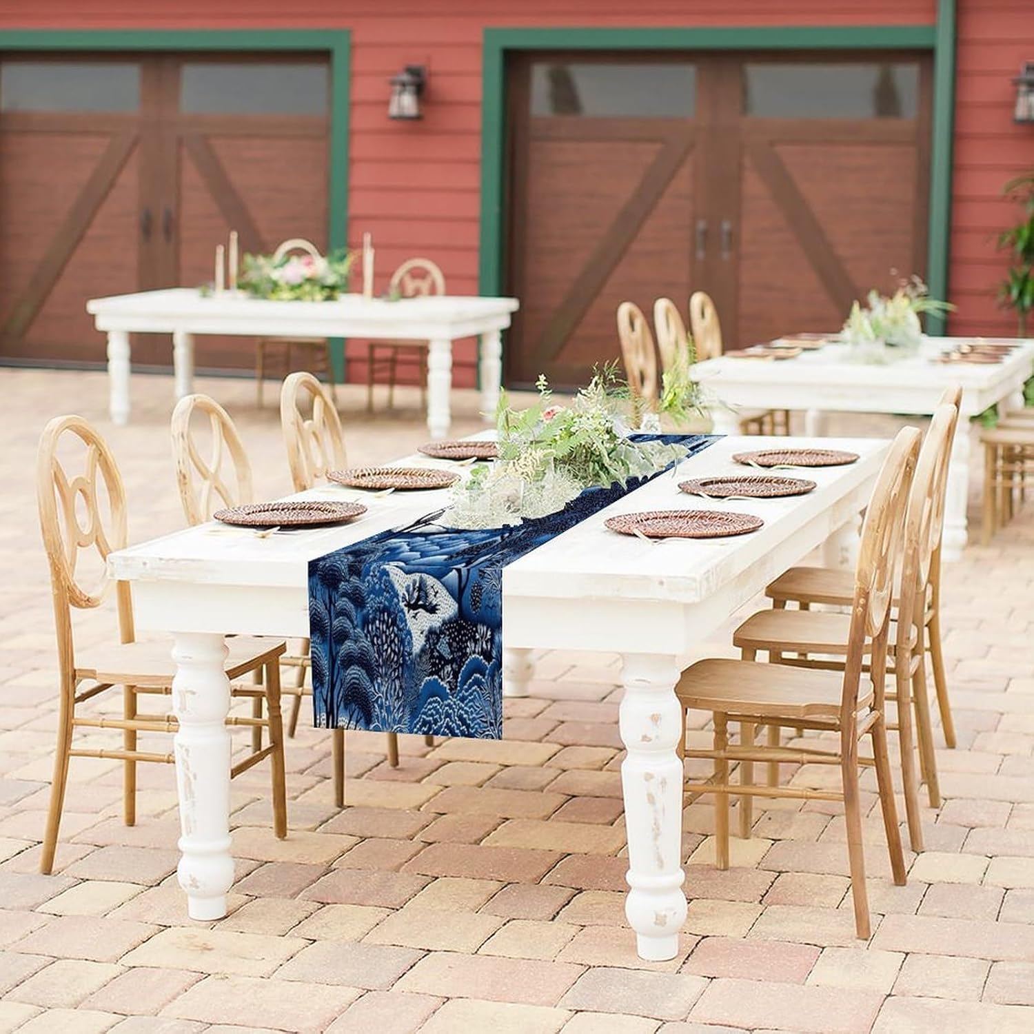 Divertente runner da cucina in cotone e lino indaco blu e bianco indaco, stile fattoria, decorazione da tavolo per cucina, tavolo da pranzo, eventi speciali, decorazione per feste