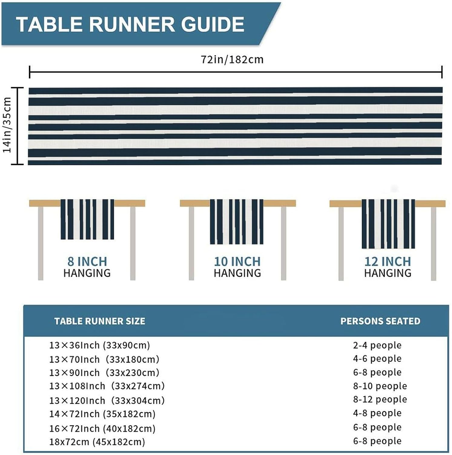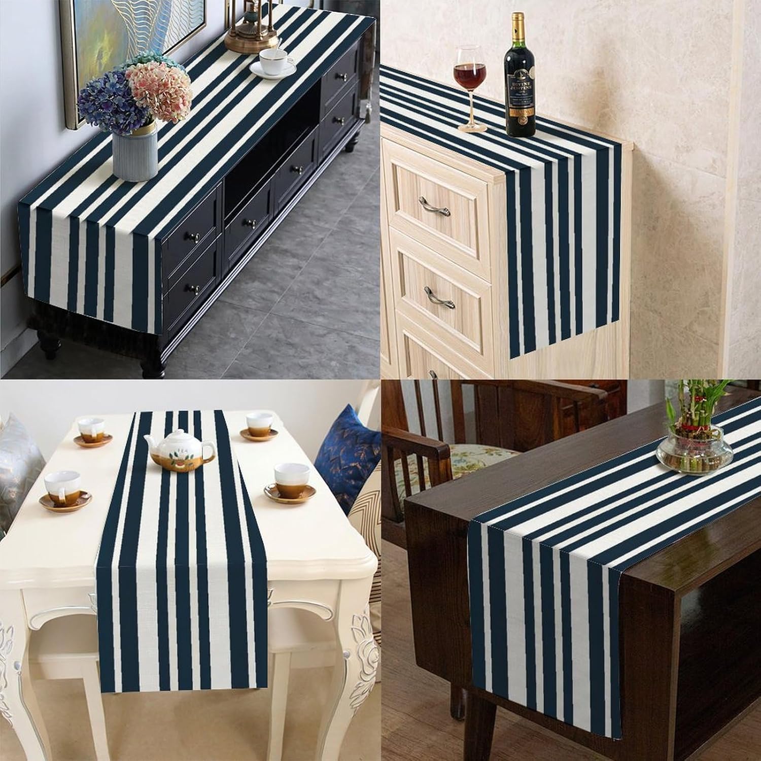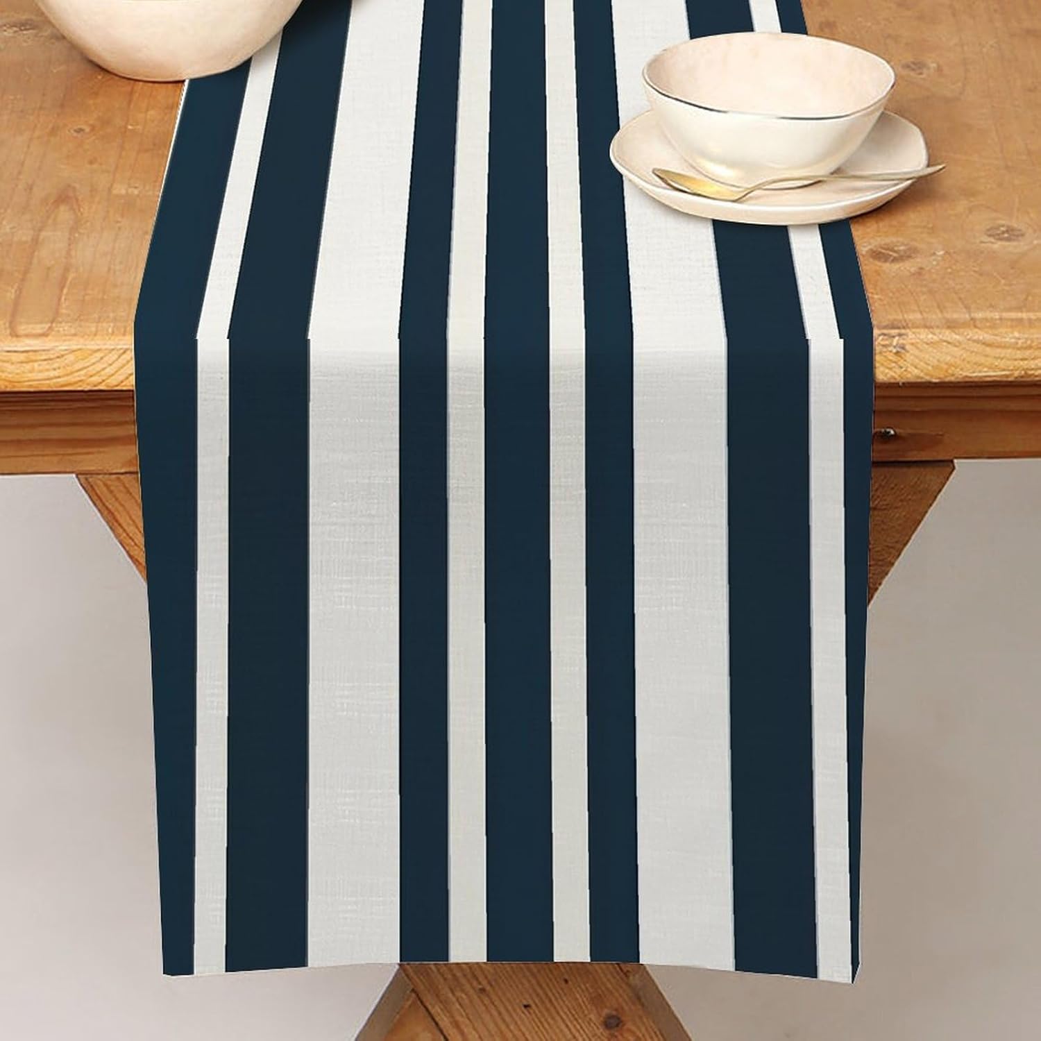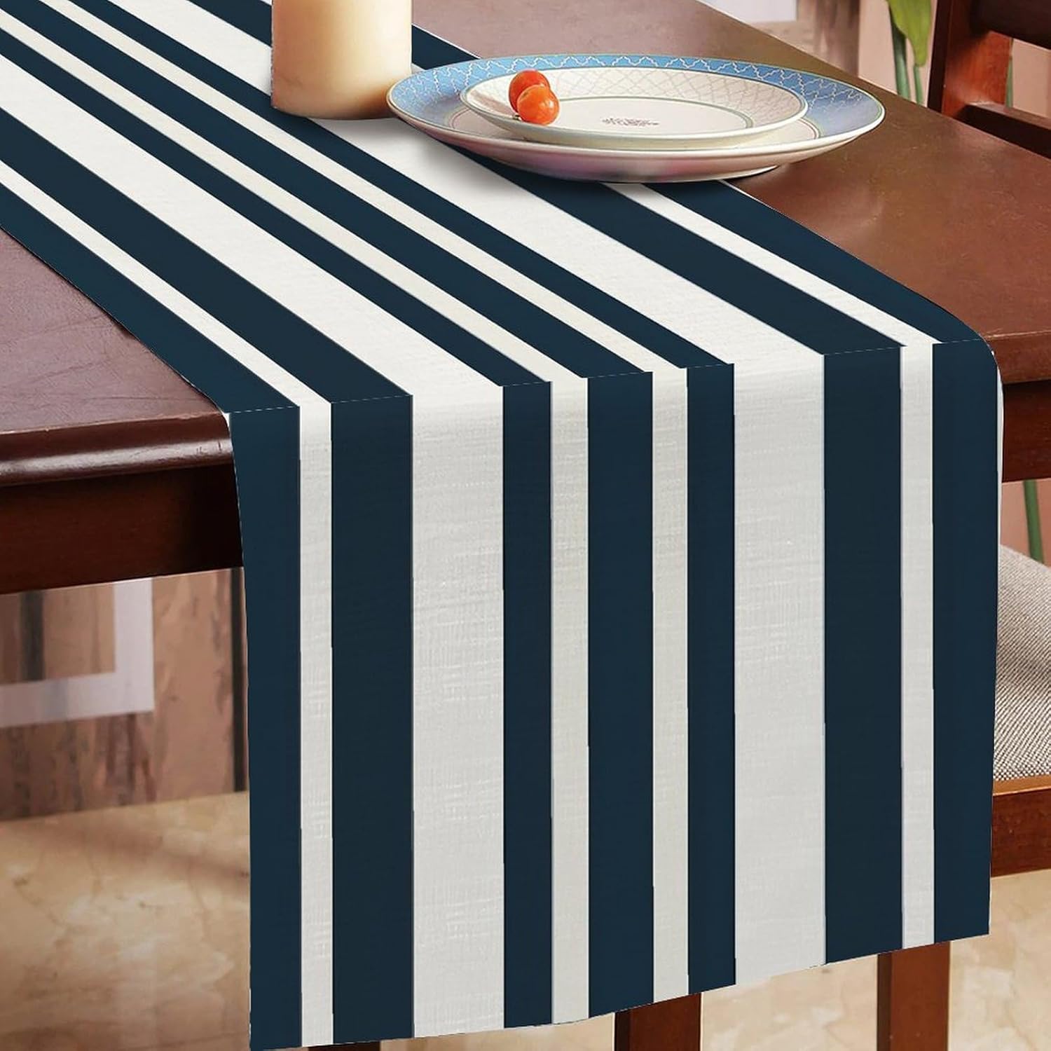 Divertente runner da cucina in cotone e lino, motivo a righe blu, decorazione da tavolo per cucina, tavolo da pranzo, eventi speciali, decorazione per feste