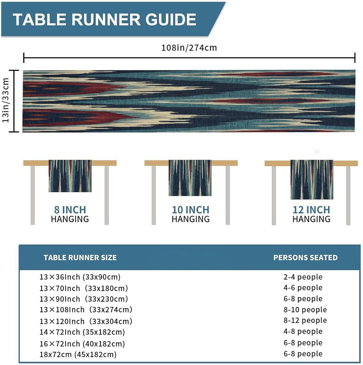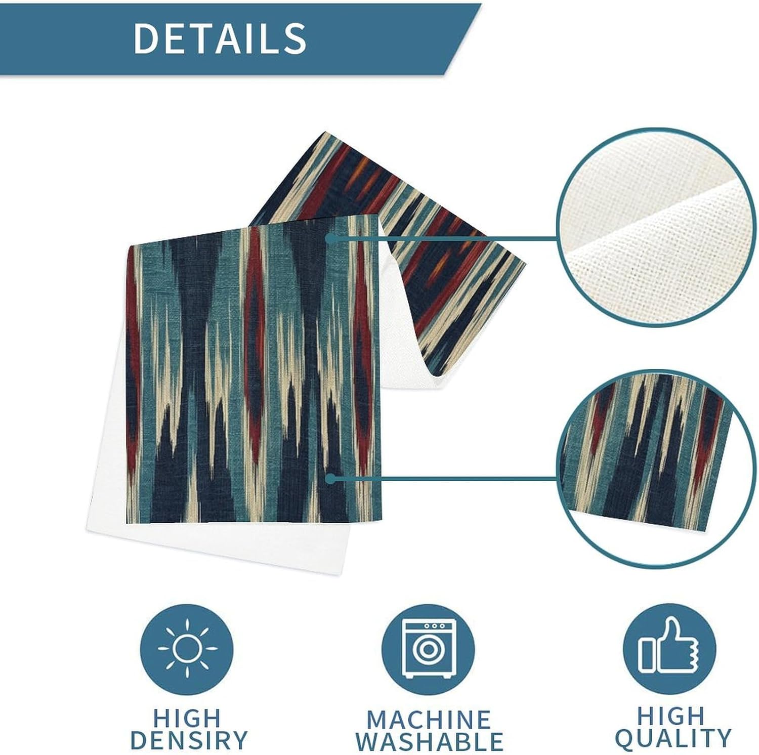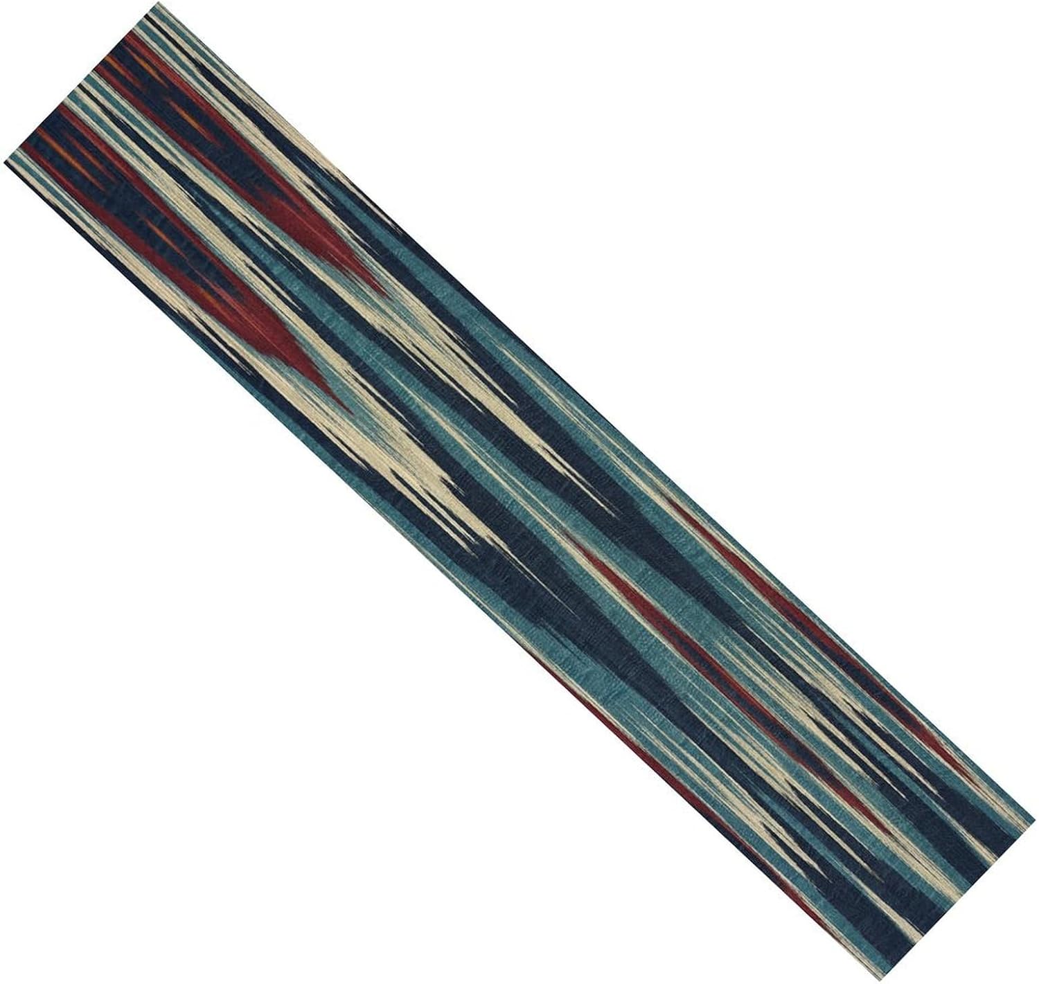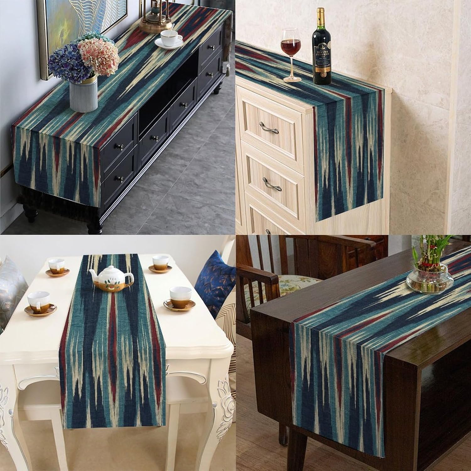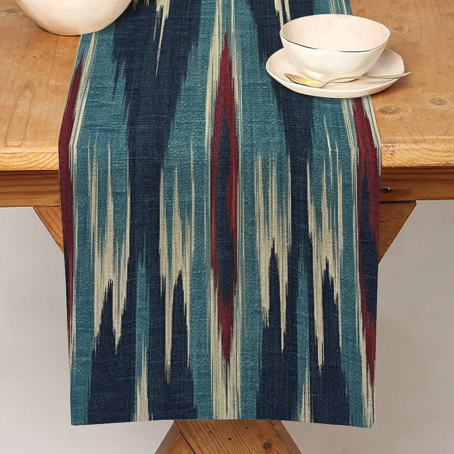 Divertente runner da cucina in cotone e lino, motivo Ikat, colore blu, verde, rosso, crema, decorazione per cucina, tavolo da pranzo, eventi speciali, feste