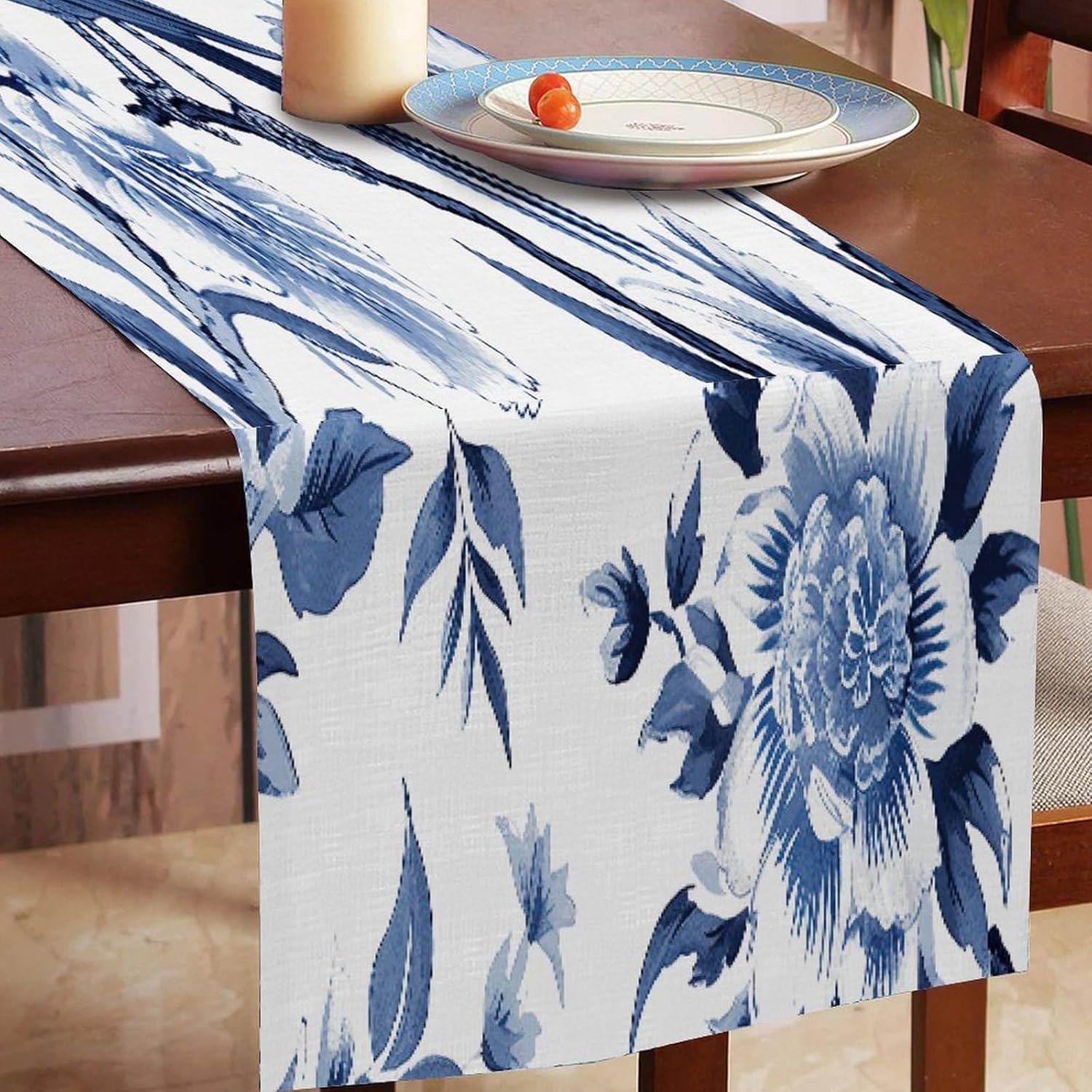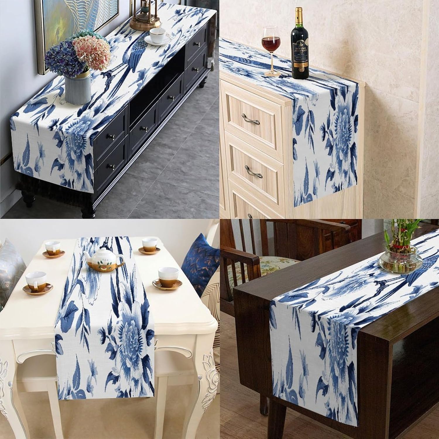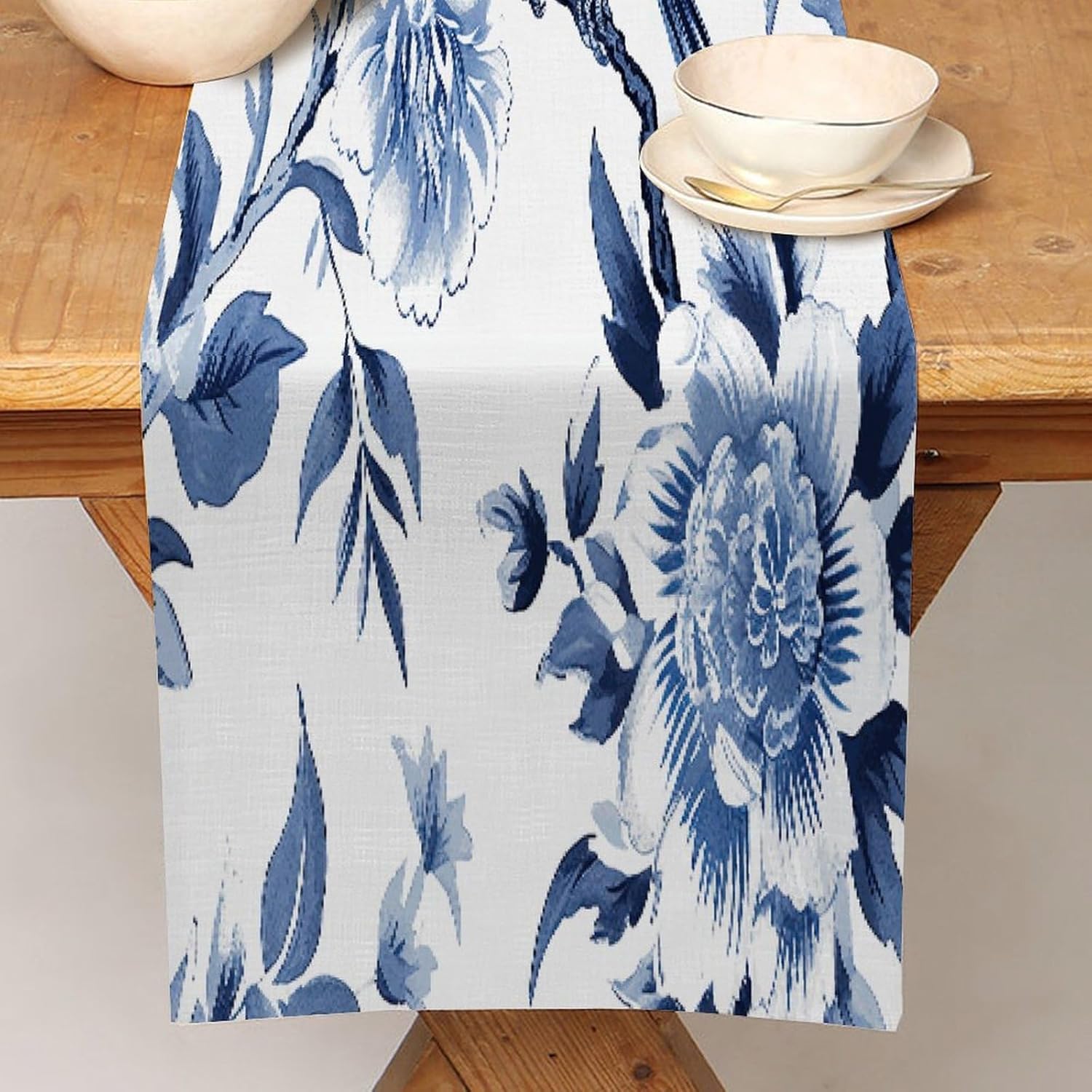 Divertente runner da cucina in cotone e lino, motivo peonia, motivo floreale e uccellino, decorazione da tavolo per cucina, tavolo da pranzo, eventi speciali, decorazione per feste