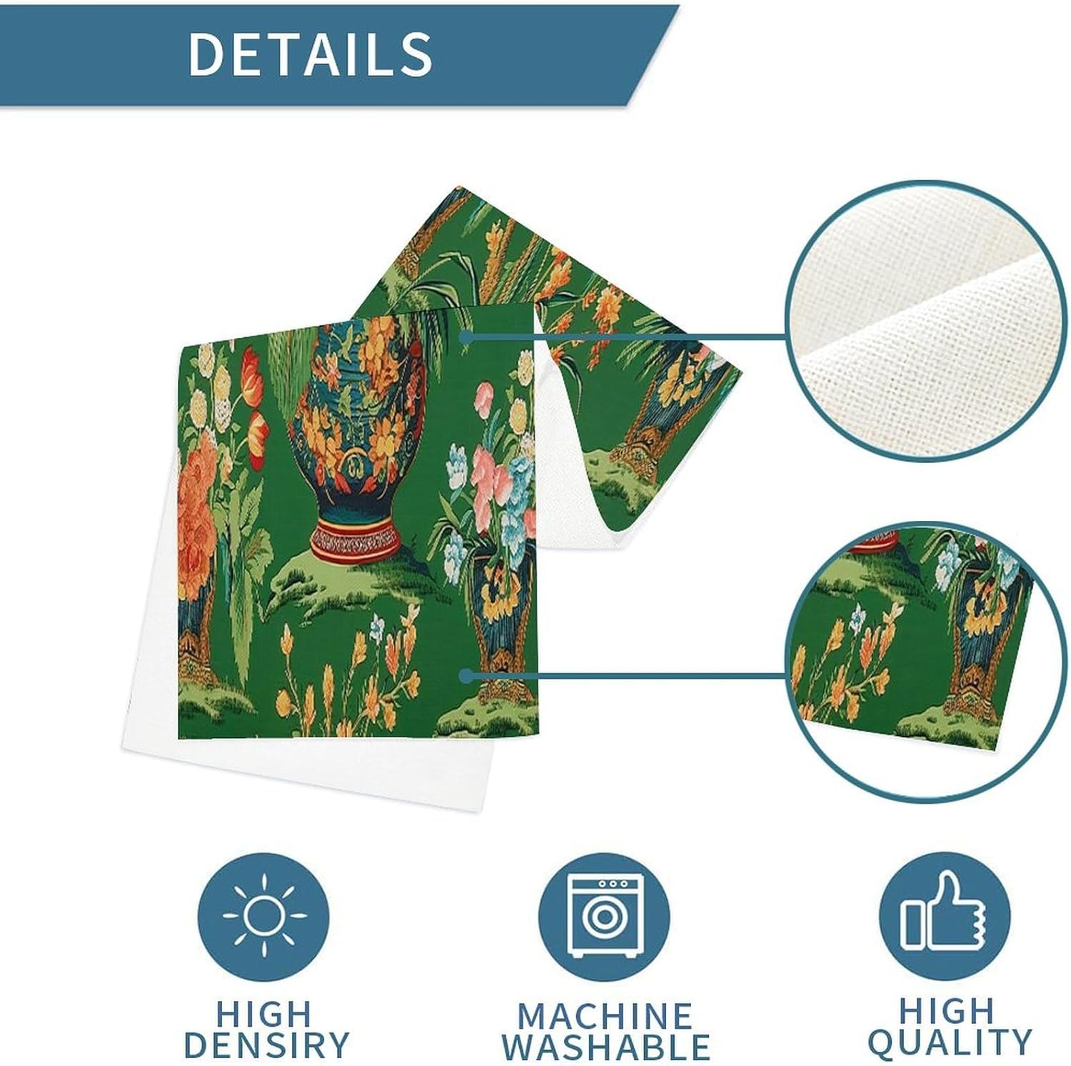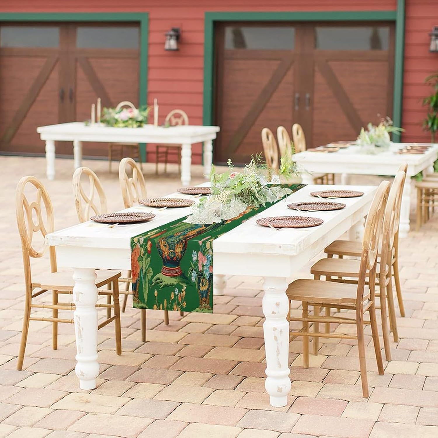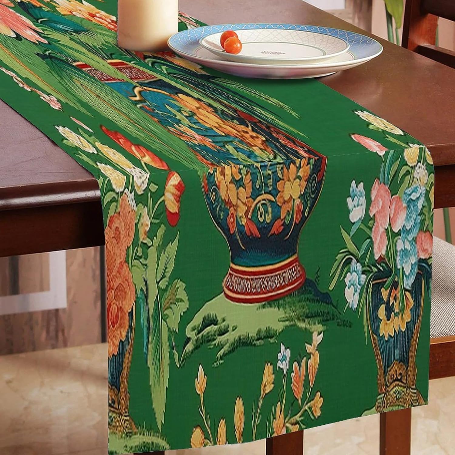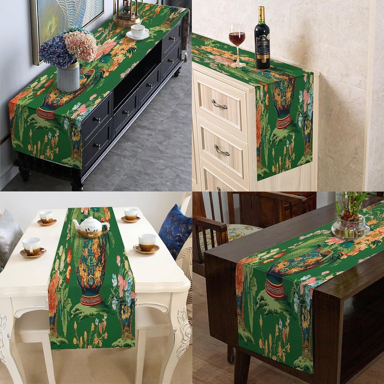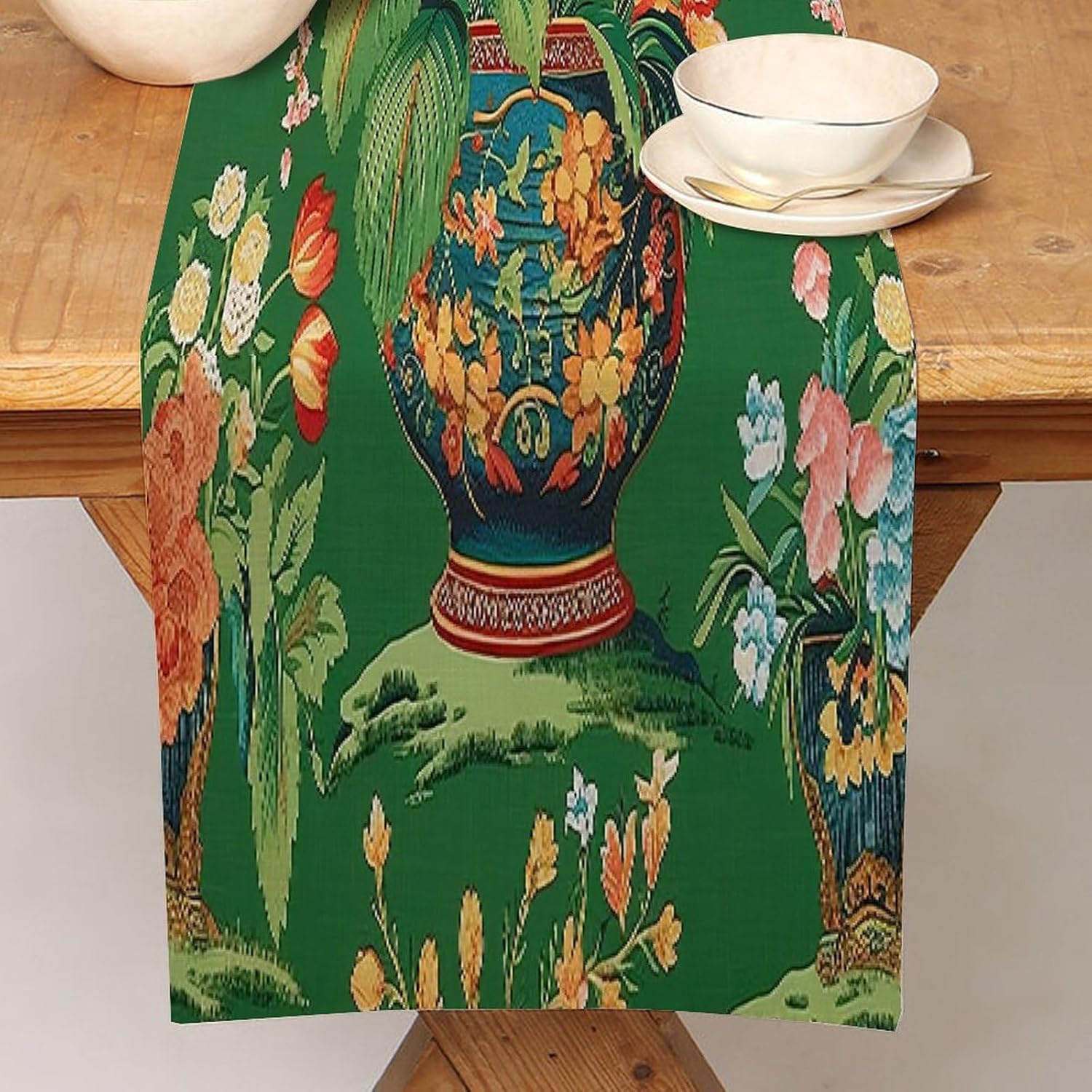 Divertente runner da cucina in cotone e lino verde con vaso da chef Ming, runner da tavola per cucina, tavolo da pranzo, eventi speciali, decorazione per feste