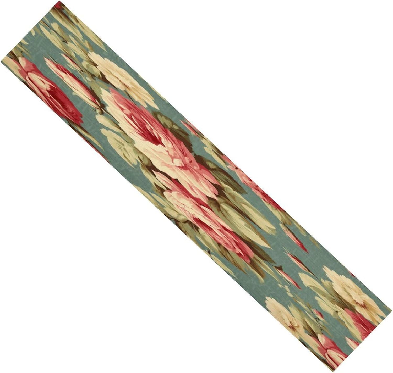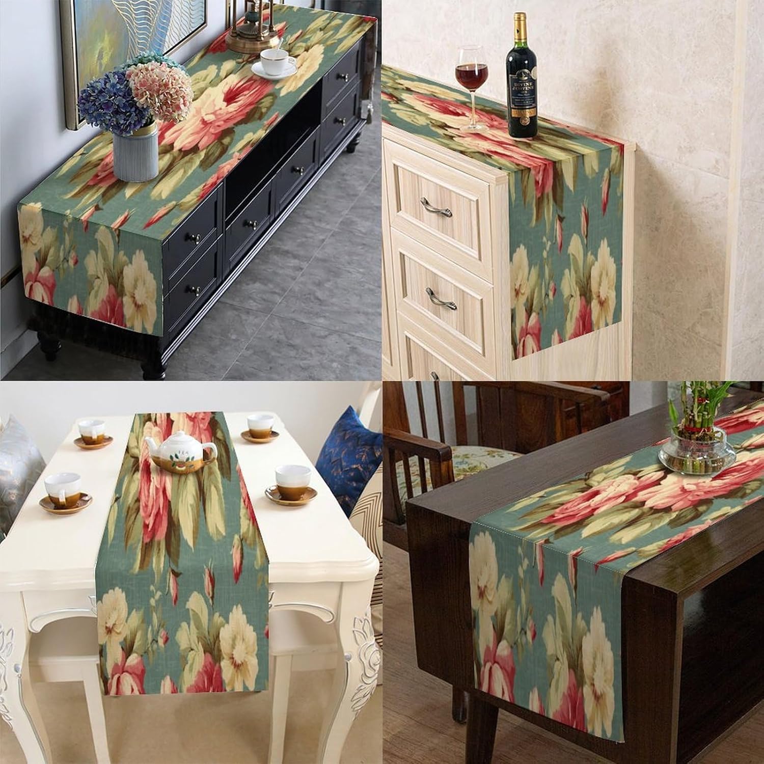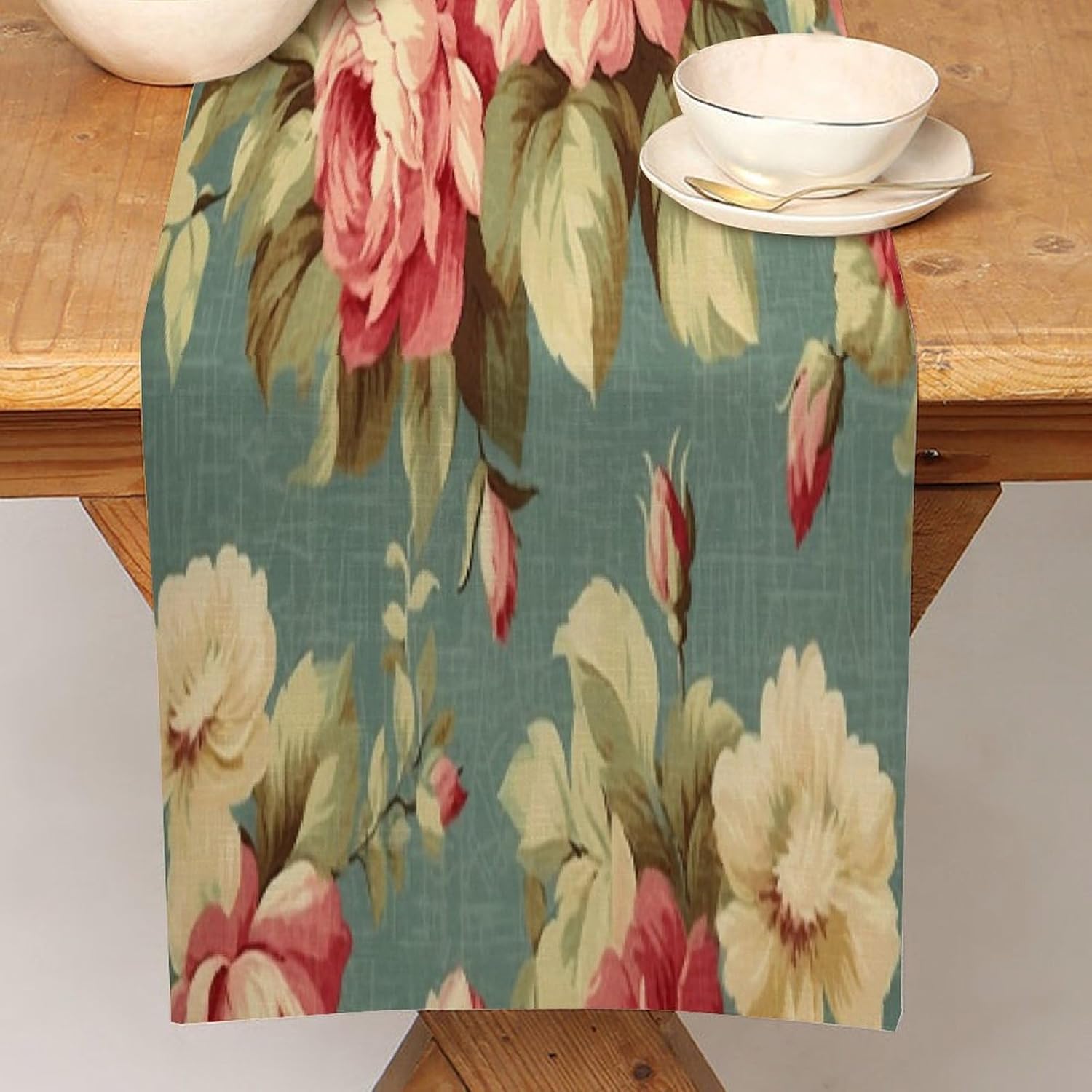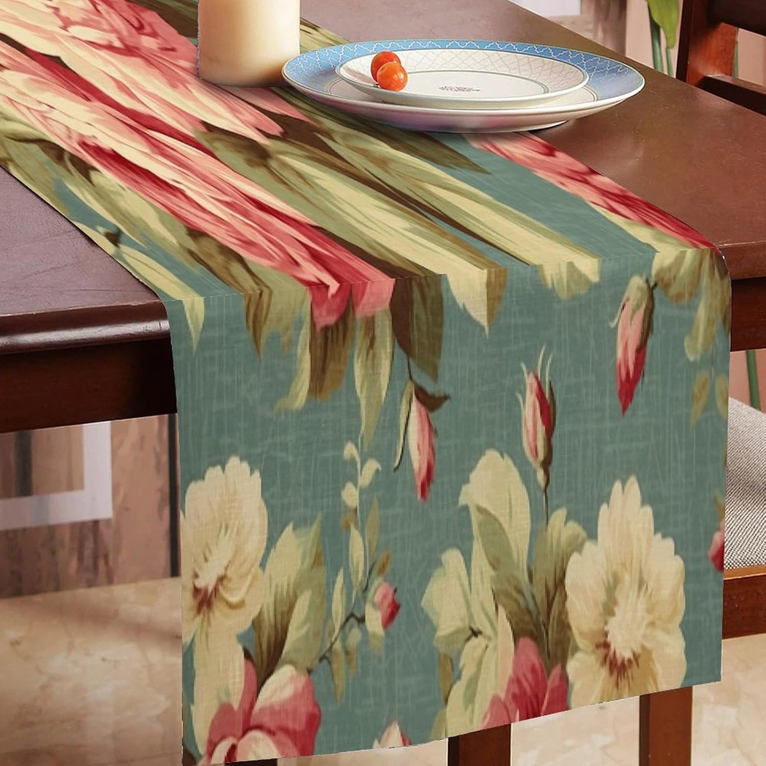 Divertente runner da cucina in lino e cotone color acqua con rose rosa cavolo rosa, decorazione da tavolo per cucina, tavolo da pranzo, eventi speciali, decorazione per feste