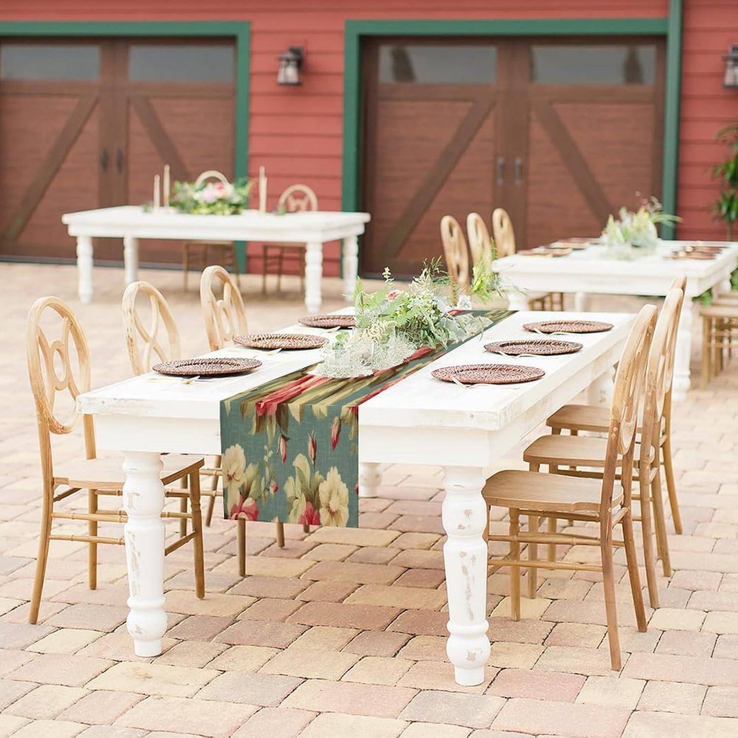 Dimensioni: 304 x 33 cm. Materiale: realizzato in morbido lino di cotone, comodo e durevole, resistente all'usura. Protegge la superficie del tavolo per la decorazione quotidiana della tavola, proteggendo la superficie del tavolo da pentole calde, graffi, danni causati dal calore. [Grande decorazione]: i runner da tavola sono un modo veloce, facile ed economico per aggiornare il tavolo della sala da pranzo, la camera da letto, il comò. Sarà il tuo compagno perfetto per colazione, pranzo e cena. Questa tovaglia dal design elegante aumenterà il fascino del tavolo da pranzo. [Uso multiuso]: alla ricerca di un runner da tavola per più occasioni? Non cercare più! Questo runner da tavola può andare dal ringraziamento alla festa di Natale ed è ottimo anche per una serata estiva informale. Sarà anche un regalo perfetto per i tuoi cari per l'inaugurazione della casa, il Ringraziamento o Natale. Ampia applicazione: caratterizzato da un motivo elegante con un bel bordo con nappe, sembra bello e vintage. Adatto per l'uso quotidiano, balli, matrimoni, feste o qualsiasi vacanza speciale. Ideale per uso interno ed esterno, come cucina, giardino, tè pomeridiano, caffè, cene, balcone, potlucks.