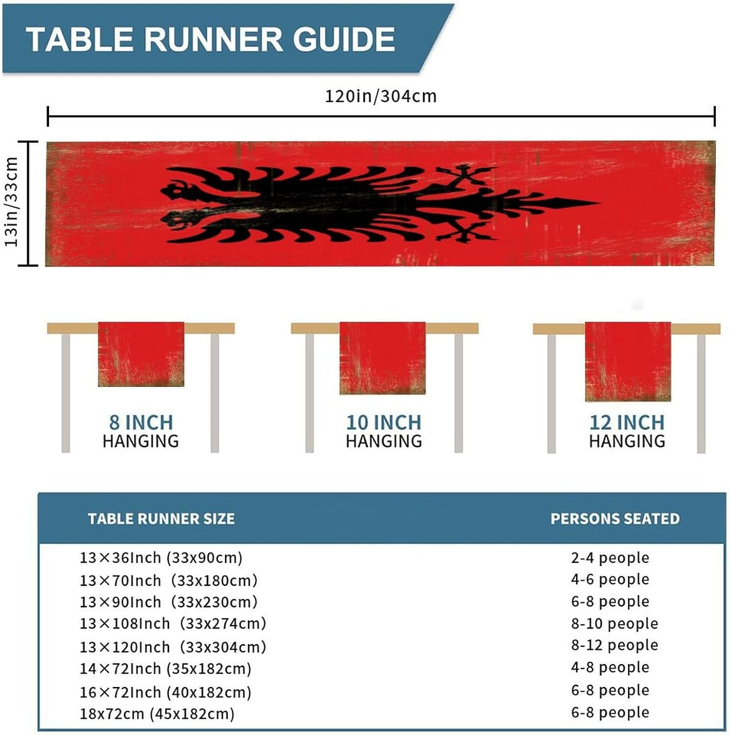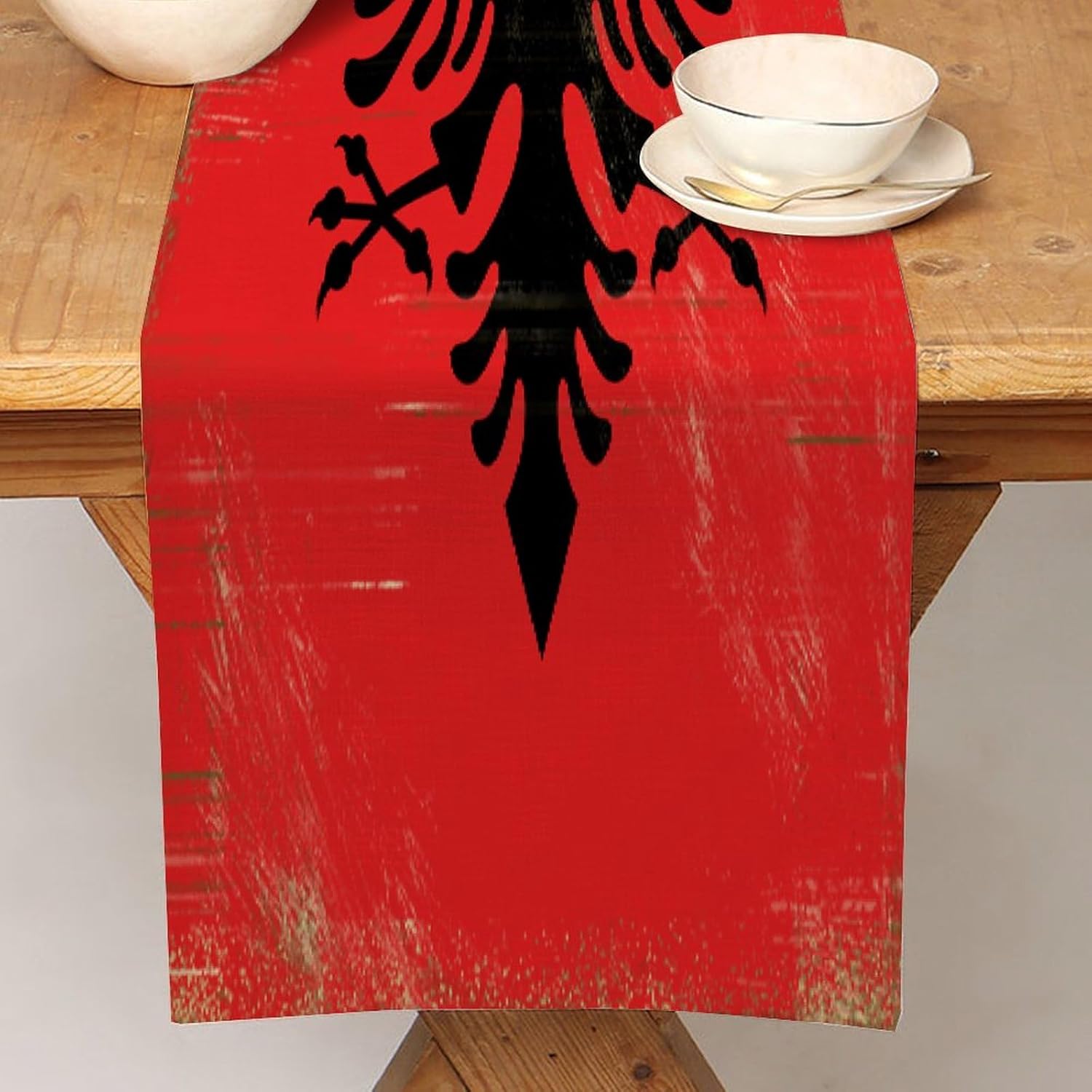 Divertente runner da tavola con bandiera nazionale dell'Albania, stile vintage, 33 x 300 cm, runner da tavola in iuta dell'Albania, moderno per comò, sciarpe e runner per la casa