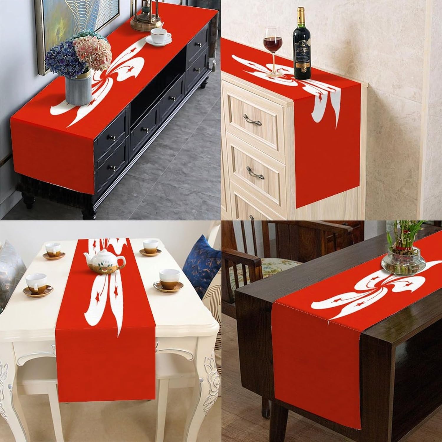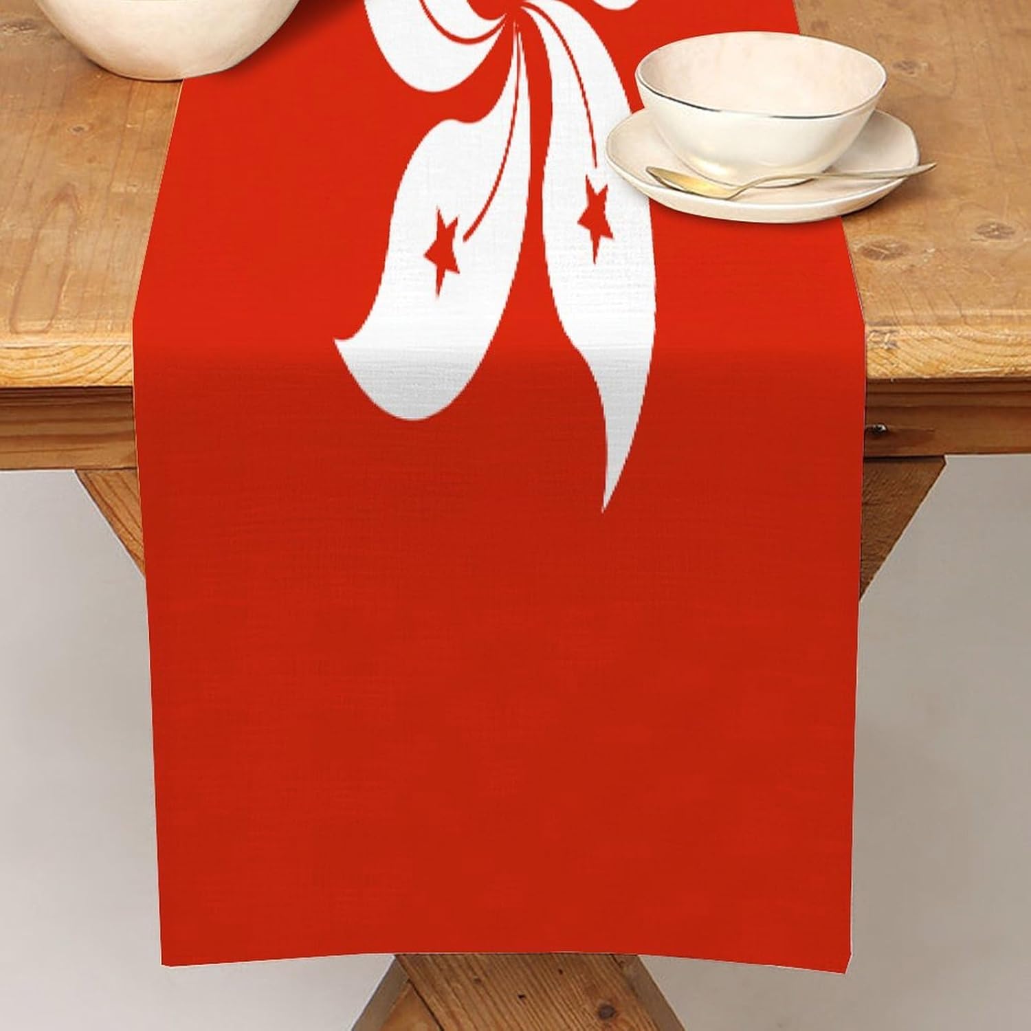 Divertente runner da tavola con bandiera nazionale di Hong Kong in stile fattoria, 33 x 91 cm, runner da tavola in iuta di Hong Kong, moderno comò sciarpe e runner per la casa