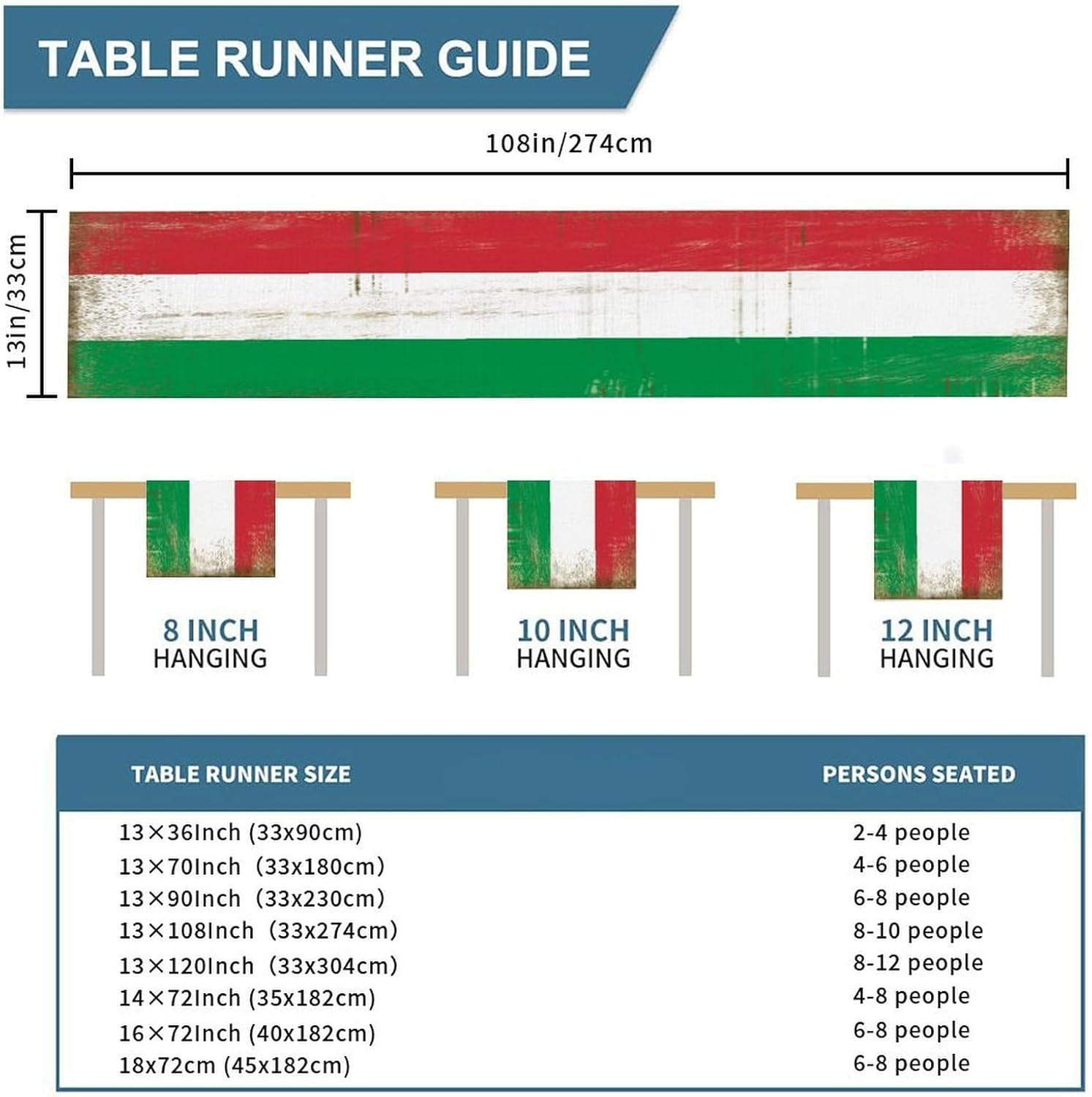 Divertente runner da tavola da cucina con bandiera nazionale italiana, stile rustico, 33 x 274 cm, runner da tavola in iuta italiana, sciarpe e runner moderni per la casa