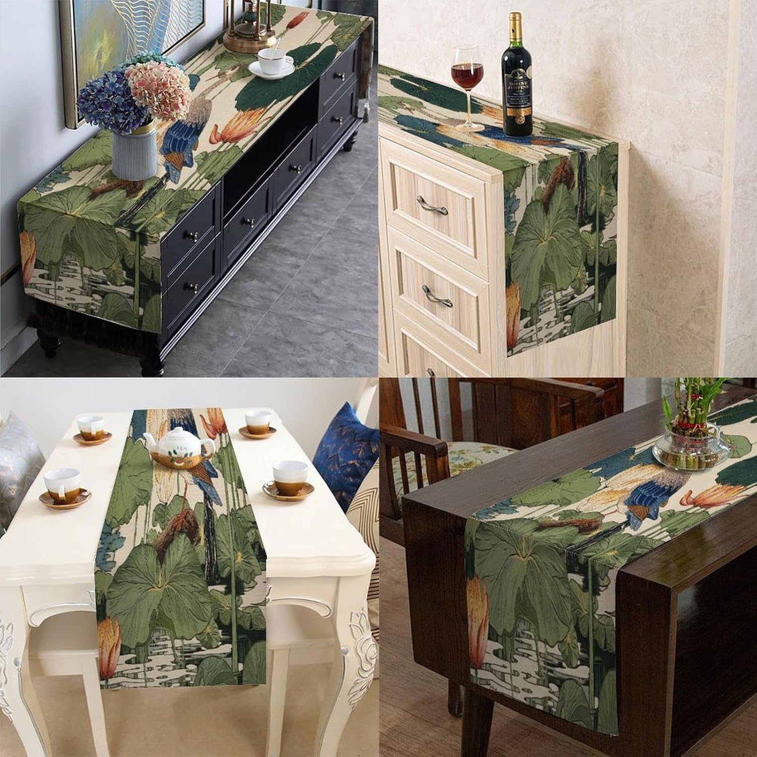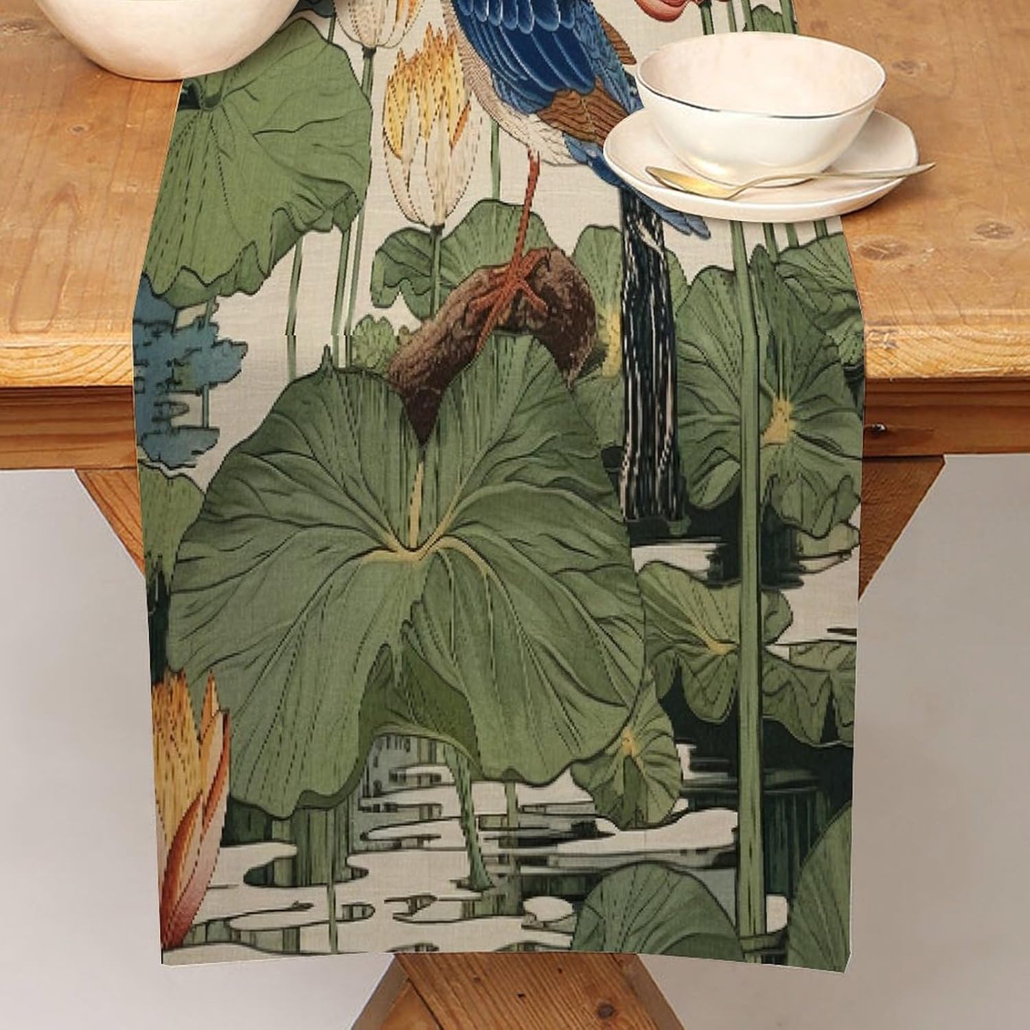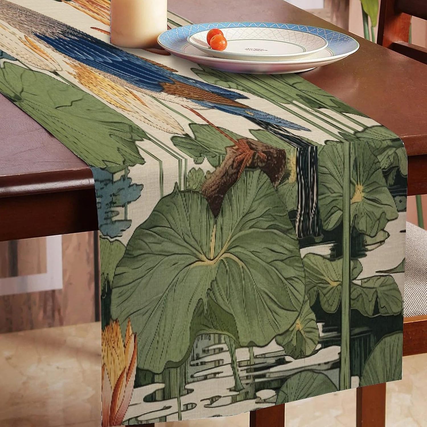 Divertente runner da tavola in cotone e lino color pistacchio da chef Nympheus Lily Pad in stile fattoria decorazione da tavolo per cucina tavolo da pranzo evento speciale decorazione per feste