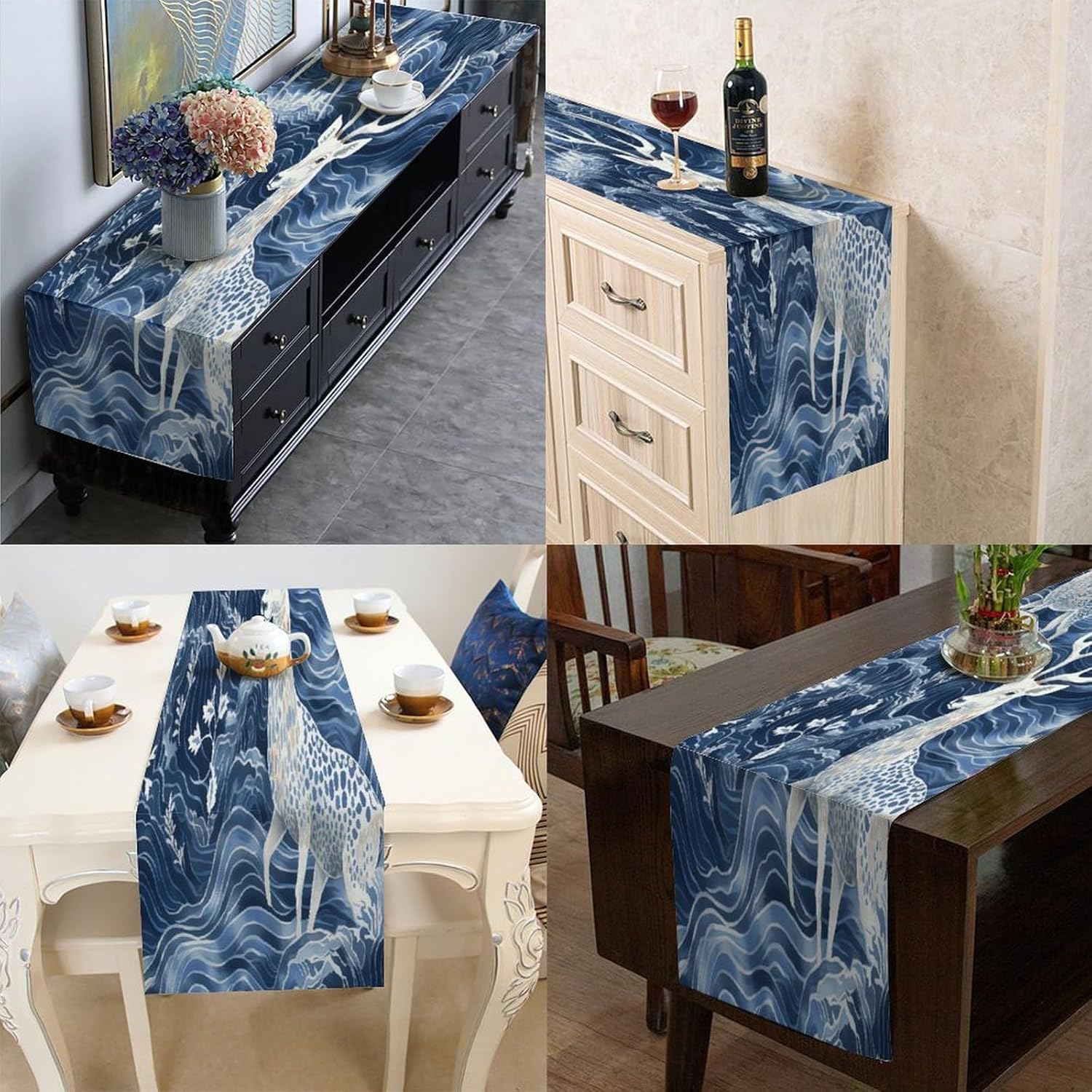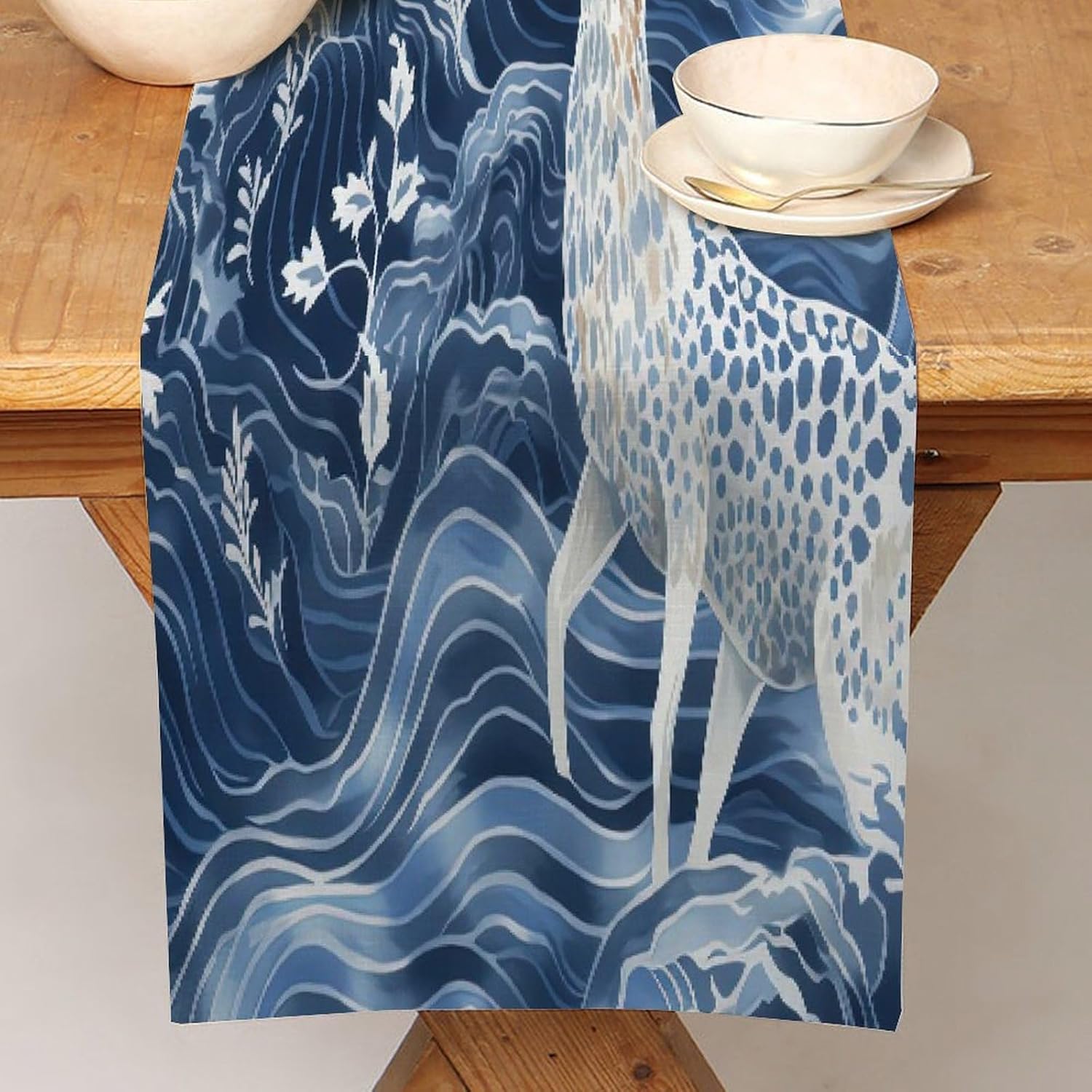Divertente runner da tavola in cotone e lino con motivo astratto chinoiserie, decorazione da cucina per cucina, tavolo da pranzo, eventi speciali, decorazione per feste